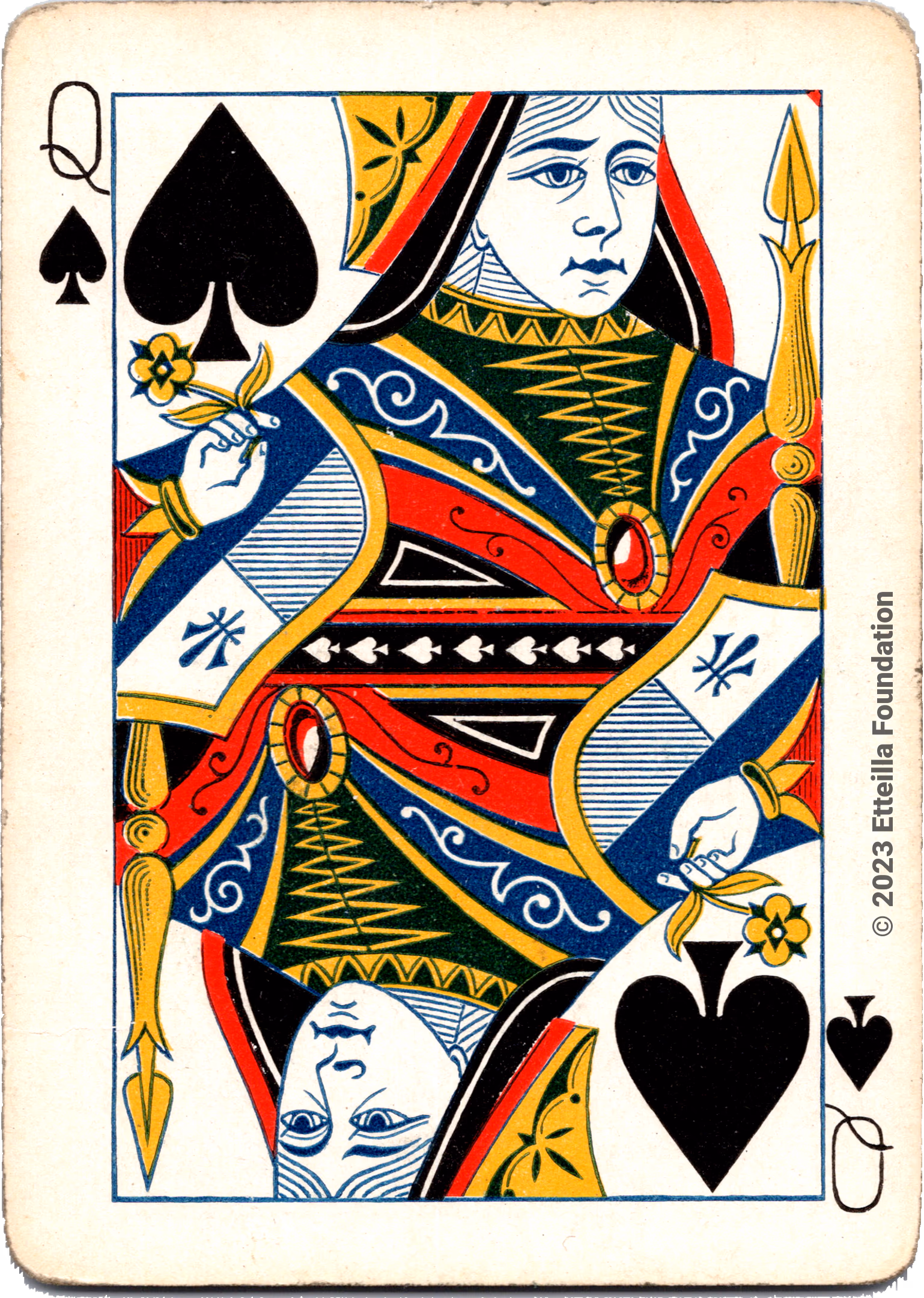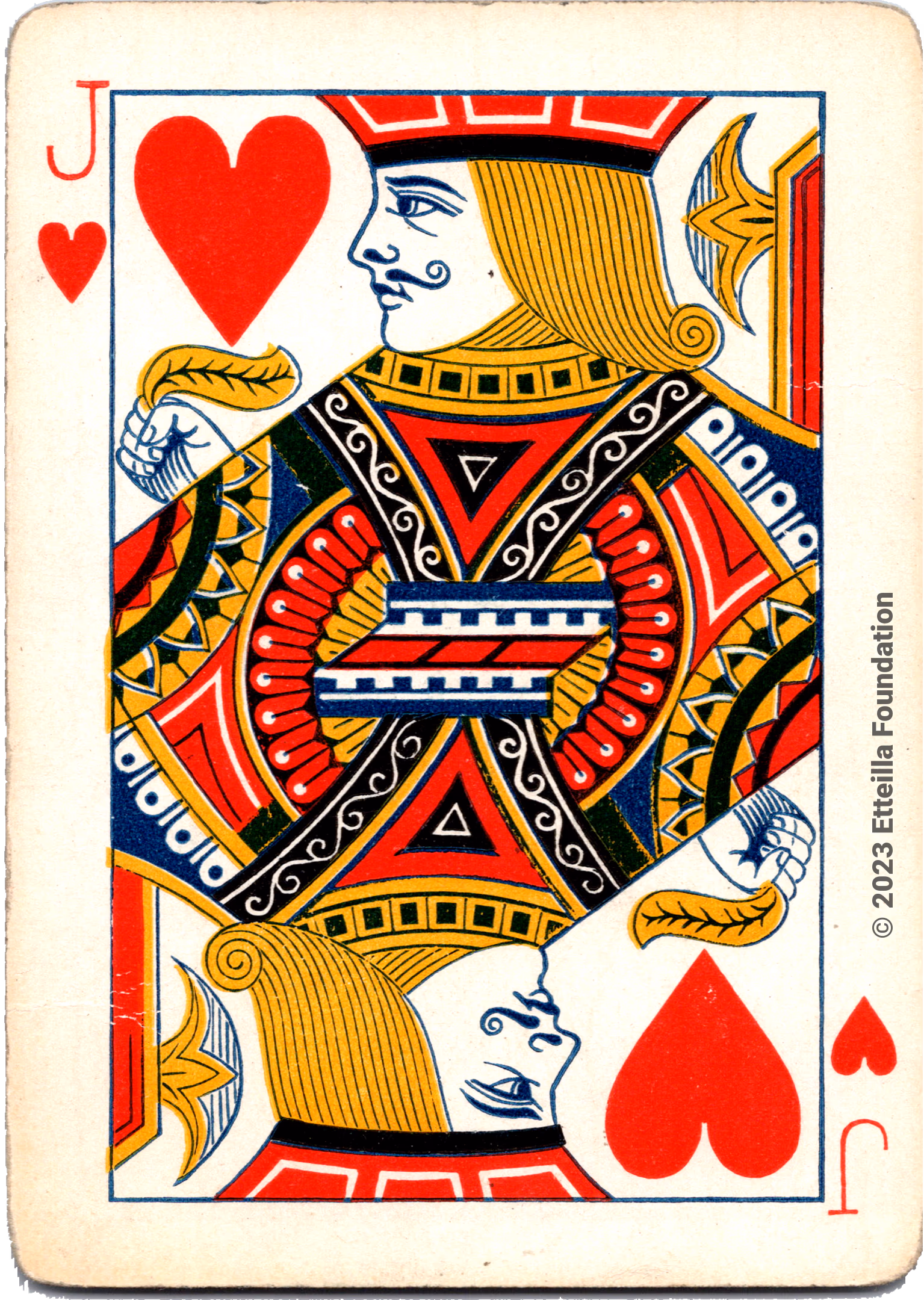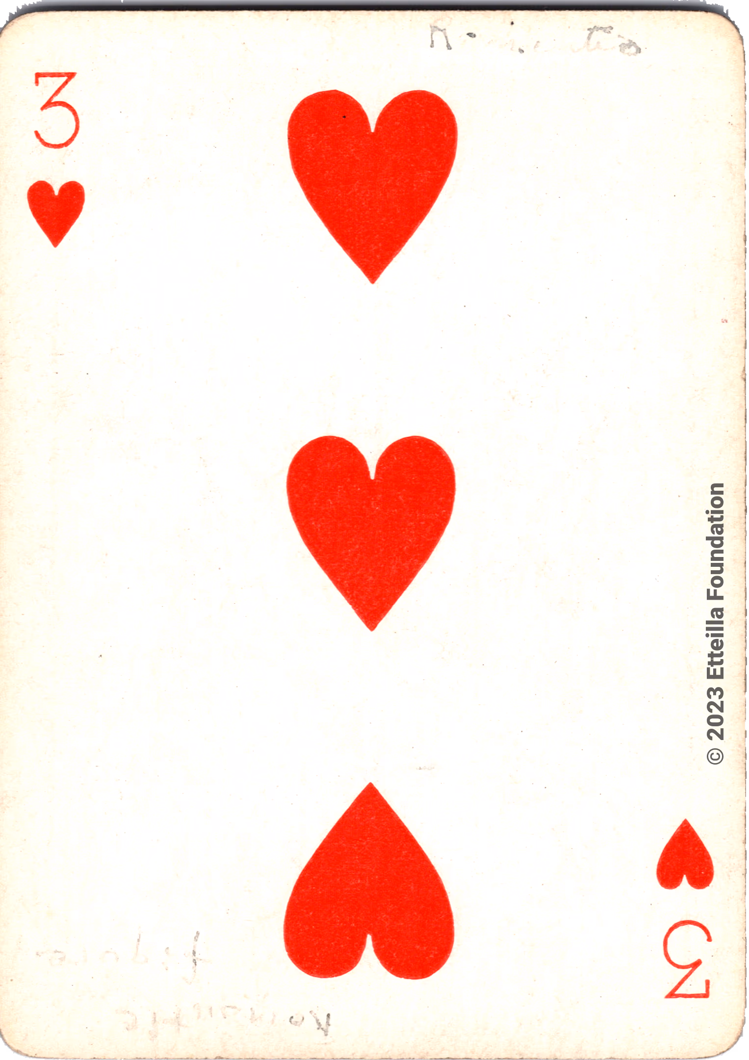 The deck is not complete, with 52 out of the expected 52 cards available. The condition of the deck is fine. However, the wild cards and the box are missing. The face pattern of the deck is Paris.