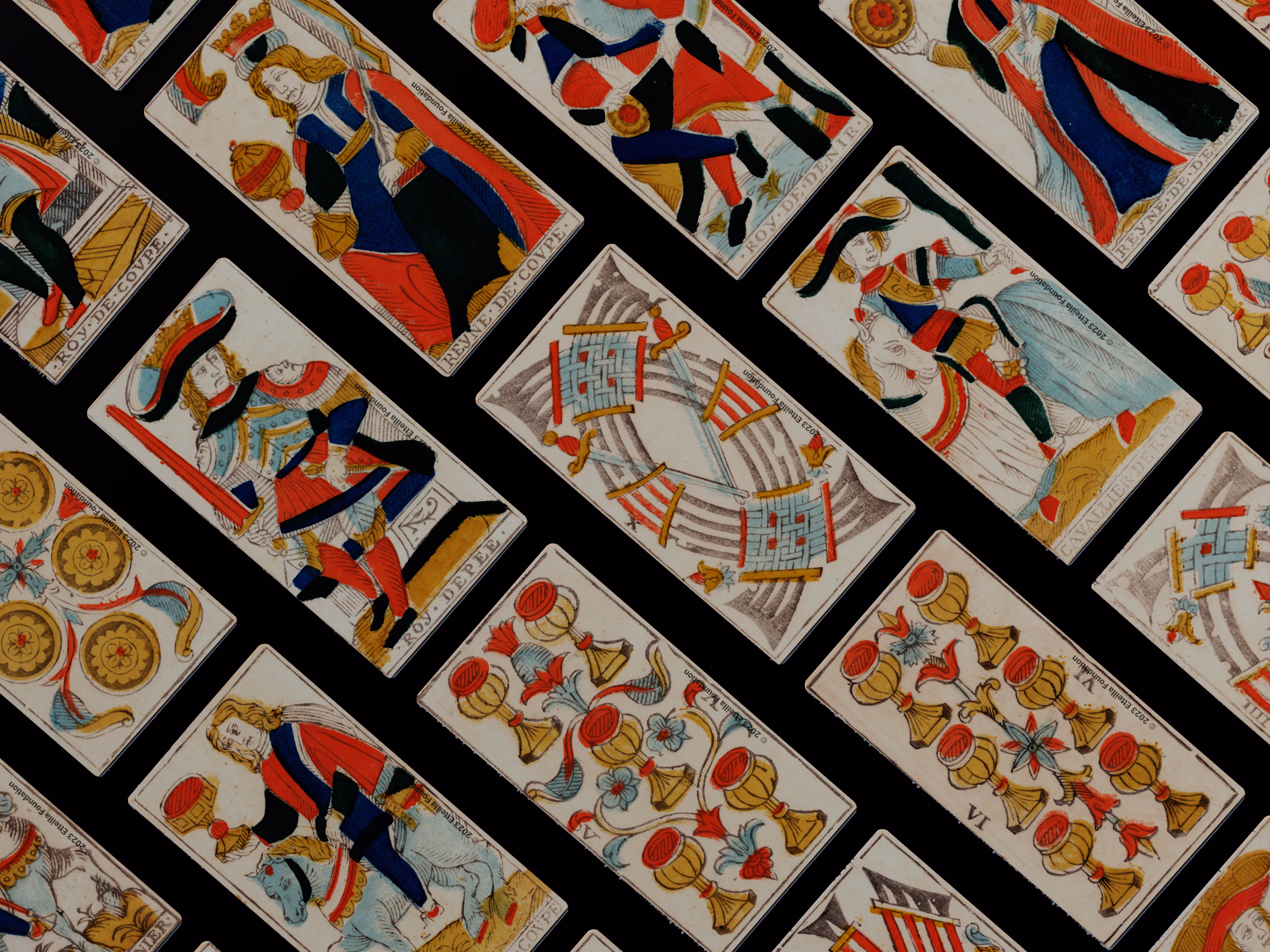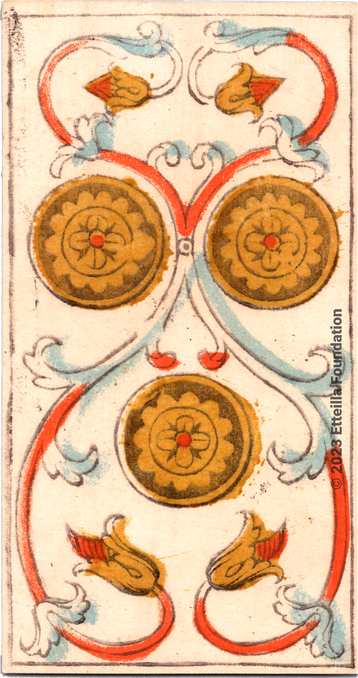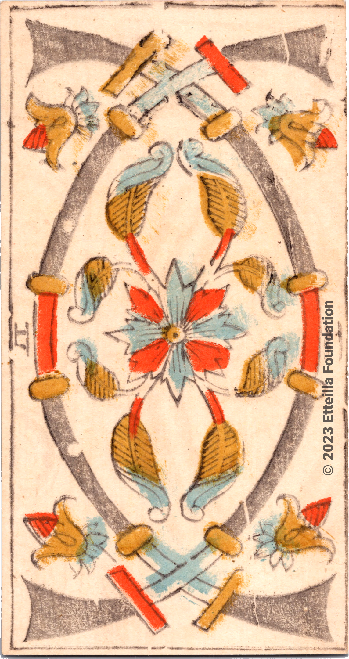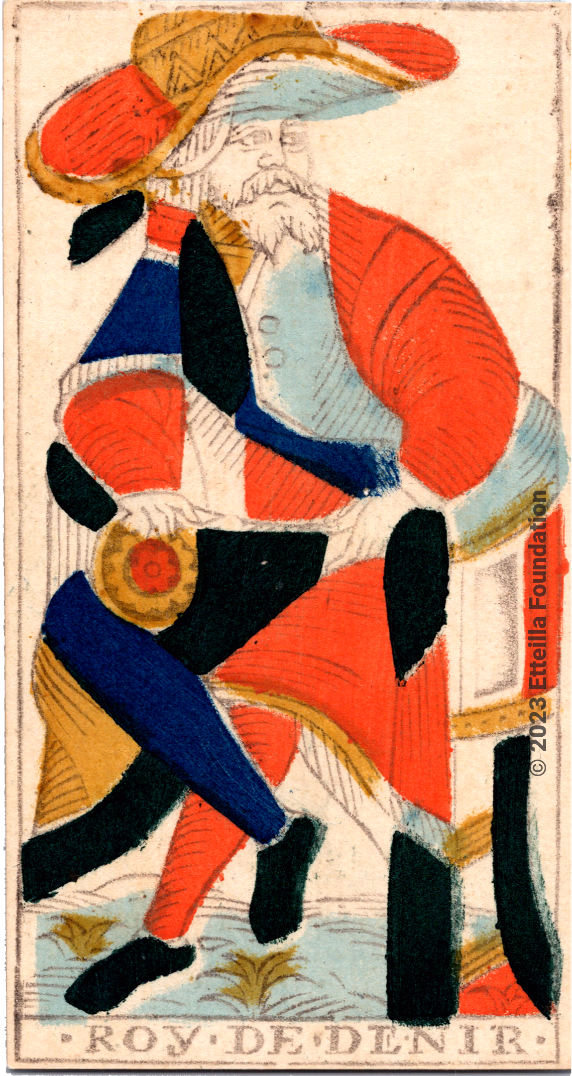This very rare deck produced in France by Joseph Feautrier in 1792 uniquely use Italian suits and card designs instead of the French ones making this deck one of a kind for his time. To this day it remains unknown why Joseph Feautrier decided to copy the Italian style.