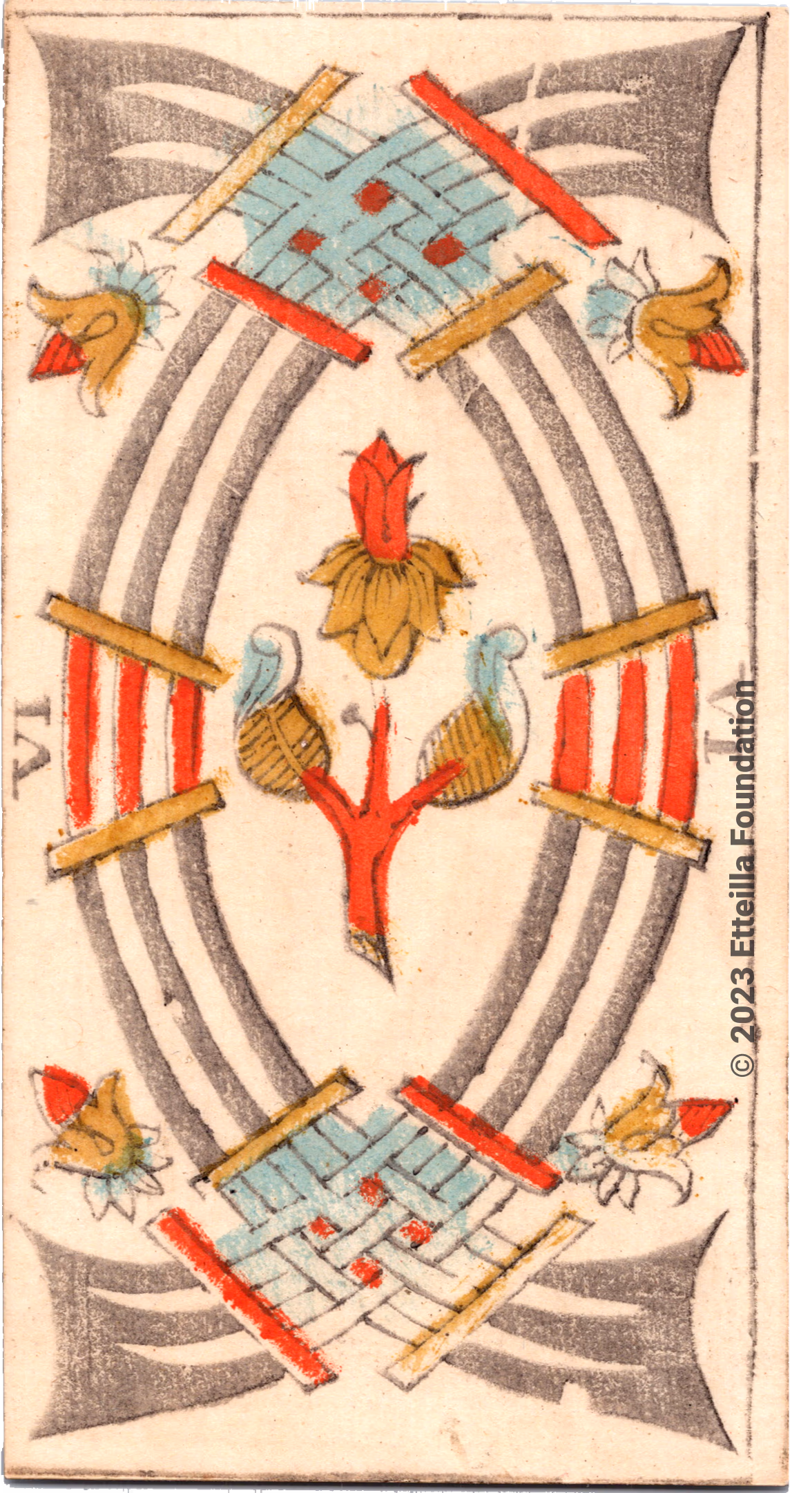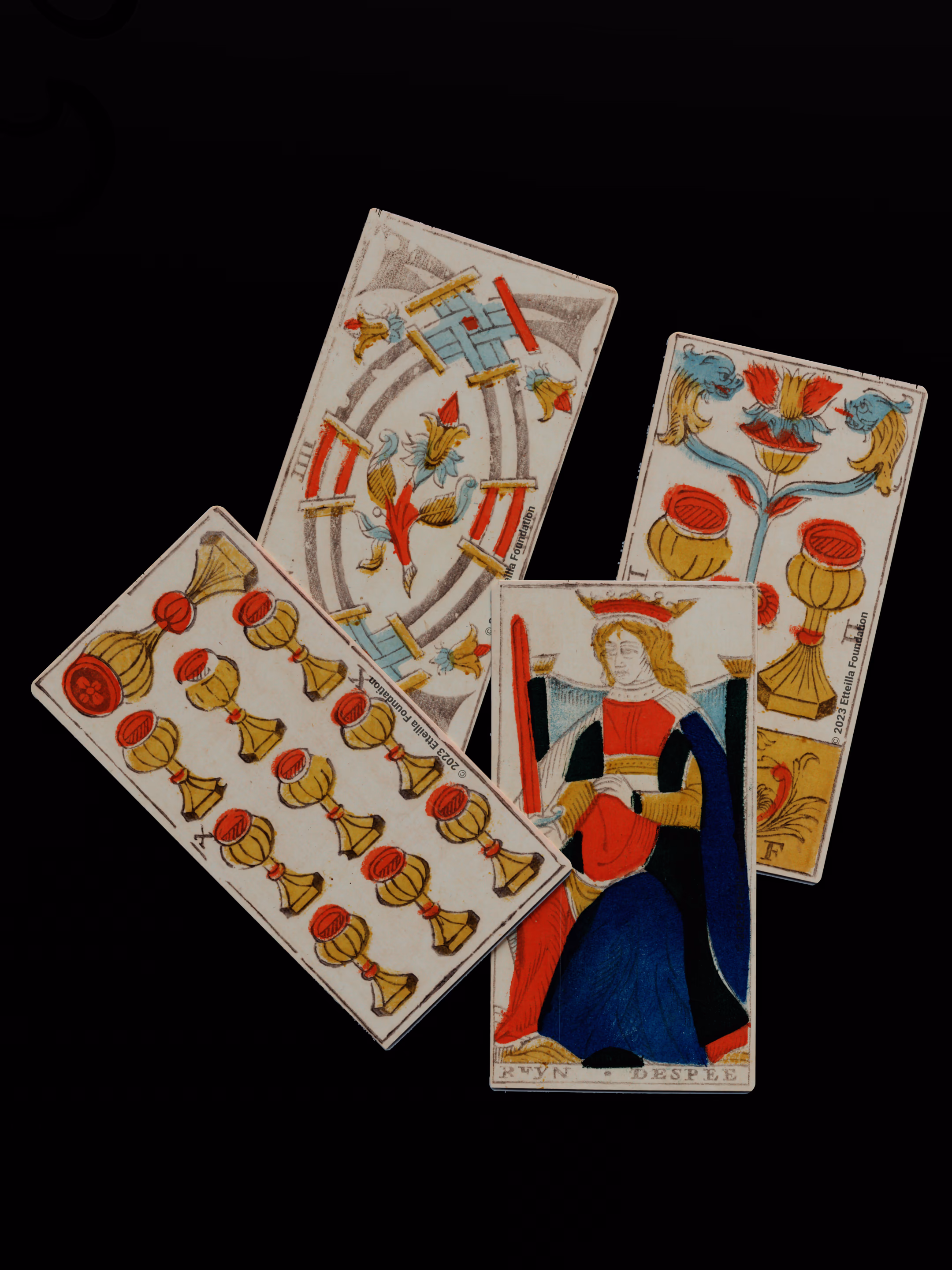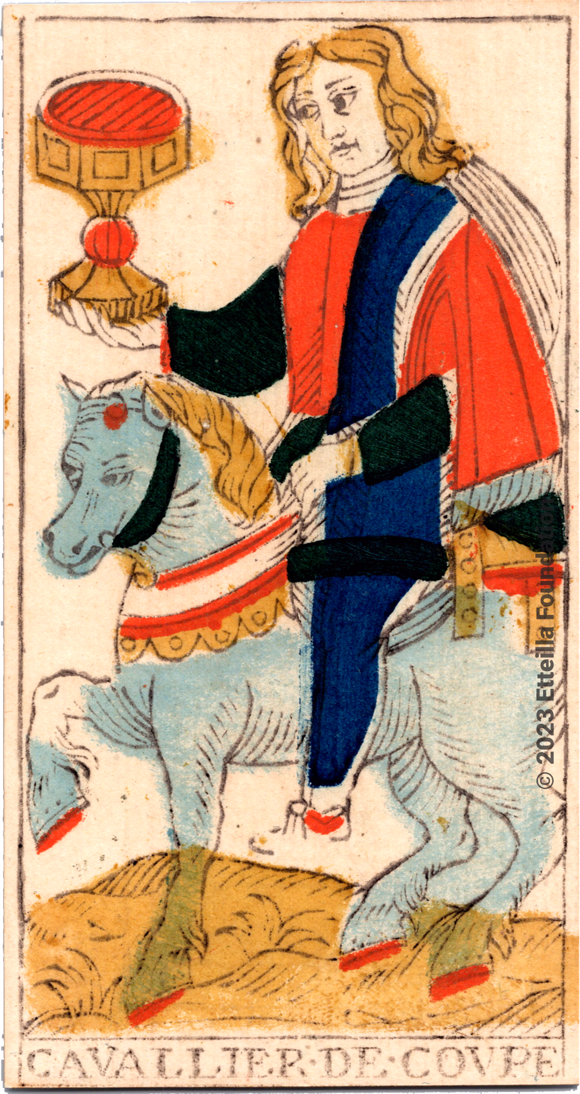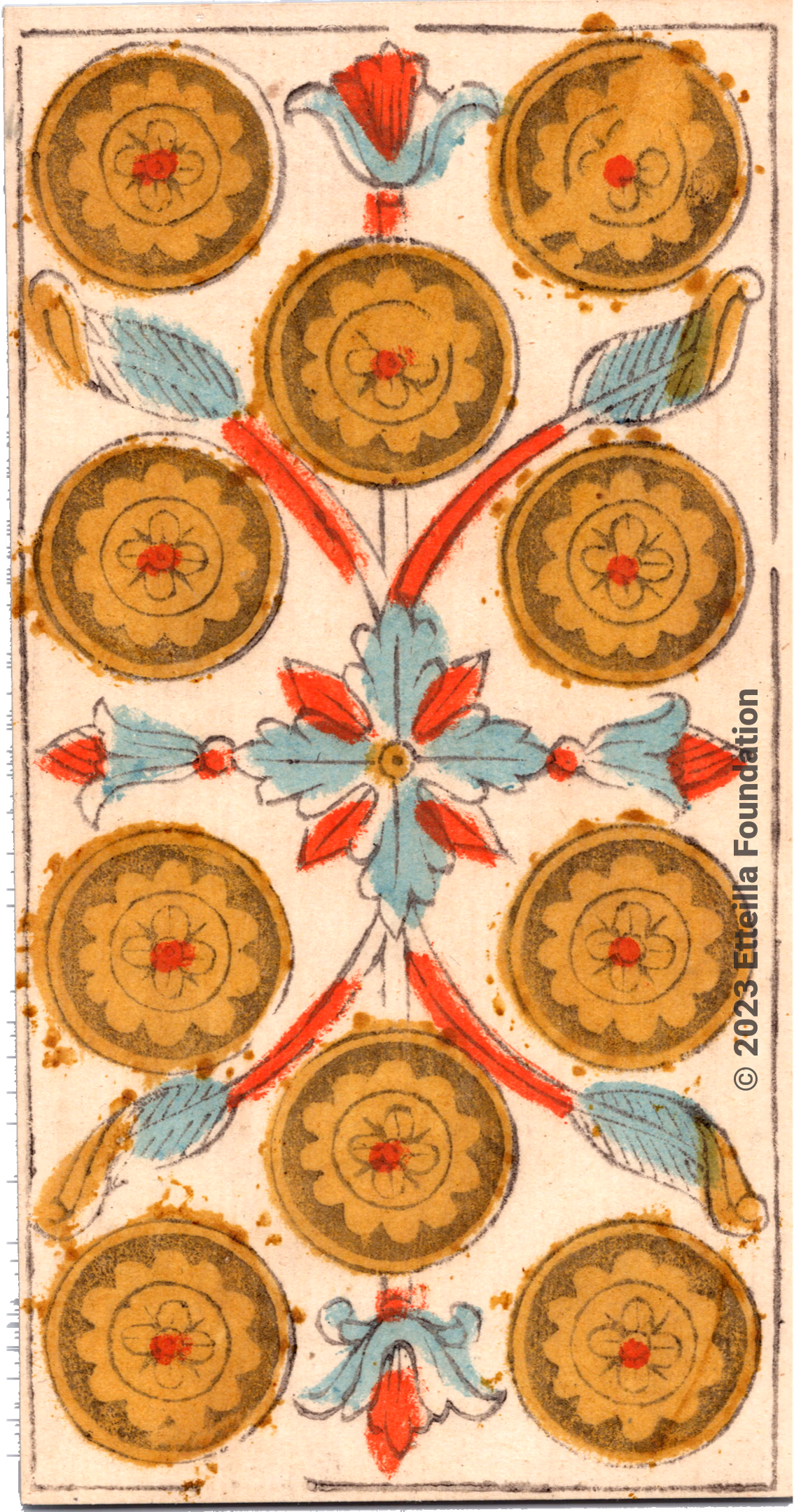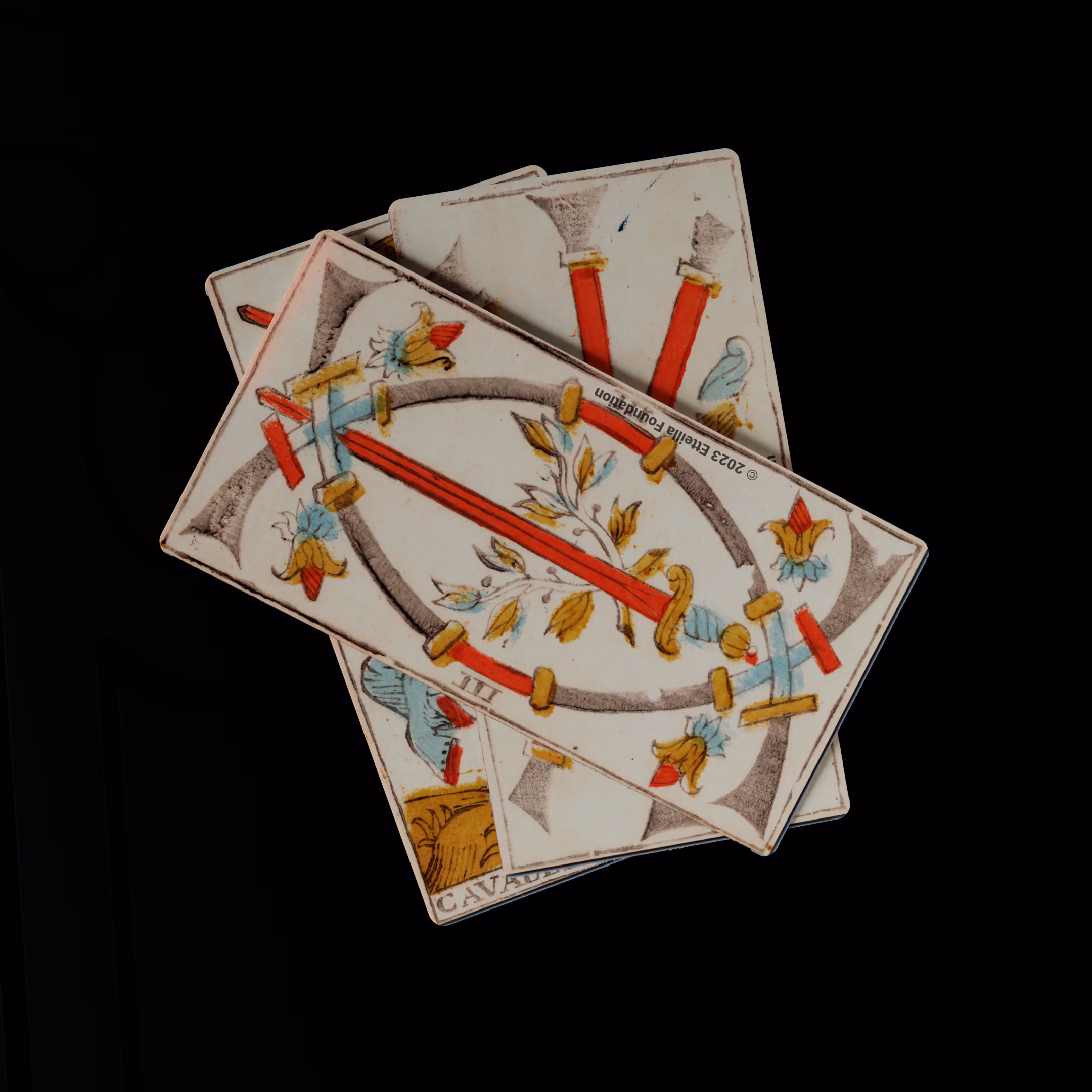 This very rare deck produced in France by Joseph Feautrier in 1792 uniquely use Italian suits and card designs instead of the French ones making this deck one of a kind for his time. To this day it remains unknown why Joseph Feautrier decided to copy the Italian style.