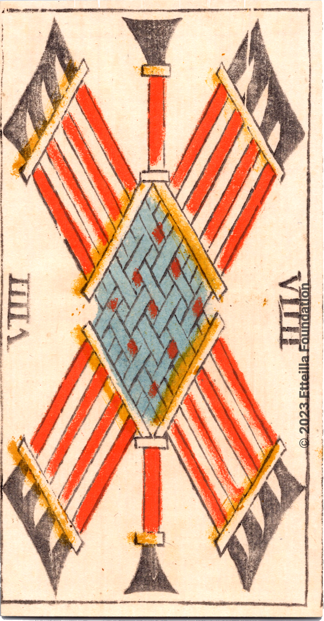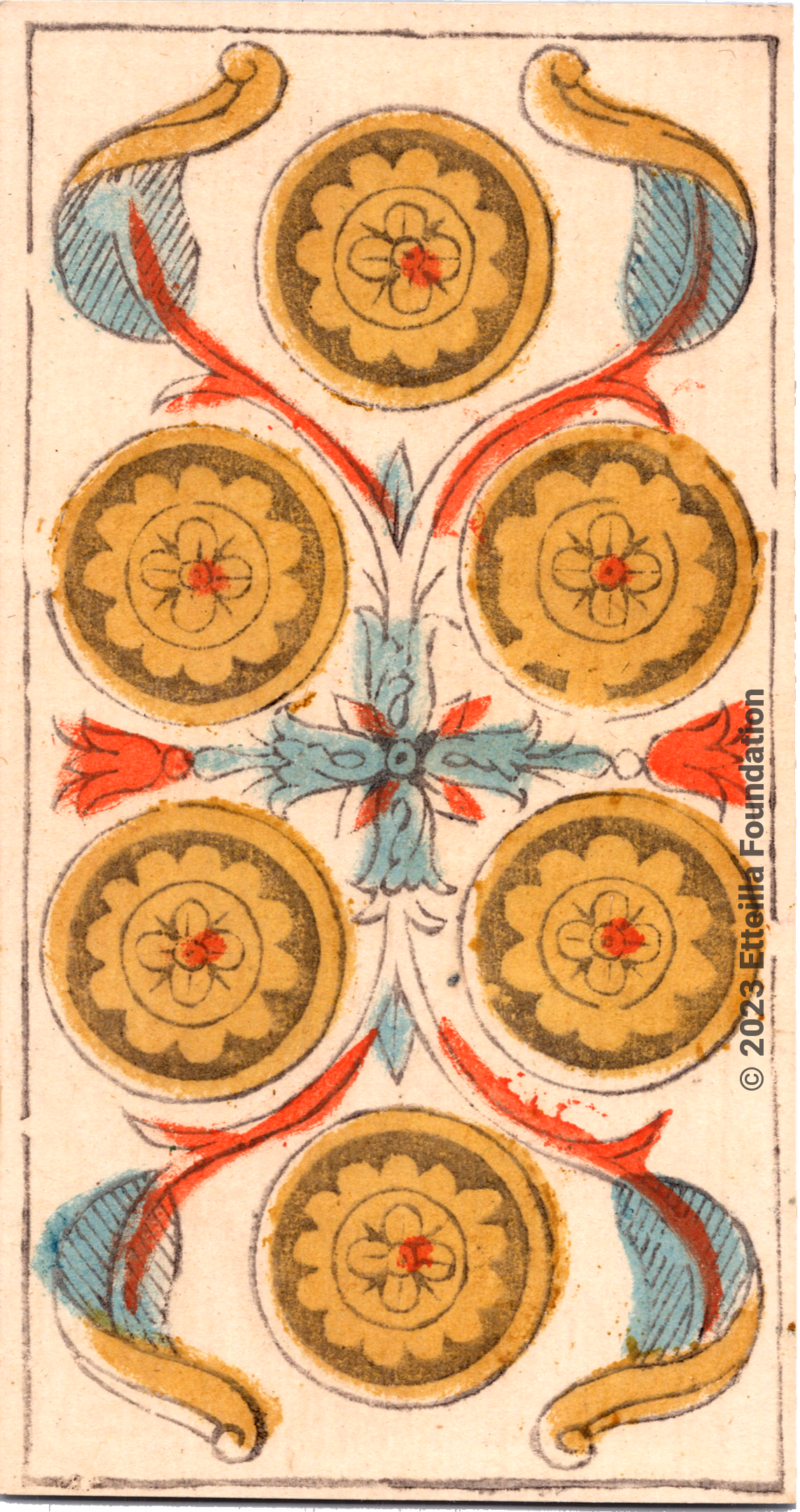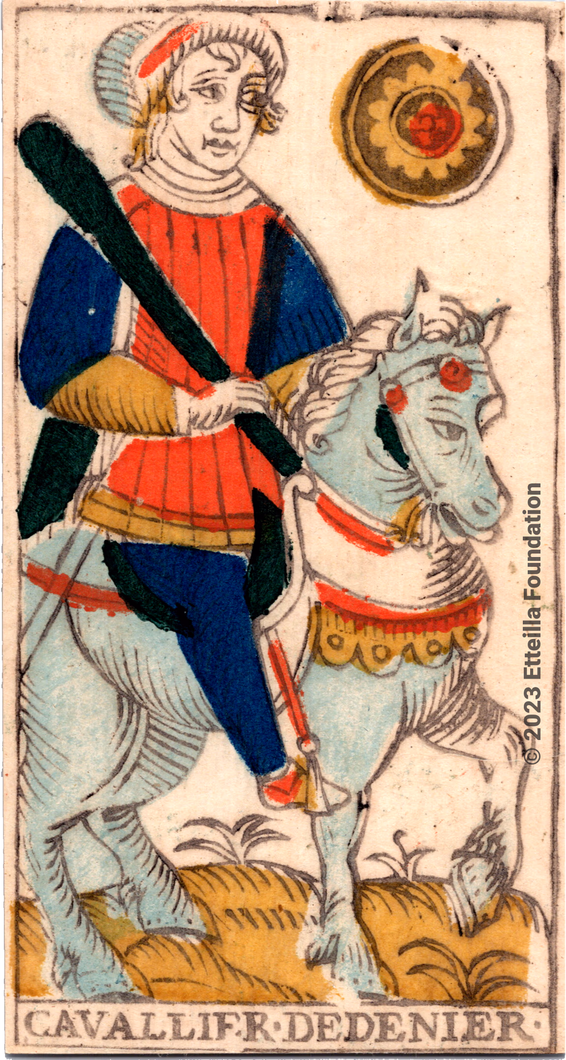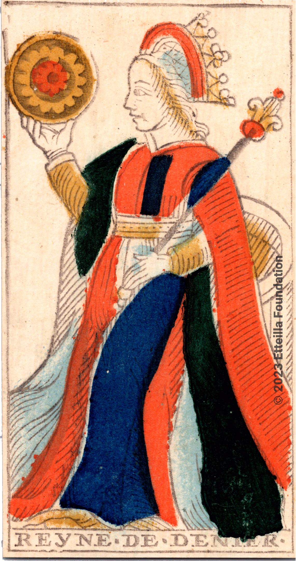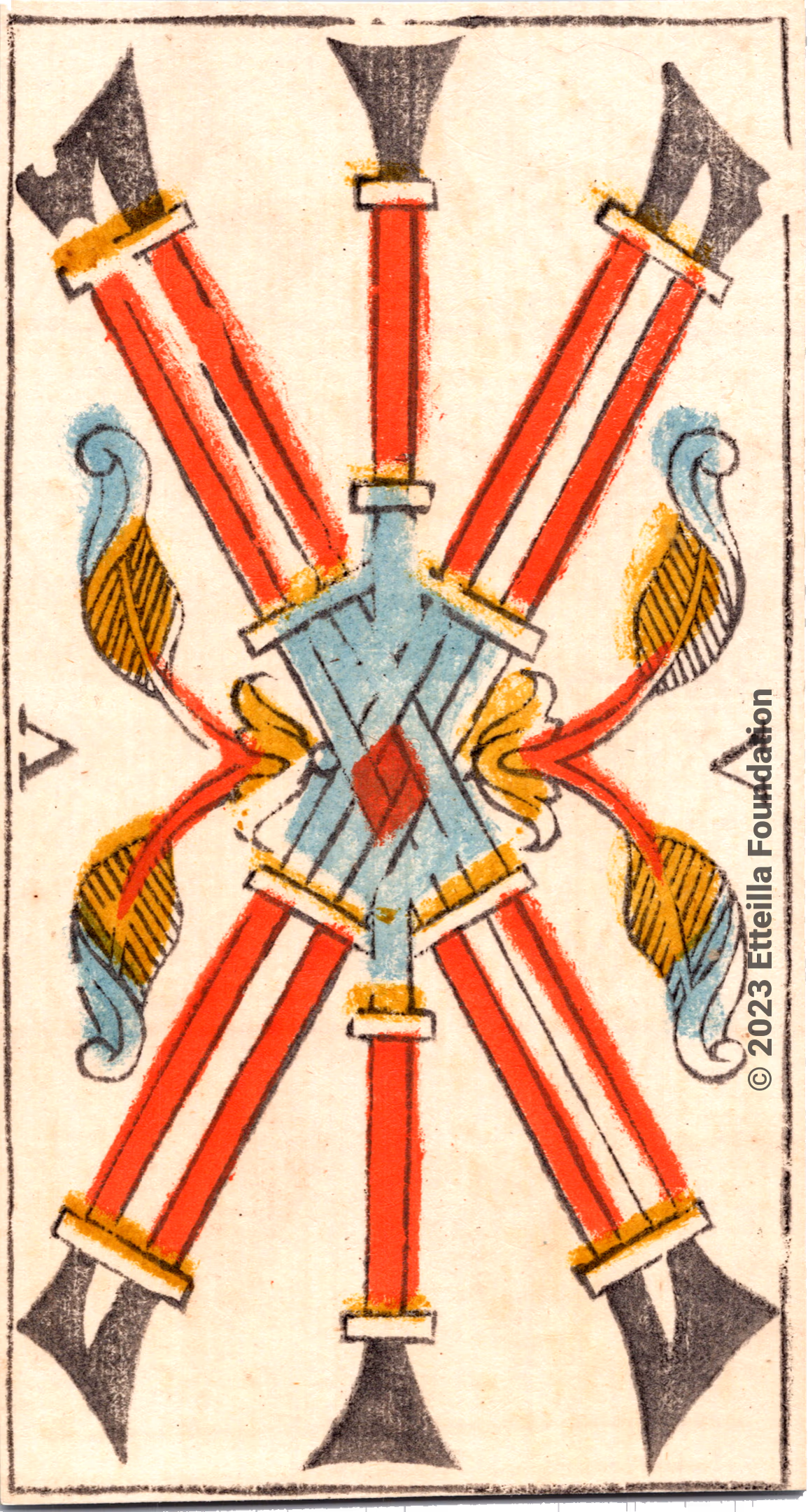 This very rare deck produced in France by Joseph Feautrier in 1792 uniquely use Italian suits and card designs instead of the French ones making this deck one of a kind for his time. To this day it remains unknown why Joseph Feautrier decided to copy the Italian style.