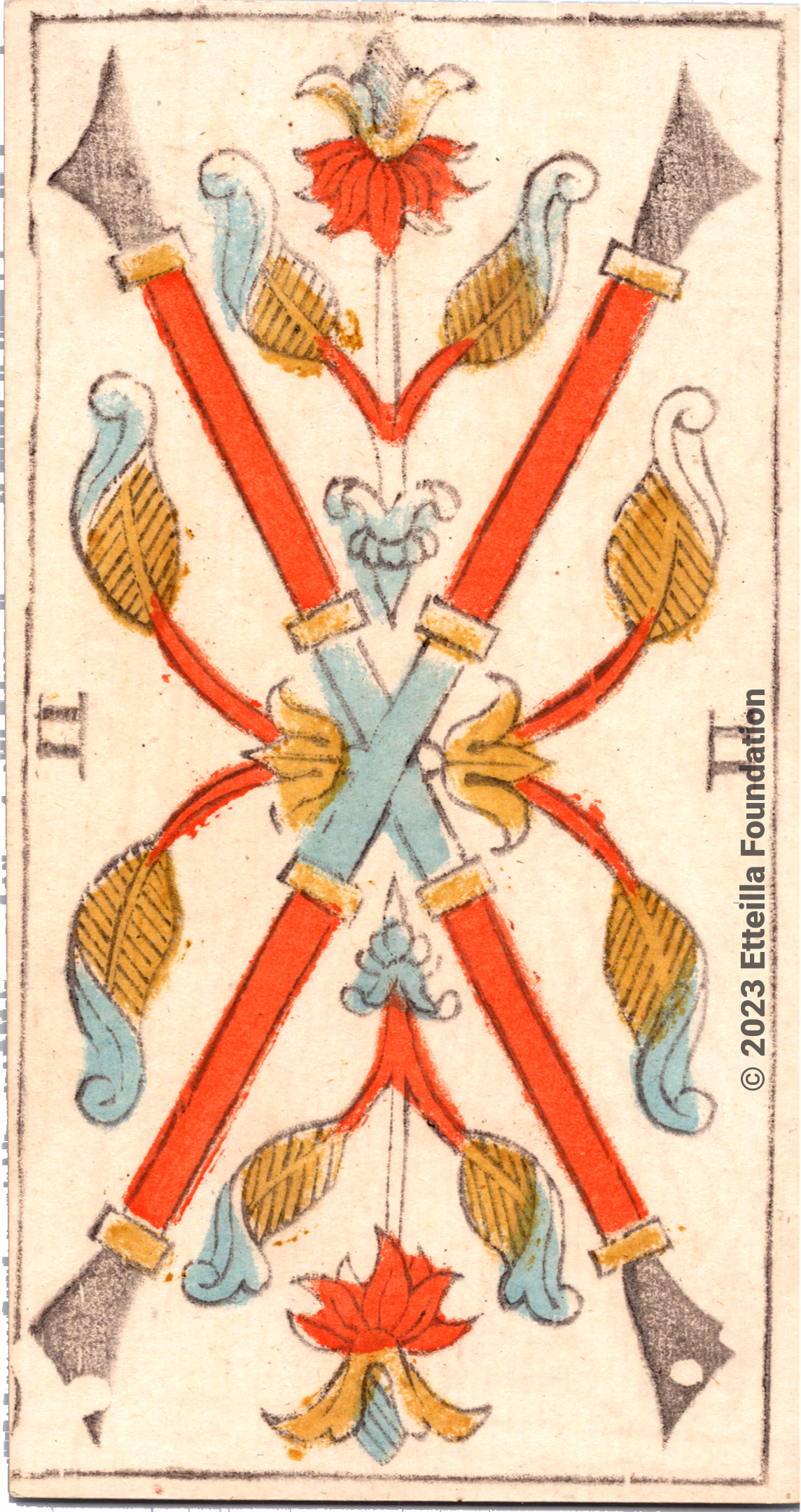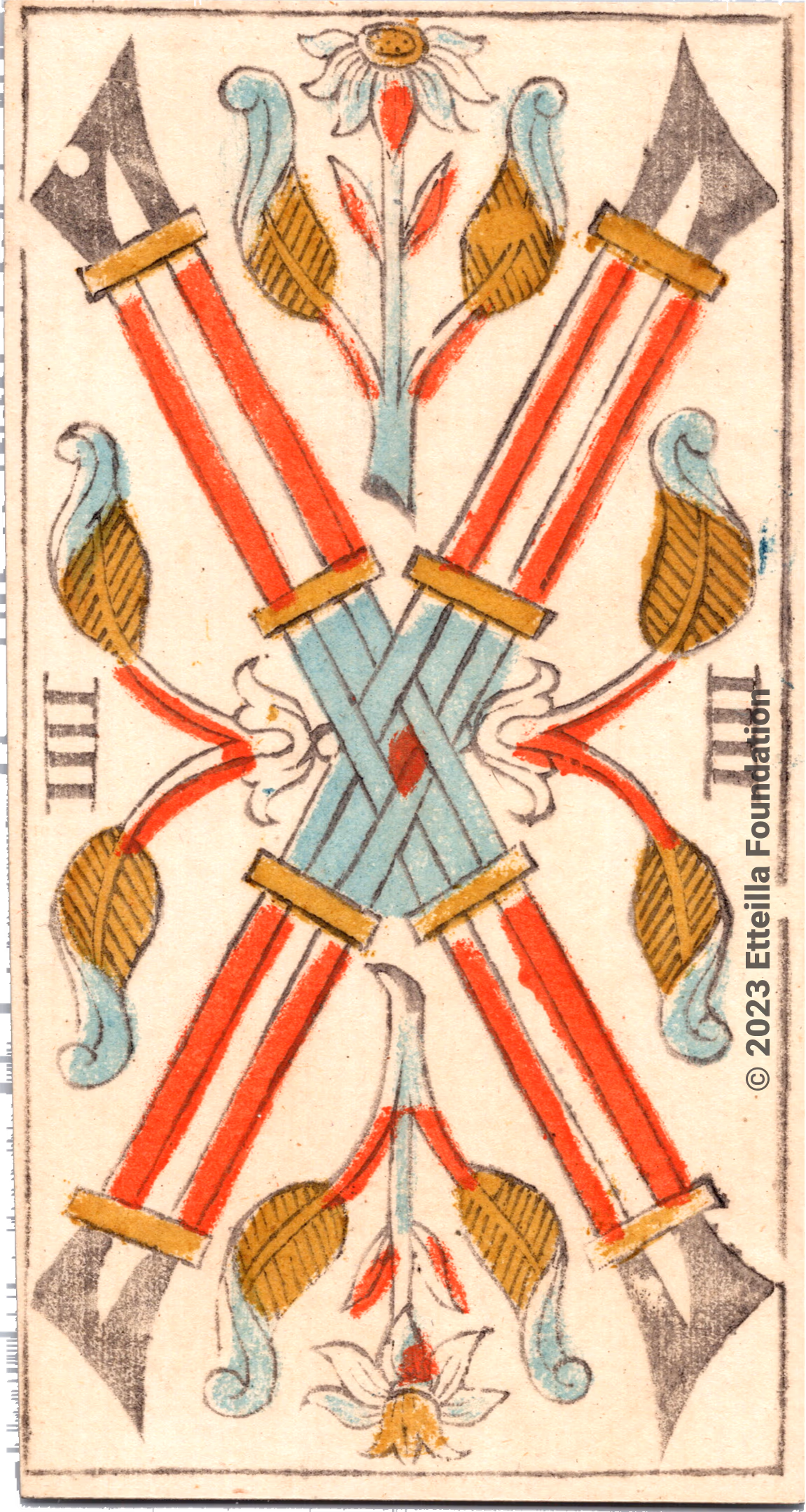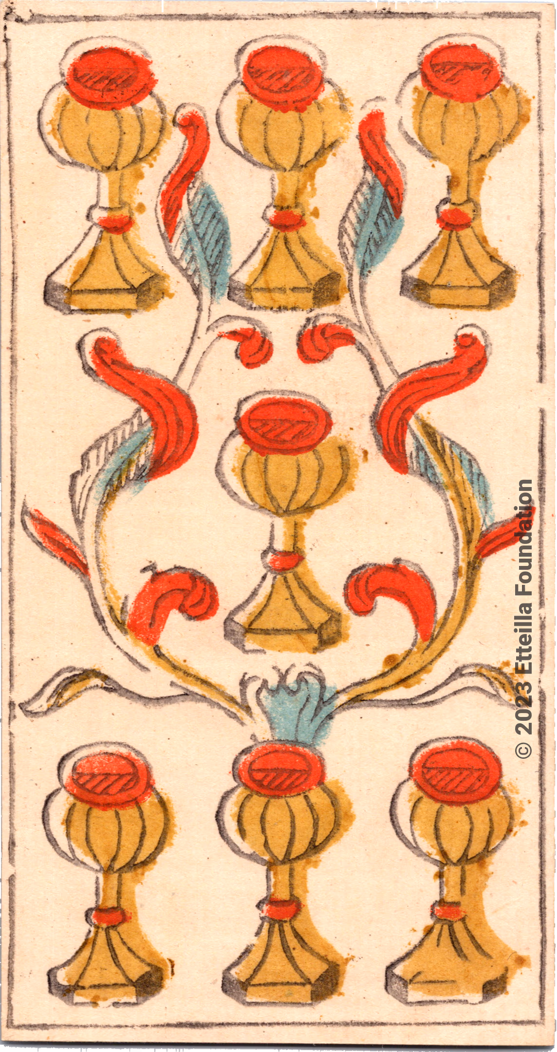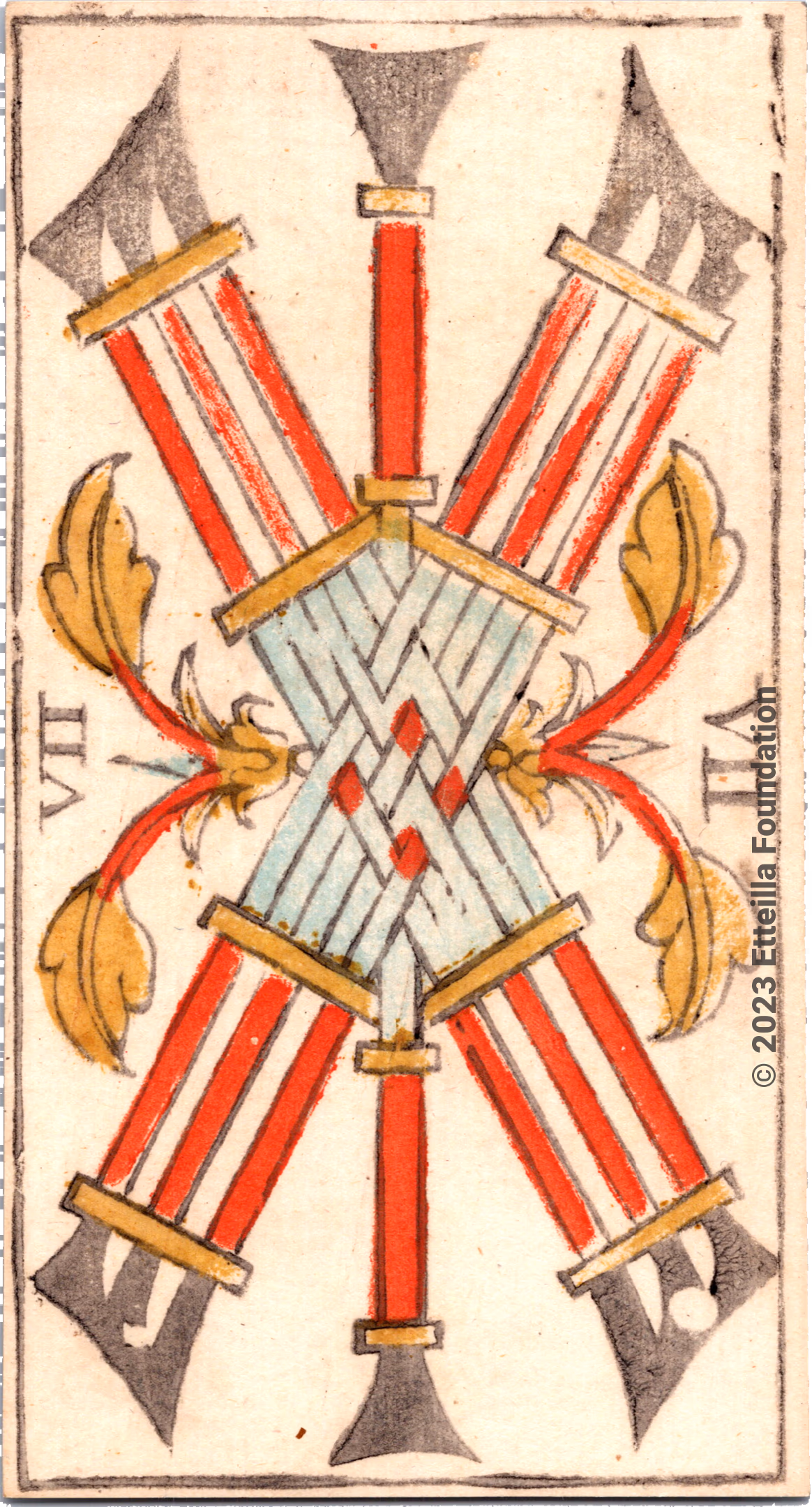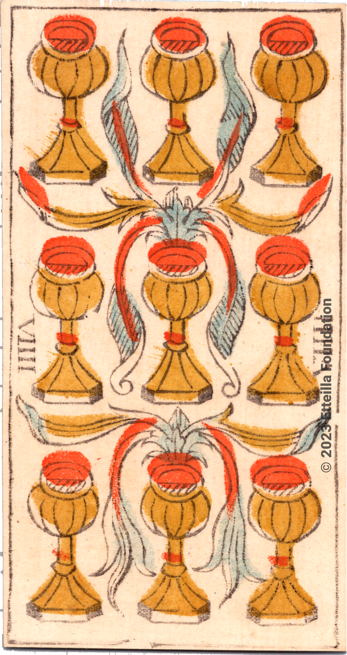 This very rare deck produced in France by Joseph Feautrier in 1792 uniquely use Italian suits and card designs instead of the French ones making this deck one of a kind for his time. To this day it remains unknown why Joseph Feautrier decided to copy the Italian style.
