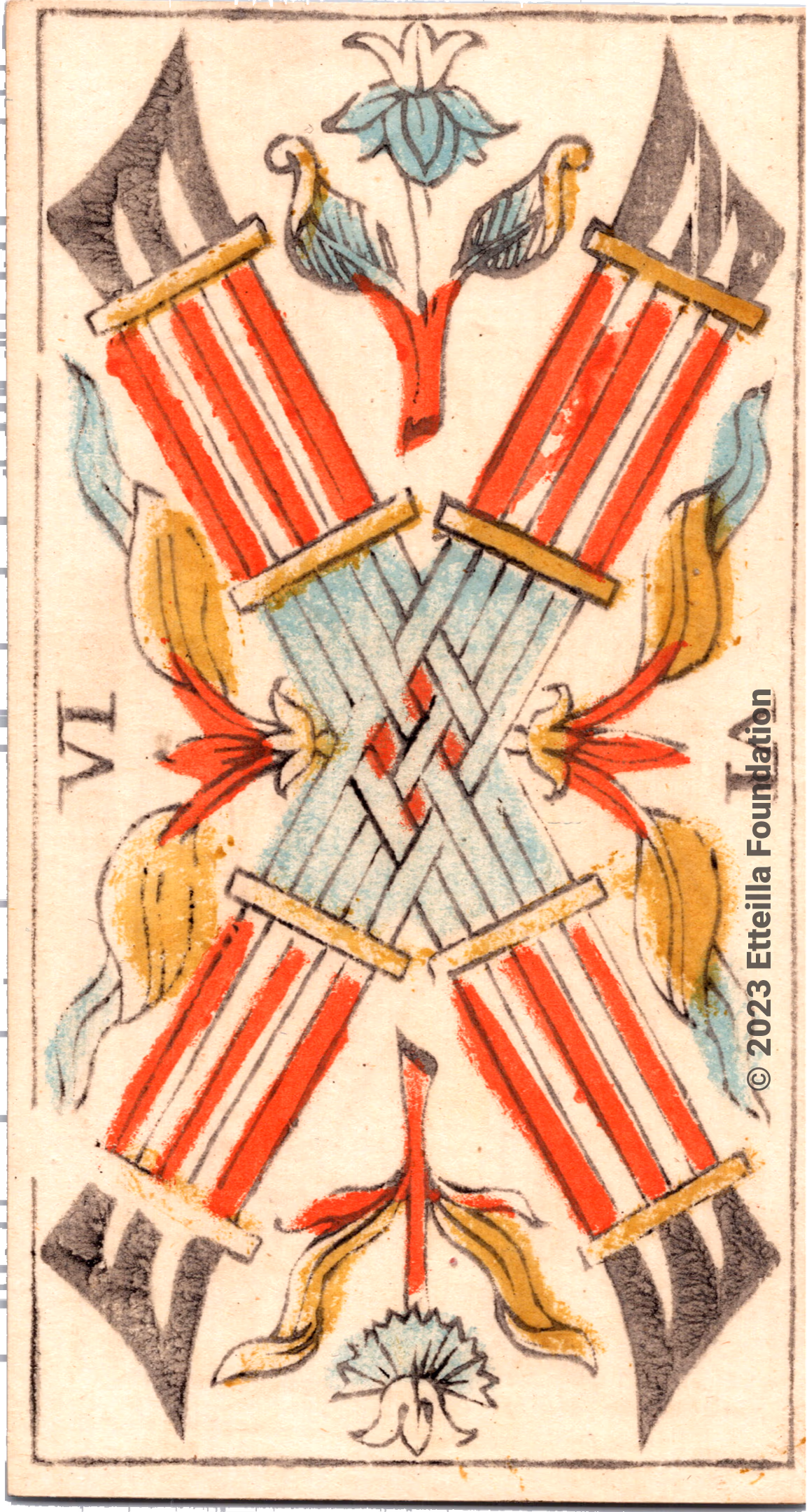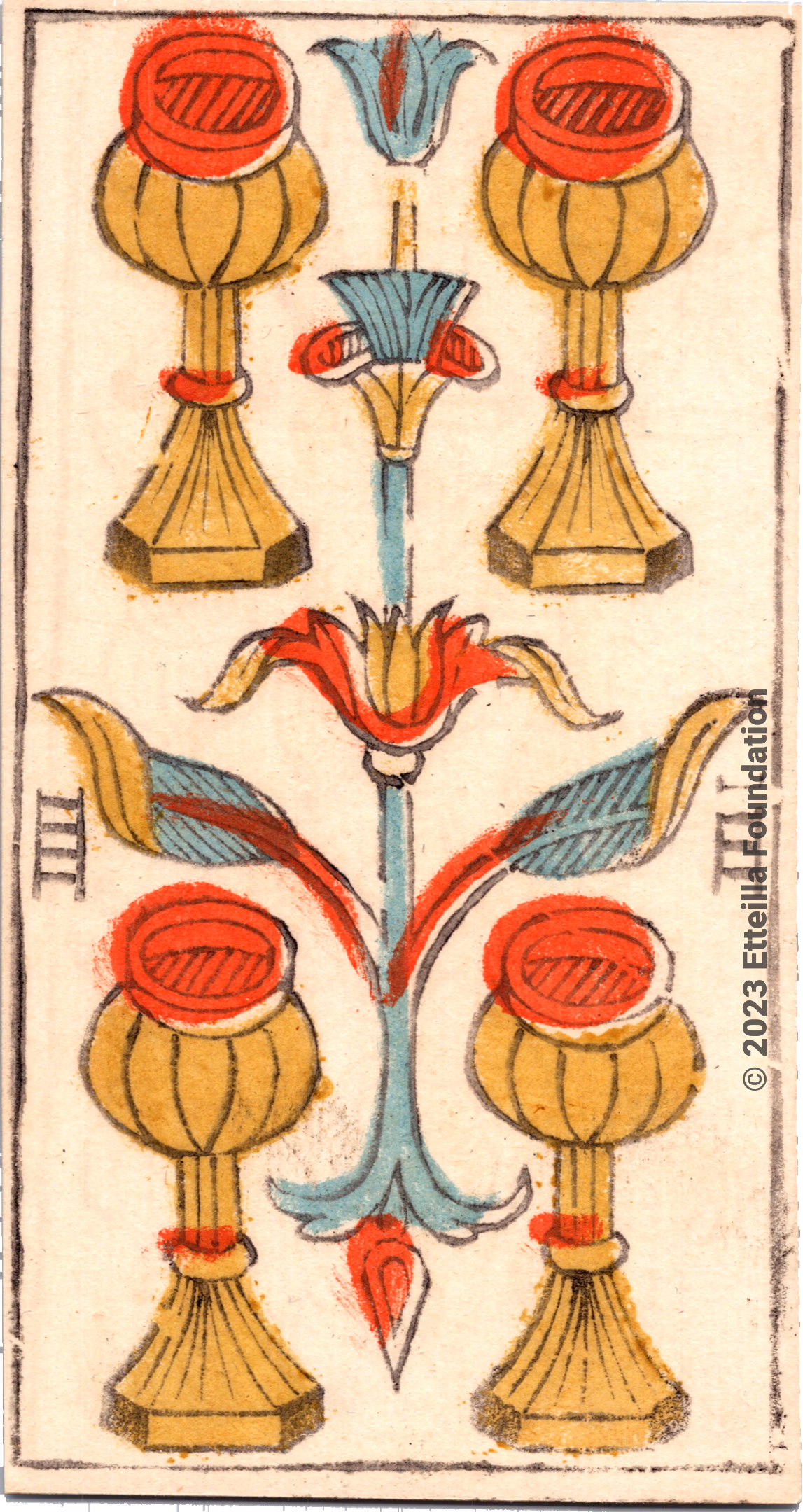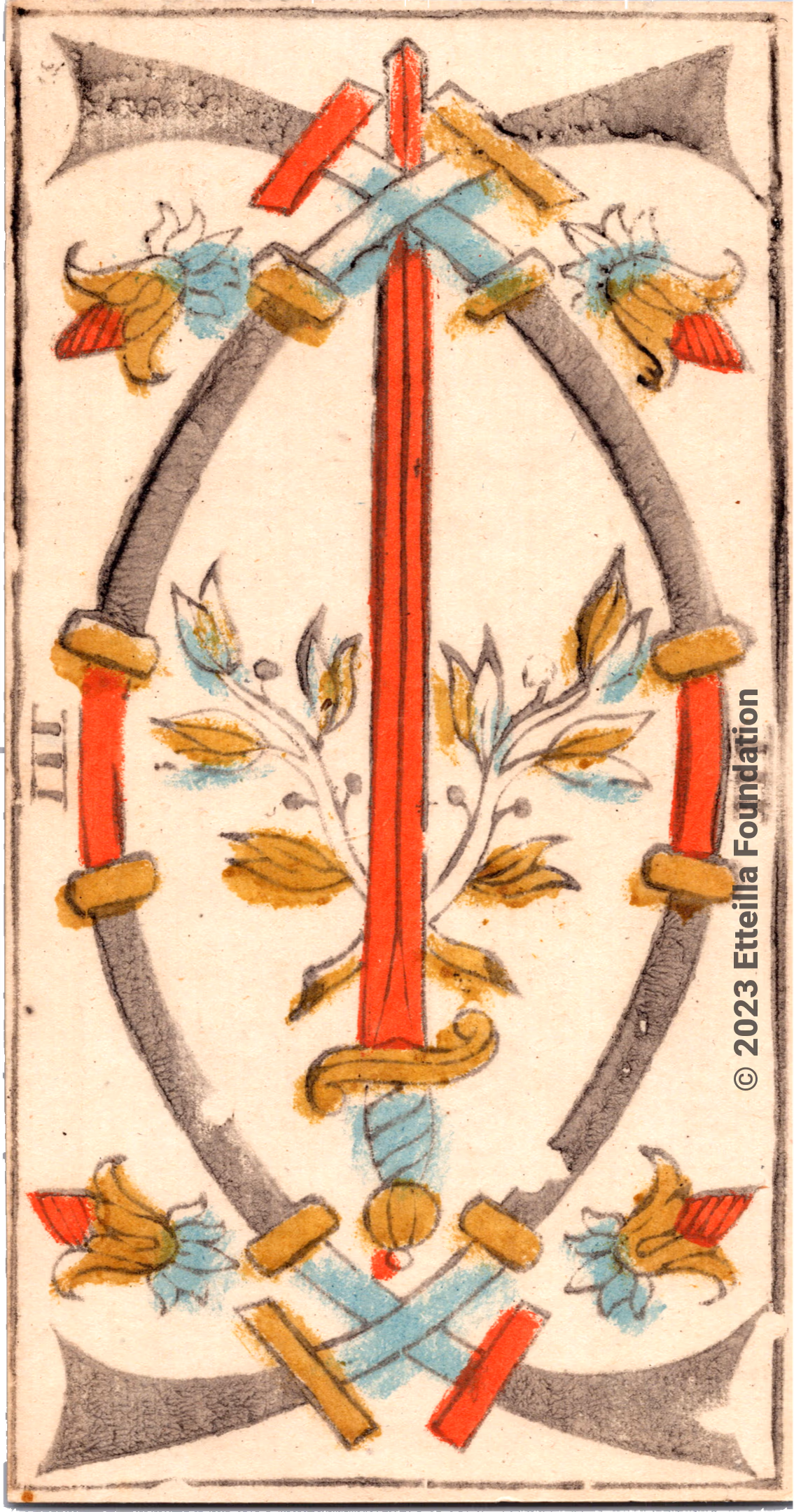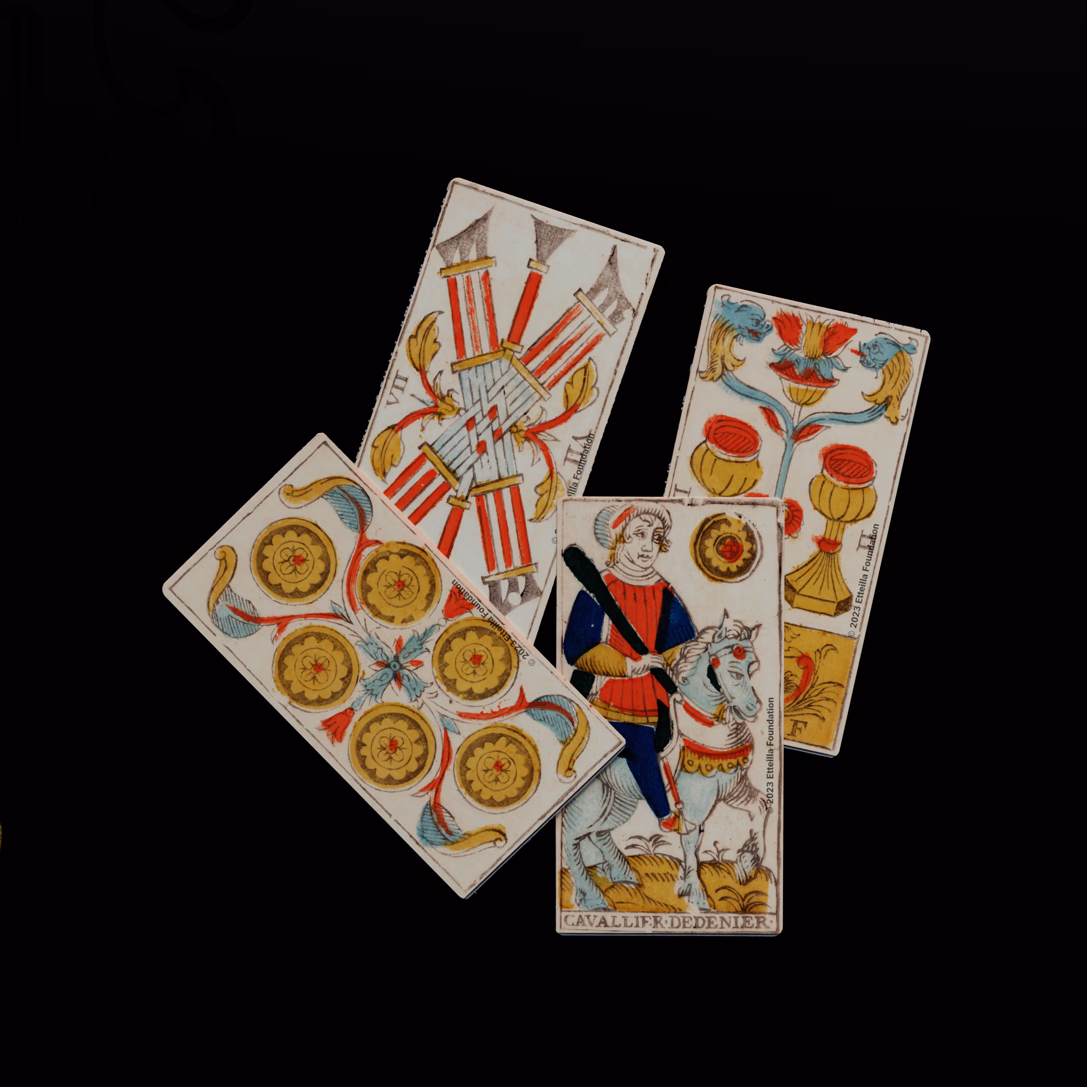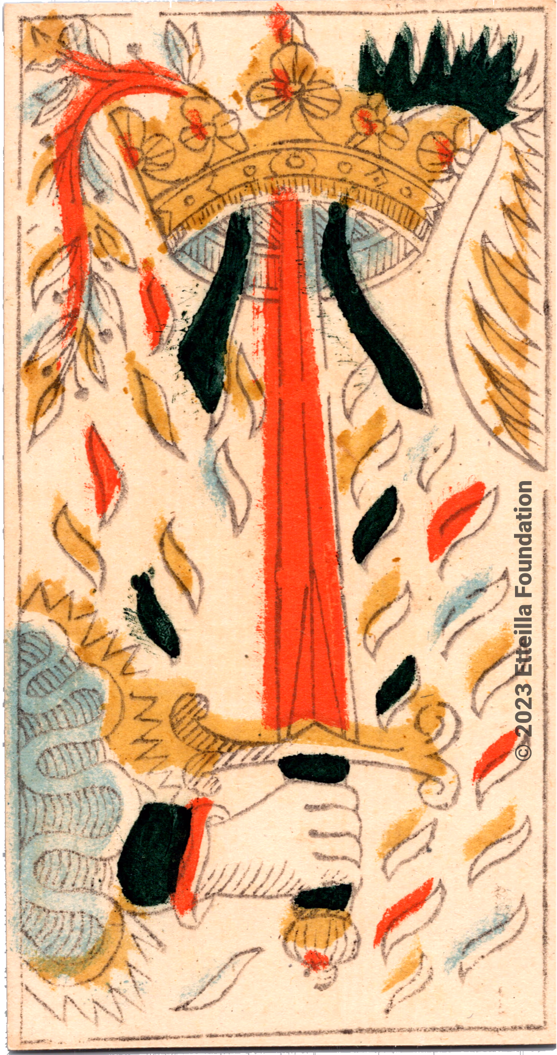 This very rare deck produced in France by Joseph Feautrier in 1792 uniquely use Italian suits and card designs instead of the French ones making this deck one of a kind for his time. To this day it remains unknown why Joseph Feautrier decided to copy the Italian style.