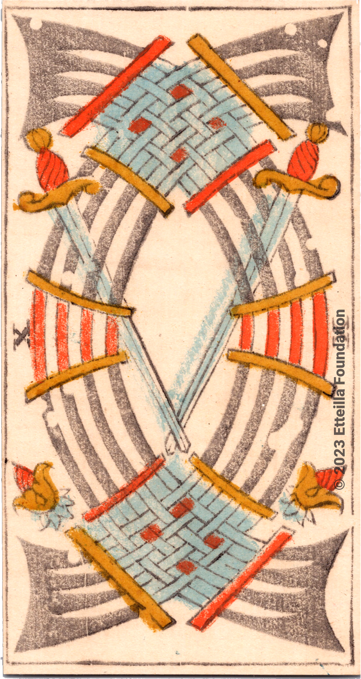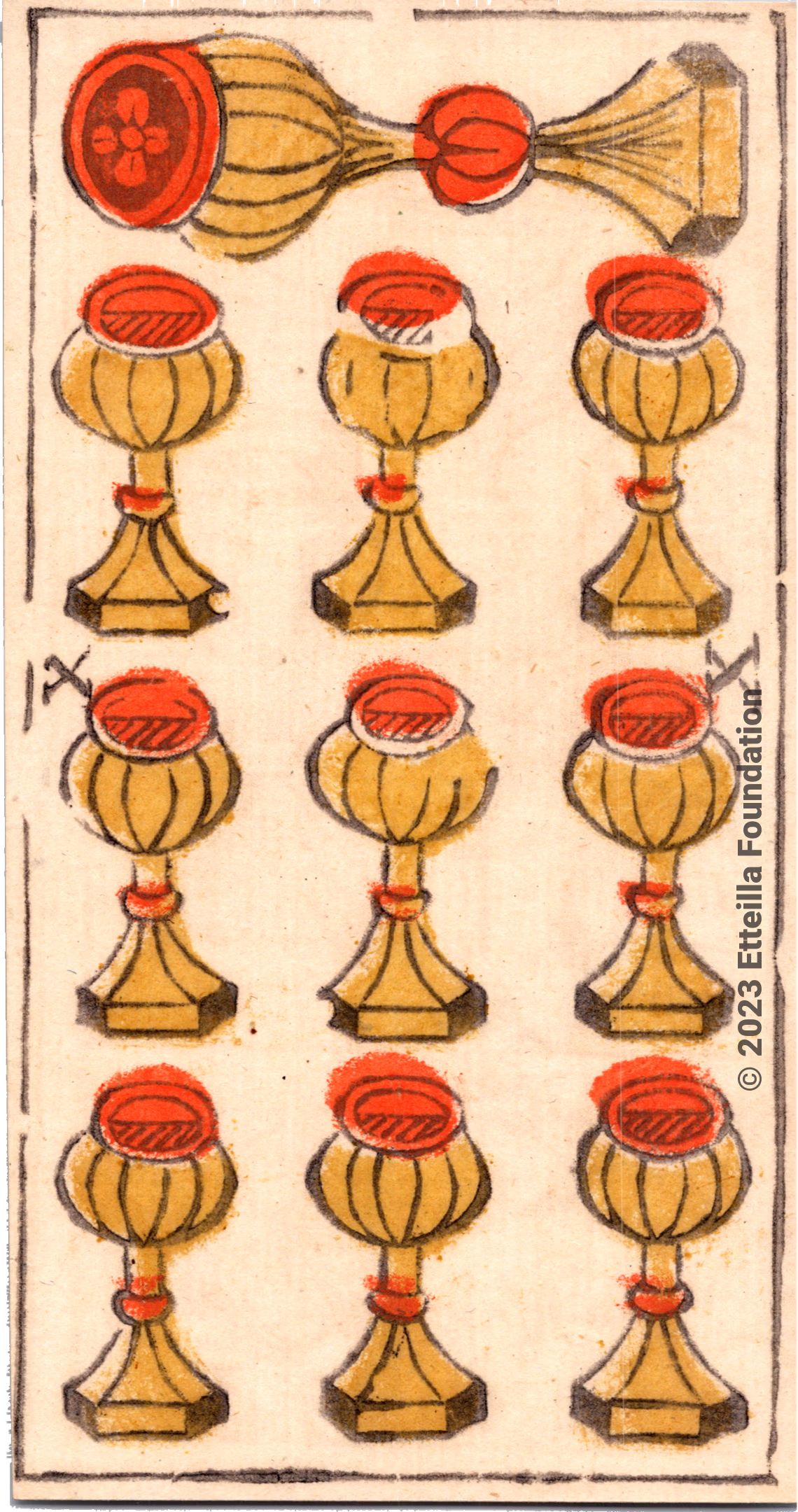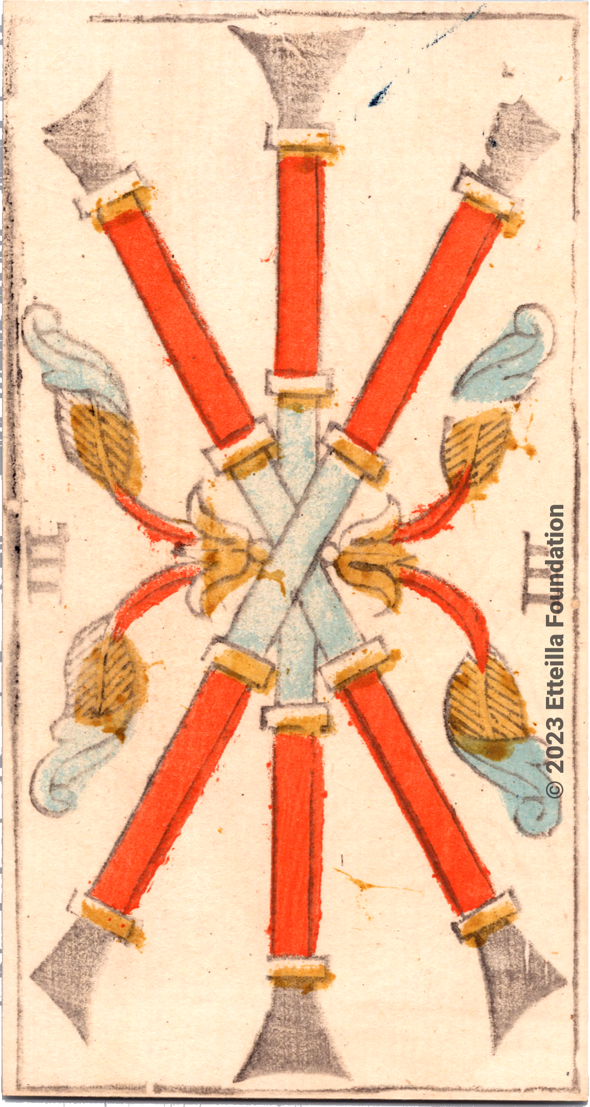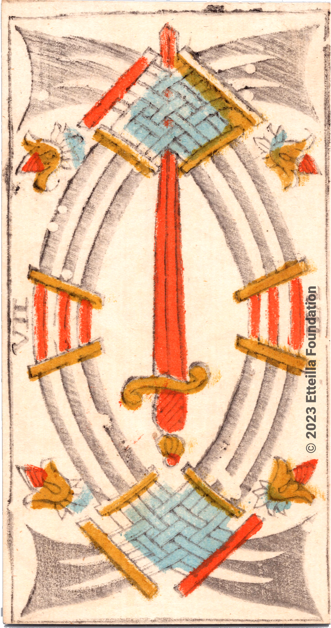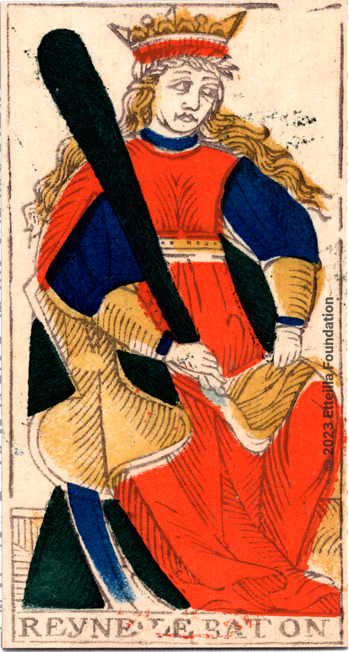 This very rare deck produced in France by Joseph Feautrier in 1792 uniquely use Italian suits and card designs instead of the French ones making this deck one of a kind for his time. To this day it remains unknown why Joseph Feautrier decided to copy the Italian style.