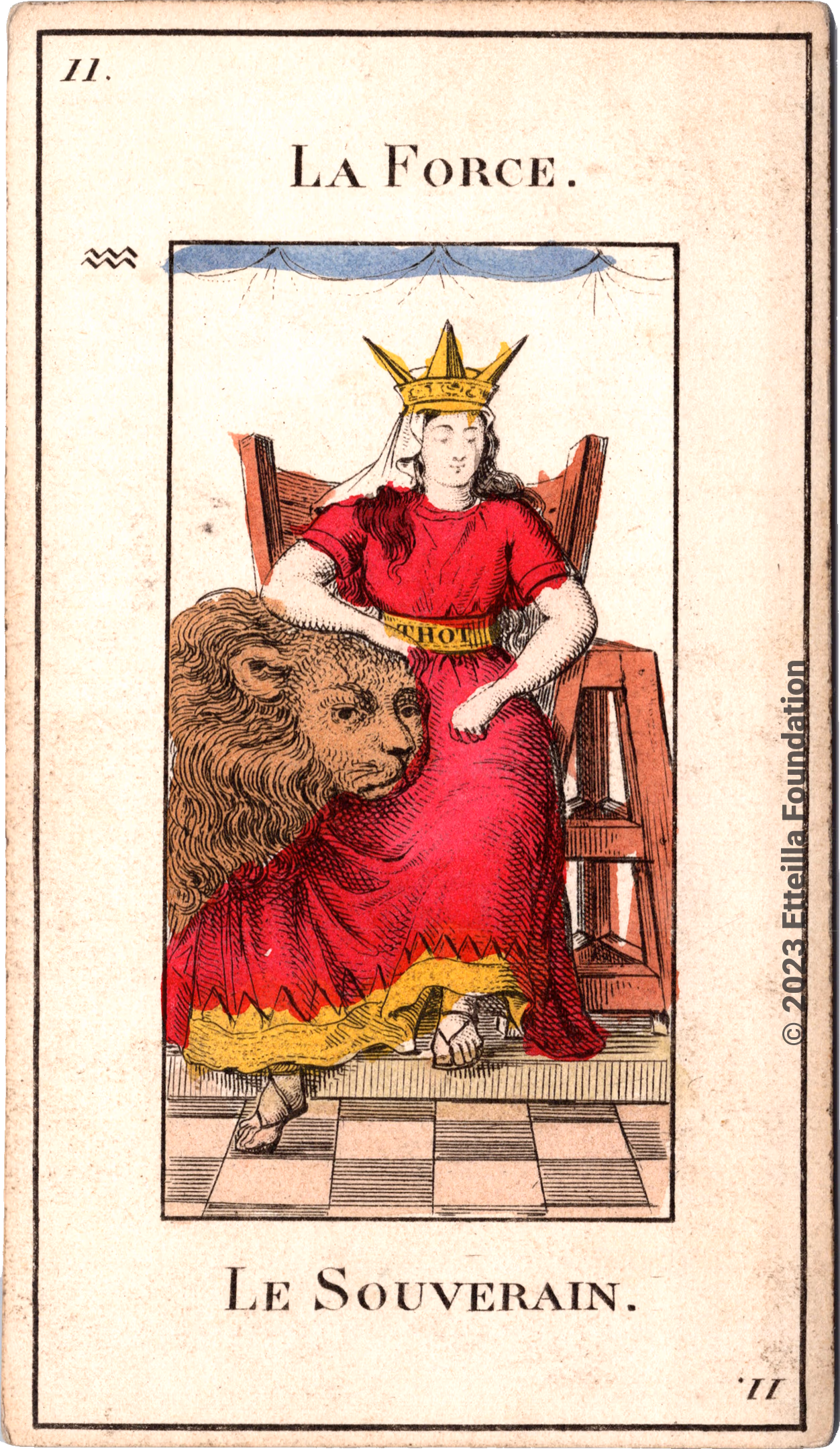 The Original Etteilla Tarot - Le Jeu de Toth is a Divination Tarot deck created by the occultist Etteilla (Jean-Baptiste Alliette), the first professional tarot reader, in France around 1791. The deck’s illustrations were created by the famous engraver Pierre-François Basan. This deck is historically important as it is the first to use “Madness” and the number 0 for the Fool Arcana card. It is also the first divination tarot deck to use astrological correspondences on the Major Arcana cards. Etteilla named this deck ‘Le jeu de Thoth’ and traced its origin to ancient Egypt and the temple of Memphis.