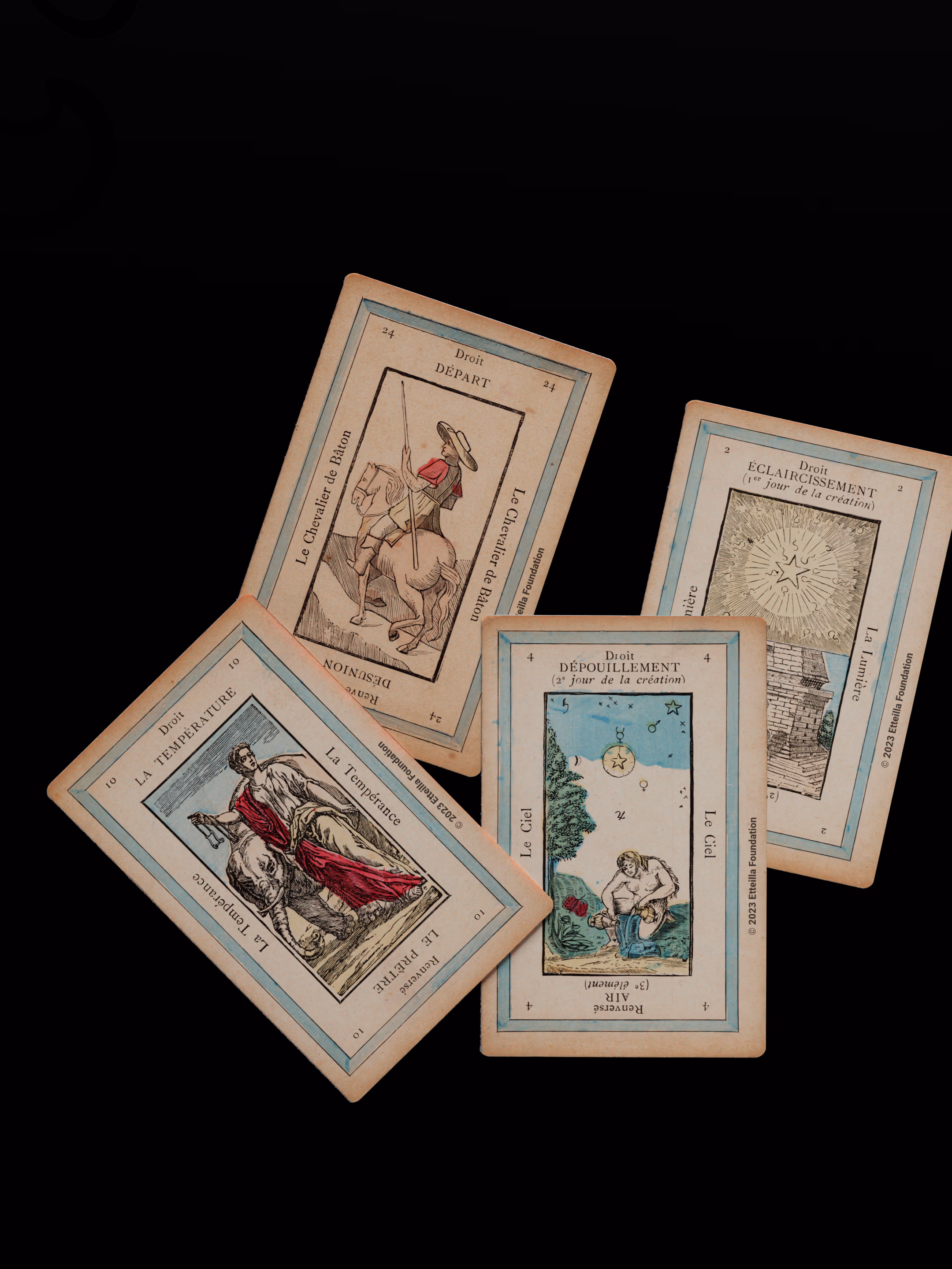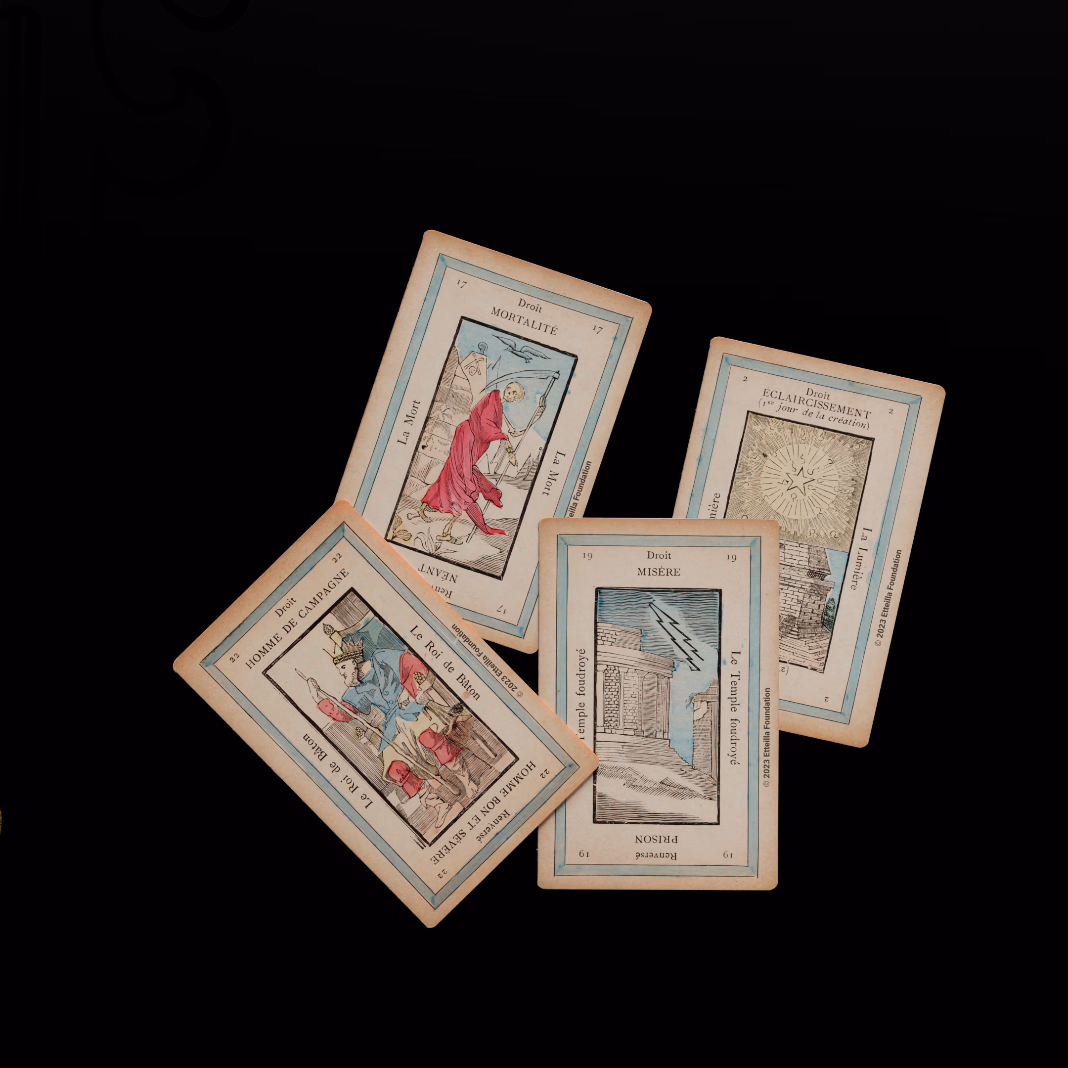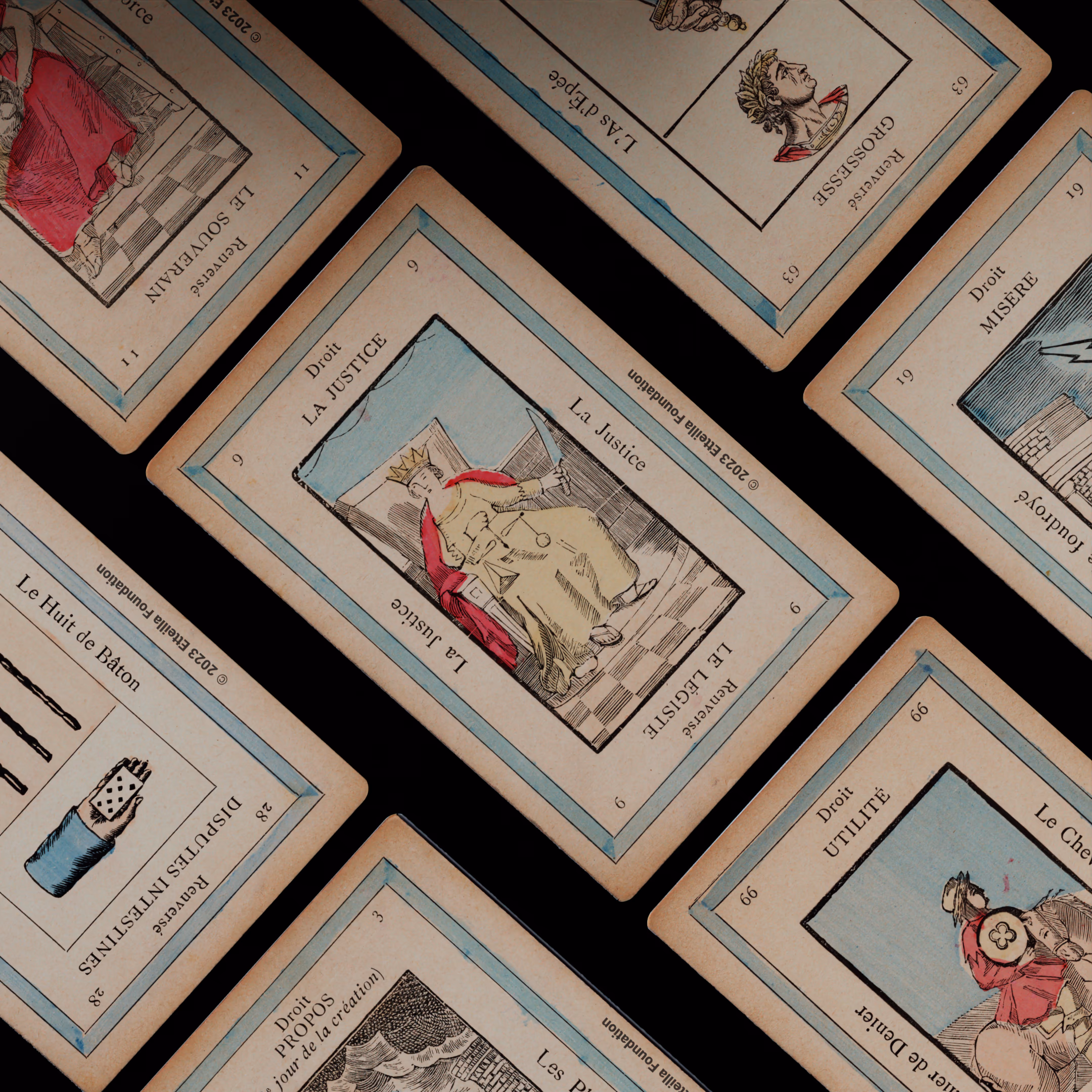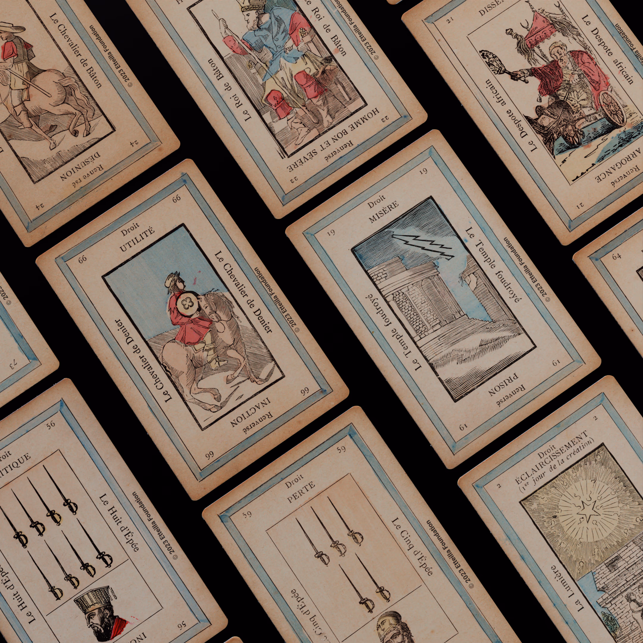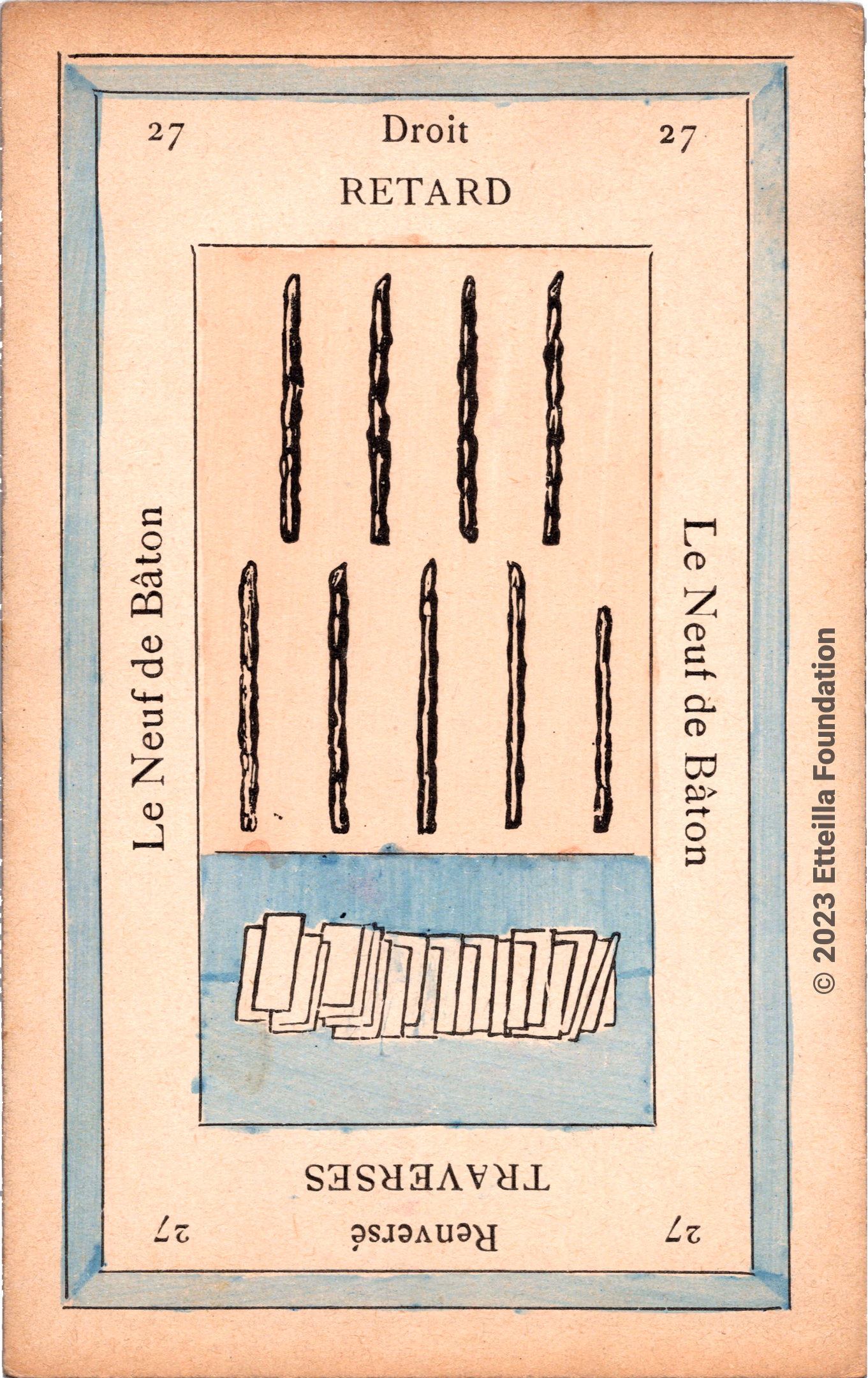 In 1838 Simon Blocquel, a student of Etteilla, published this updated version of the Etteilla tarot deck under the title “Grand livre de Thot.”. This version is commonly known as the Lismon Etteilla or Etteilla Type II.