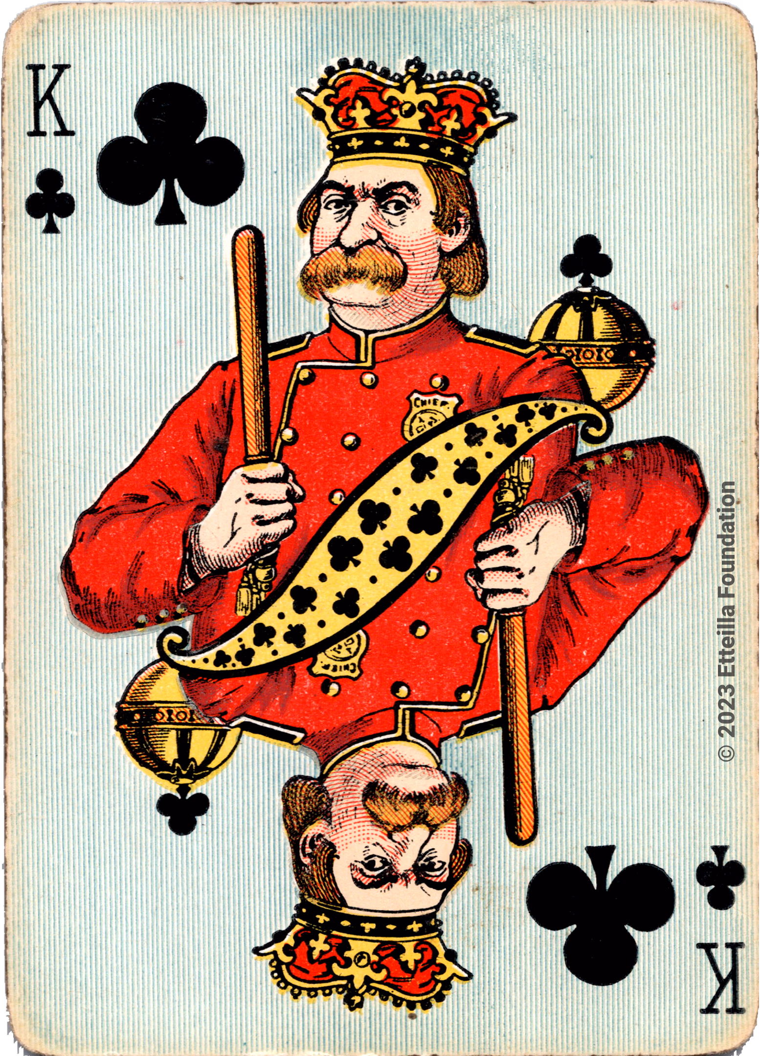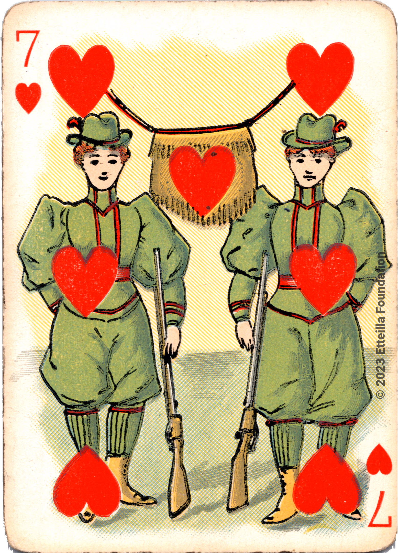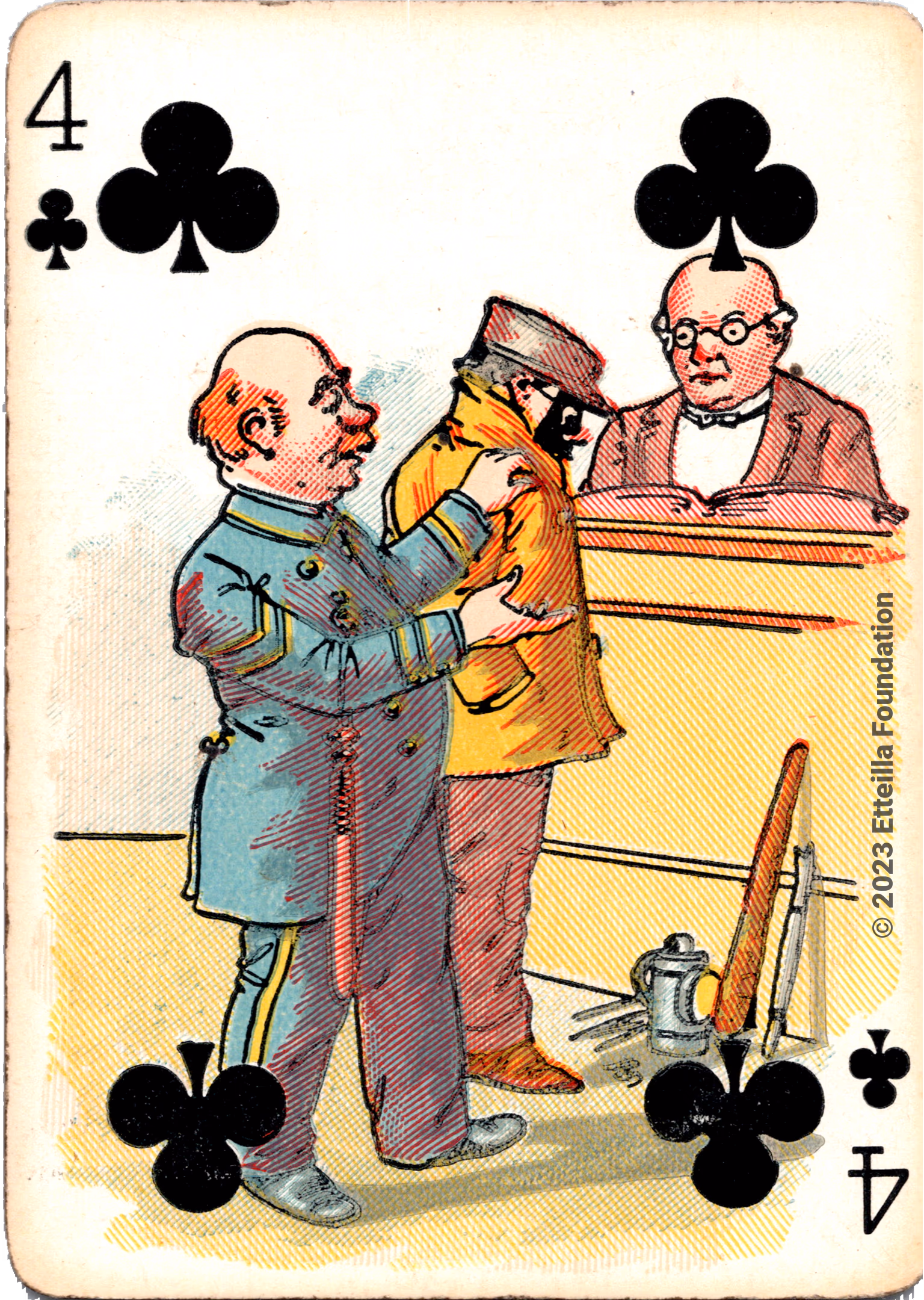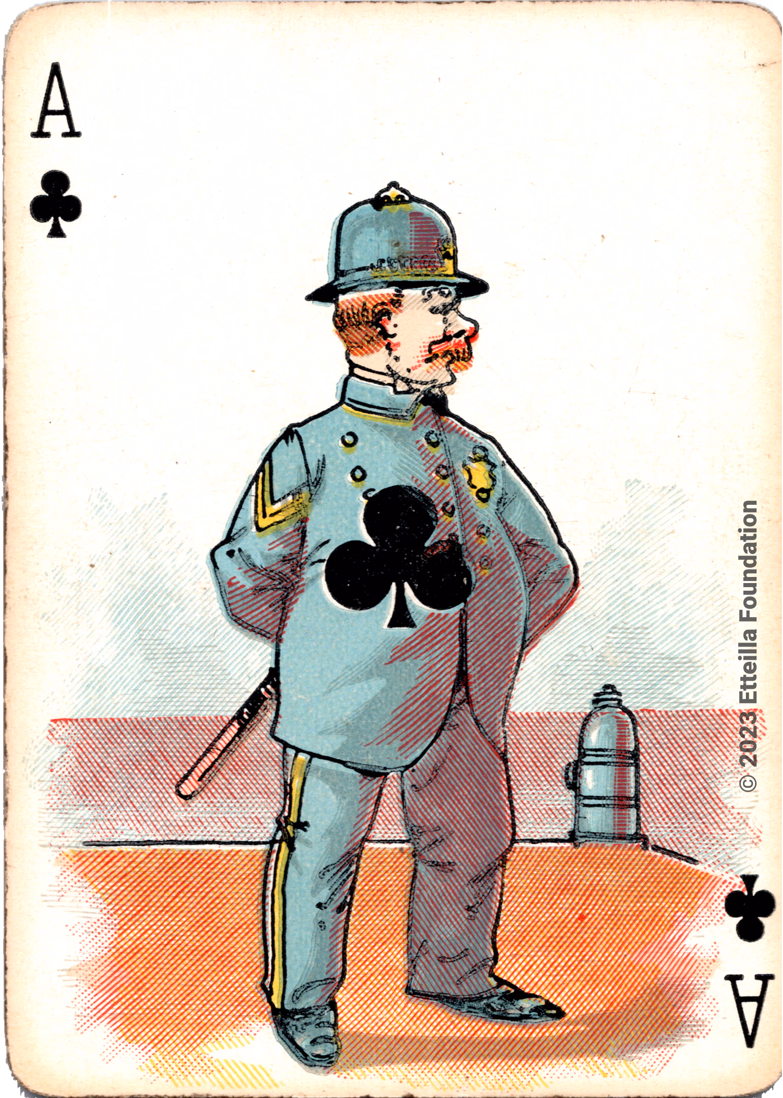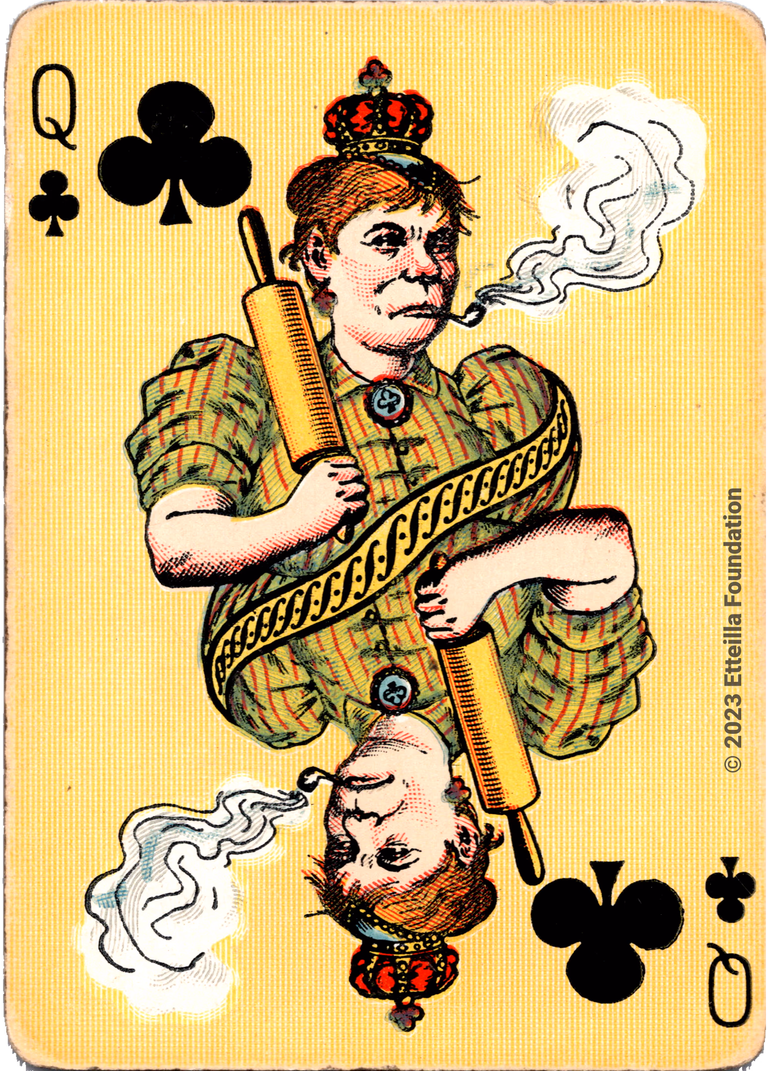 The Hustling Joe No 61 is a Transformation Deck type of playing cards, manufactured by The United States Playing Card Company in 1895. This is the first edition of the deck with the costume on the Ace of Spades in red. The second edition immediately issued after the intial release to correct some design flaws found in the first edition changed the costume to yellow. The back design is a double-ended black and white scene of gnomes ice skating in the moonlight.