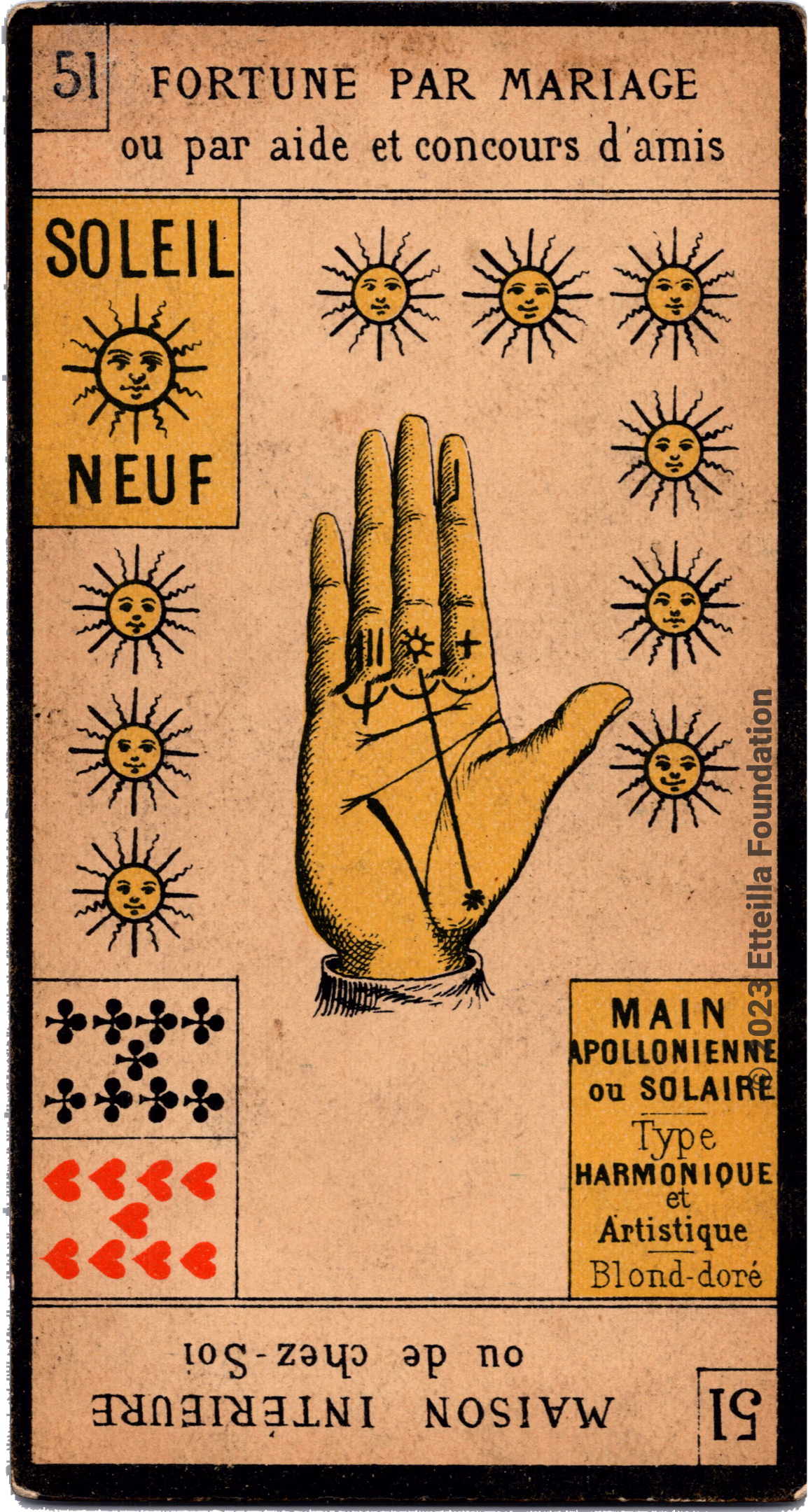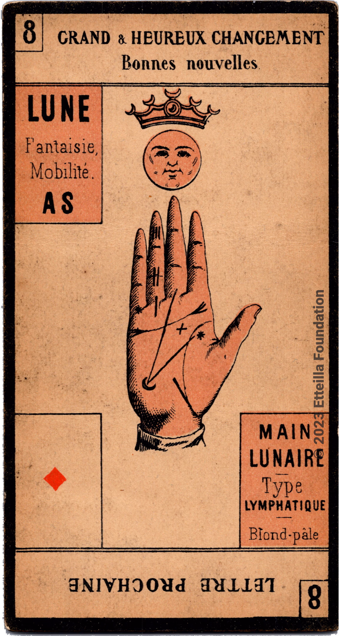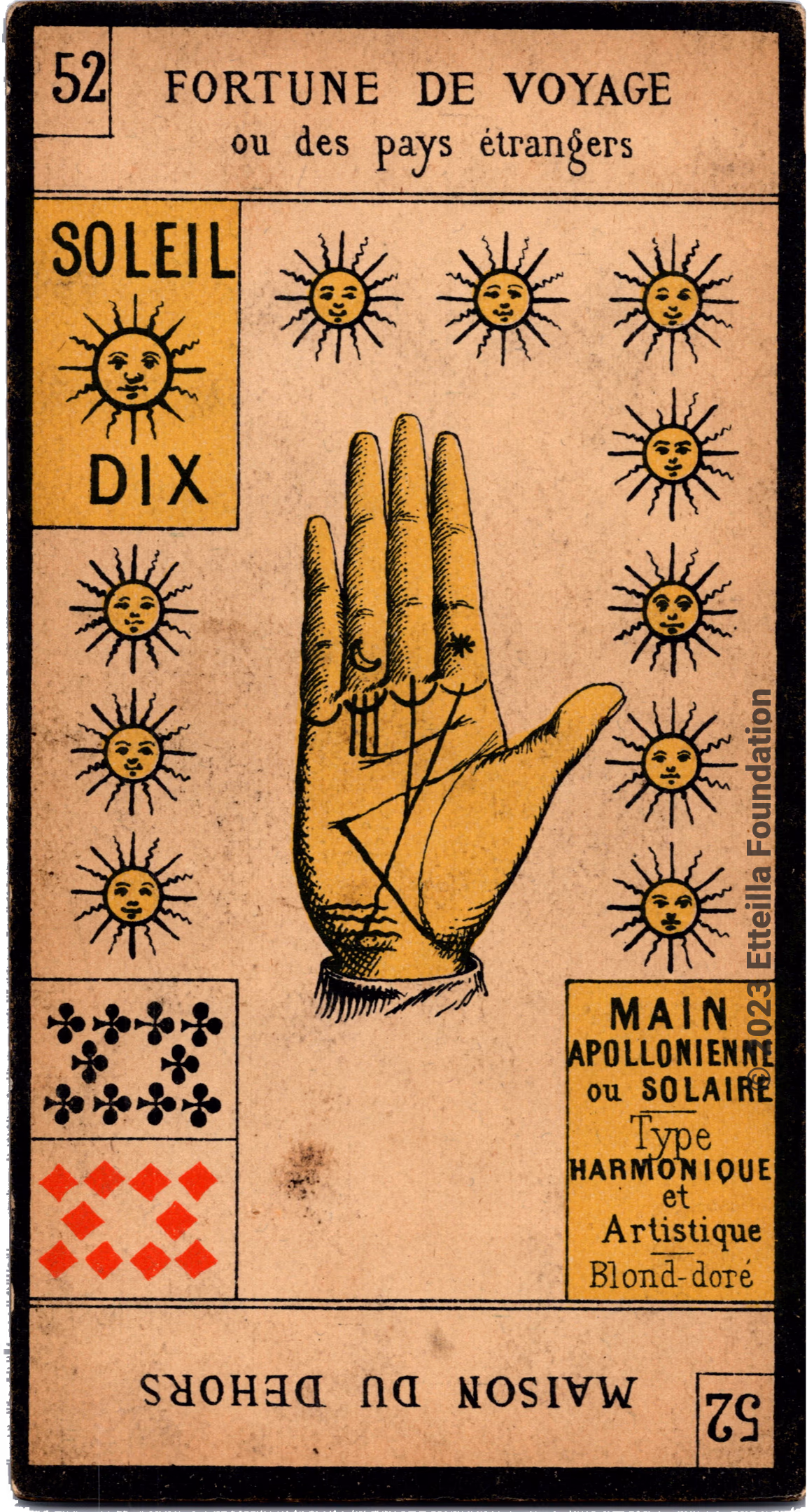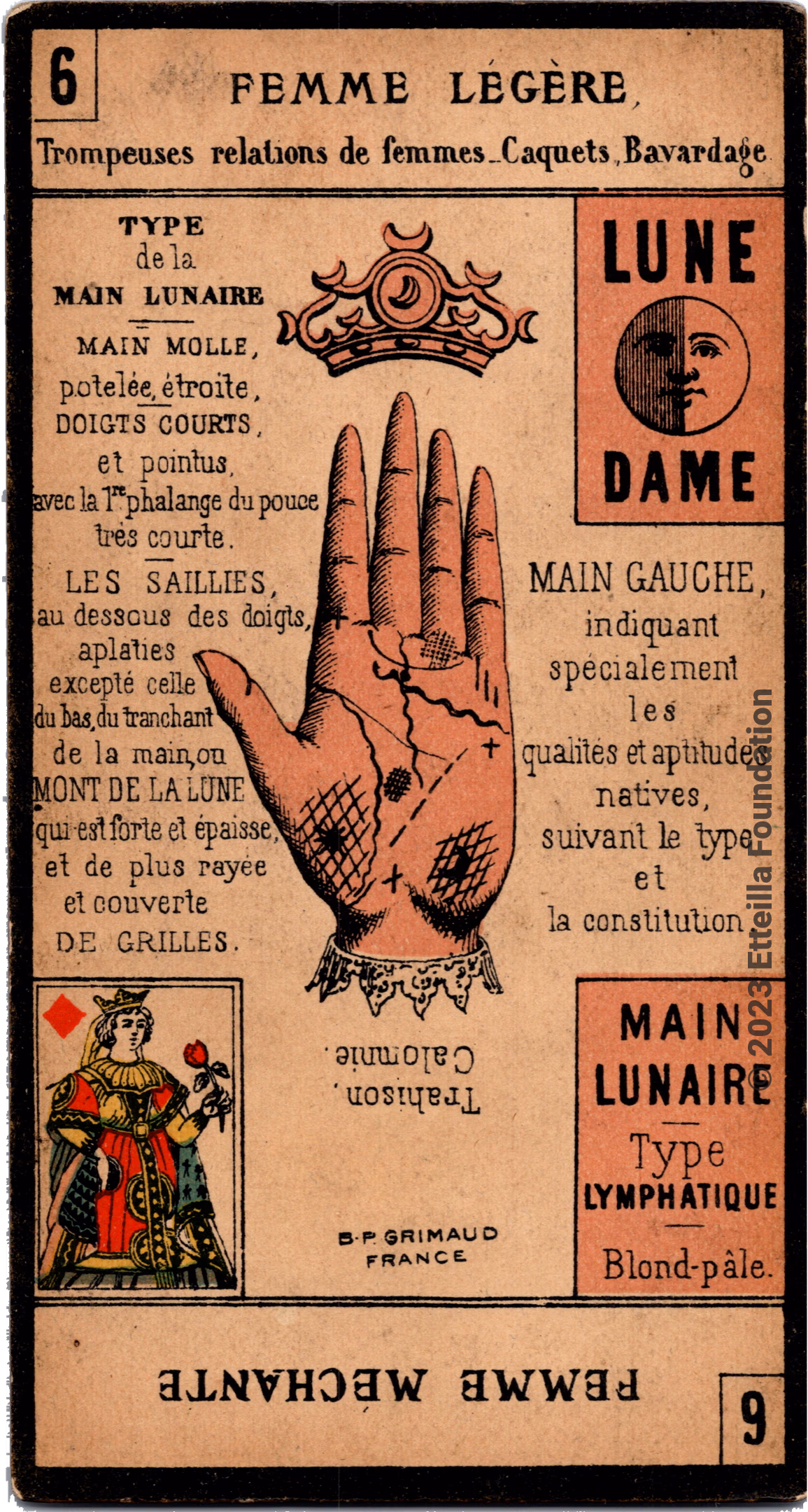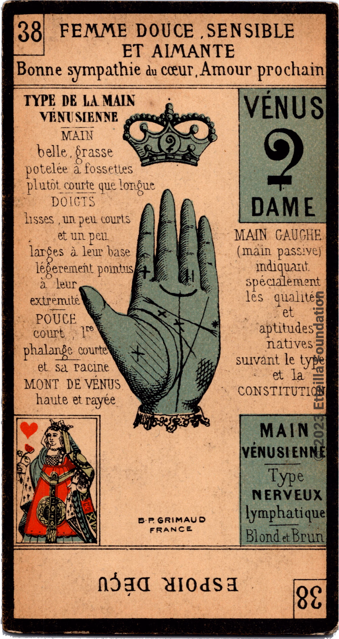 The ‘Nouveau Jeu de la main’ created by Adèle Moreau a student of Mlle Lenormand is an Oracle Deck that uniquely combine card reading, astrology, and palm reading to offer a new approach to divination.