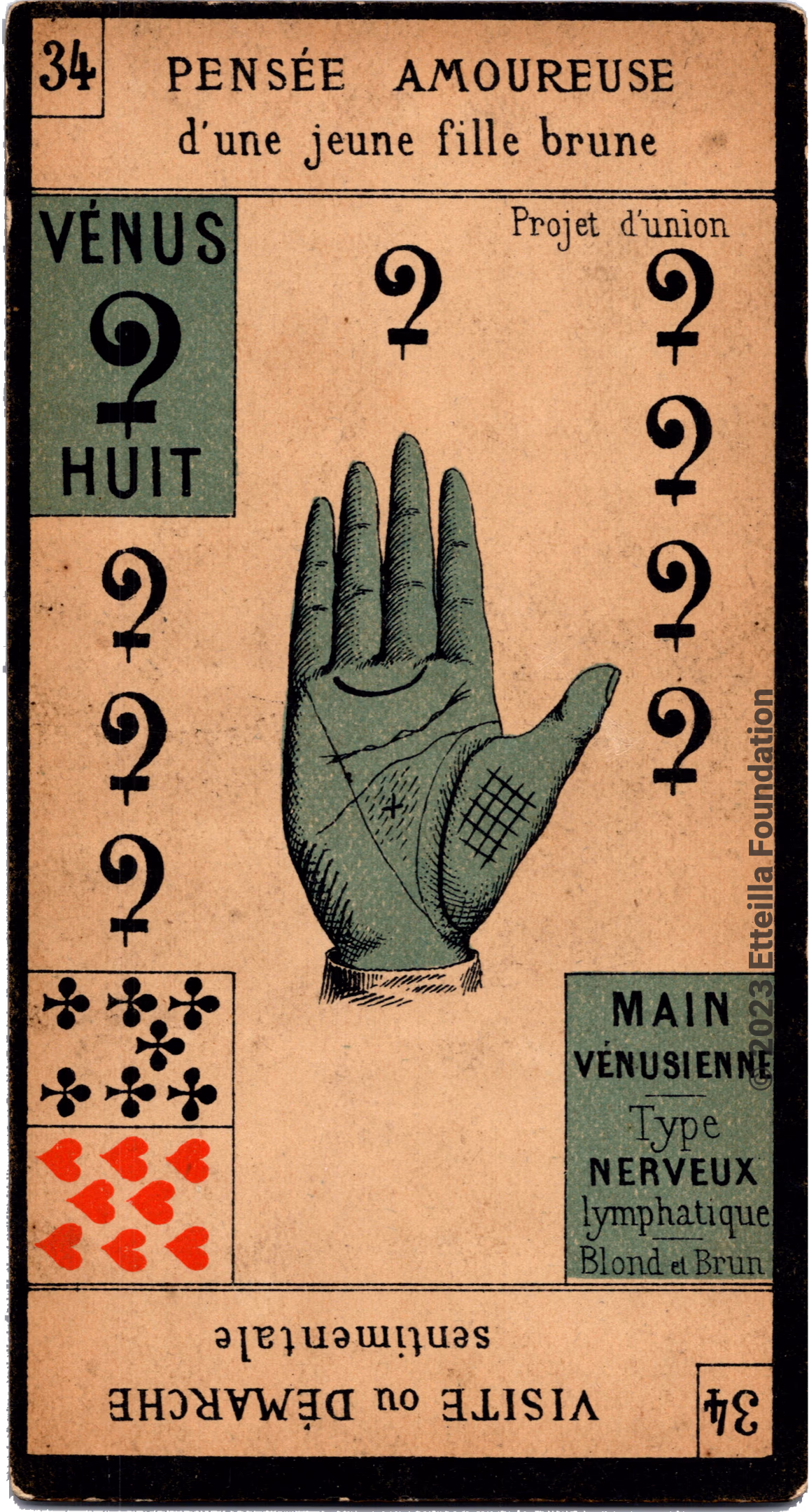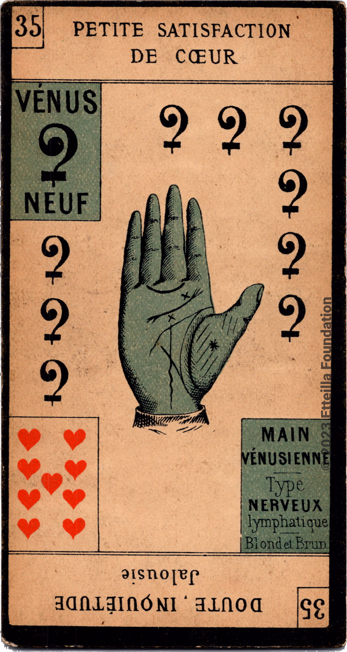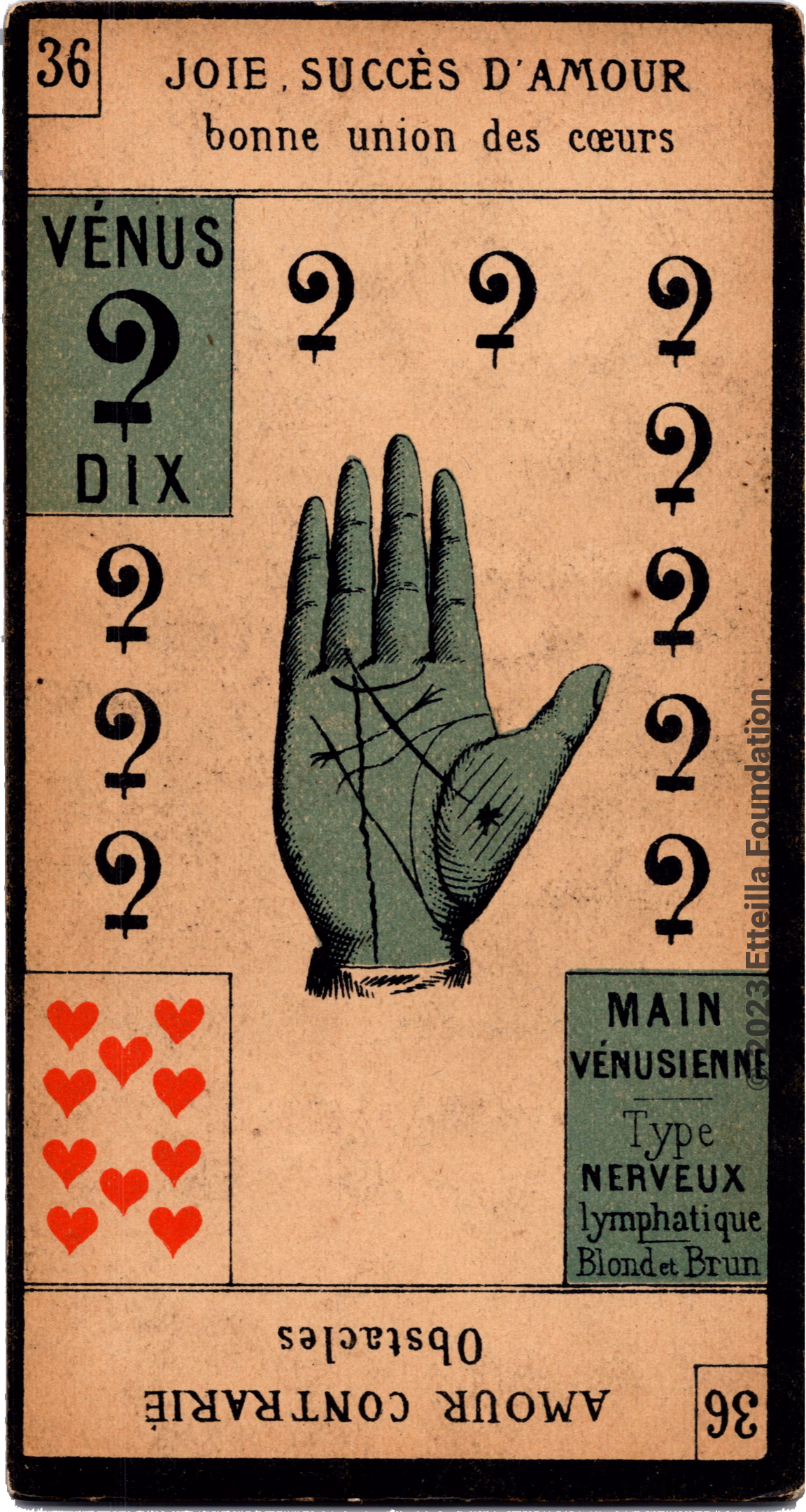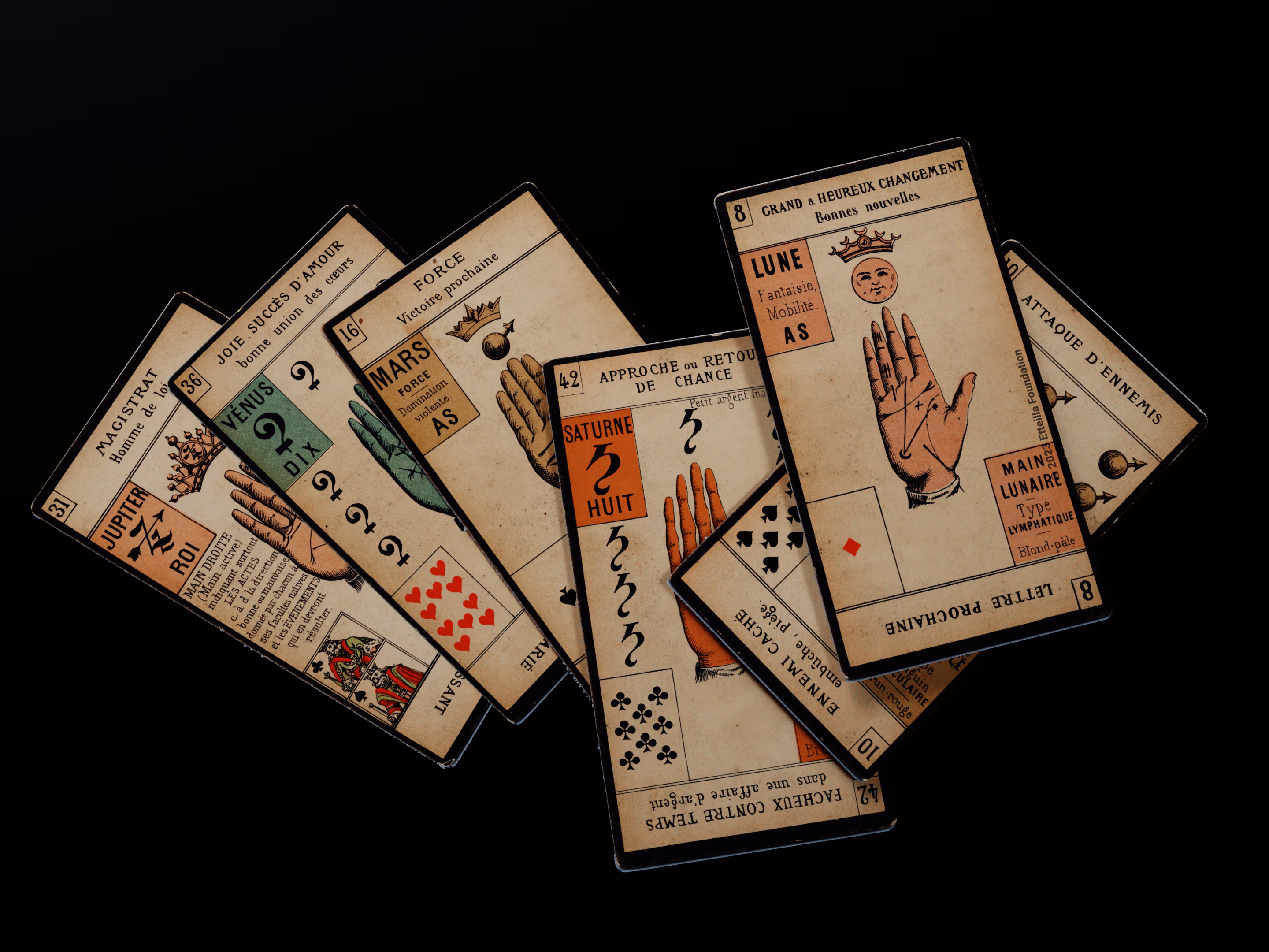 The ‘Nouveau Jeu de la main’ created by Adèle Moreau a student of Mlle Lenormand is an Oracle Deck that uniquely combine card reading, astrology, and palm reading to offer a new approach to divination.