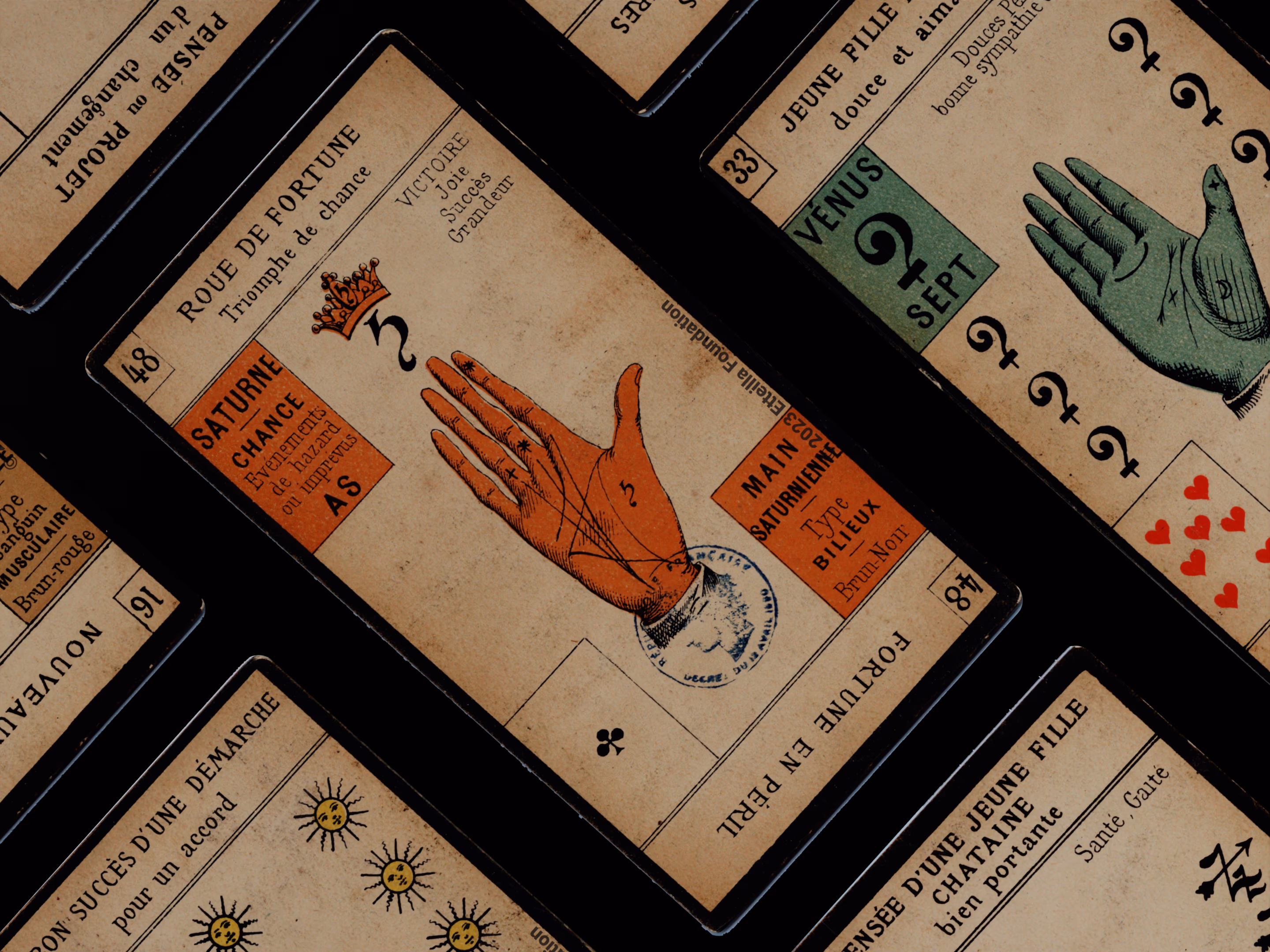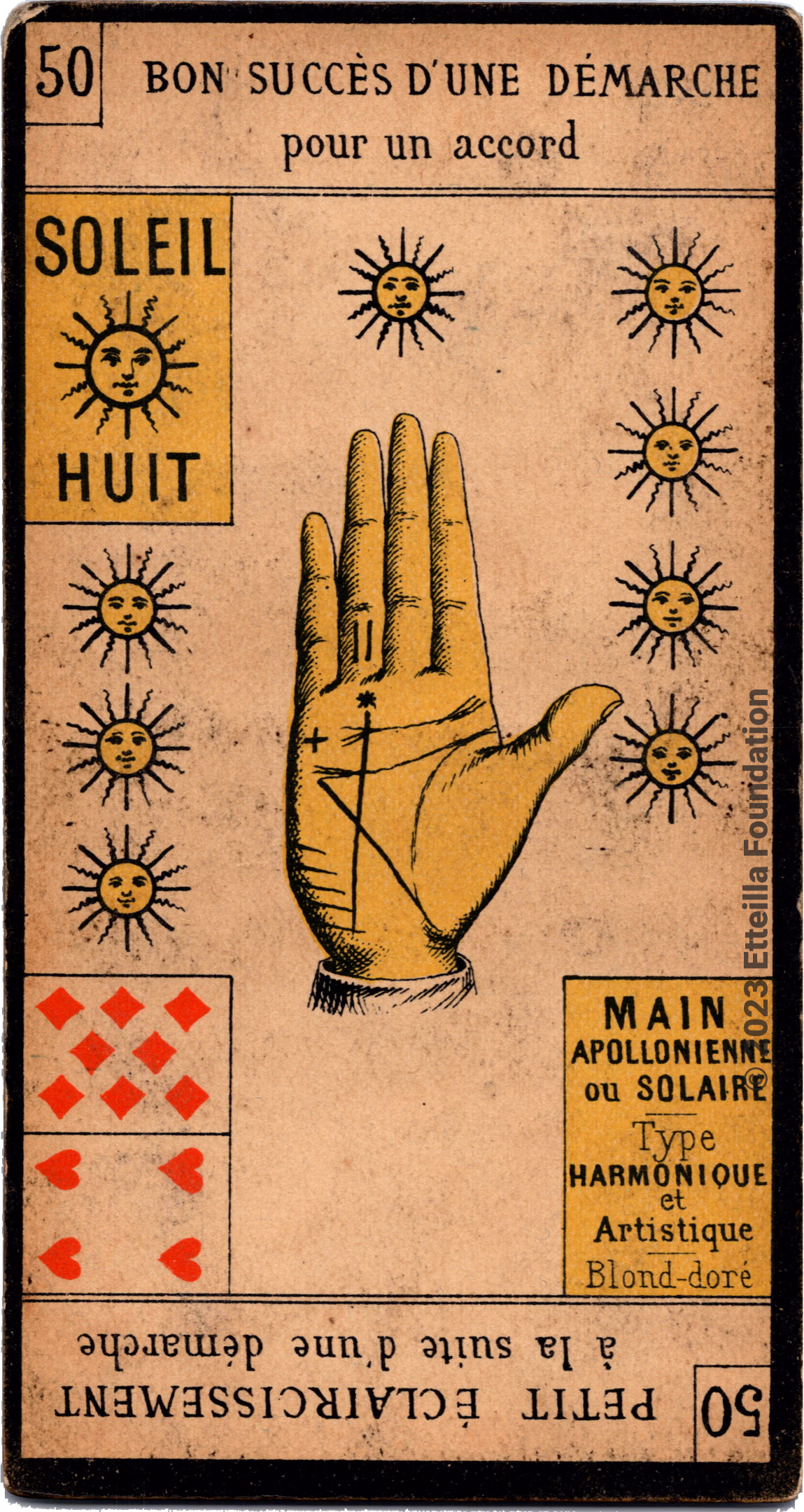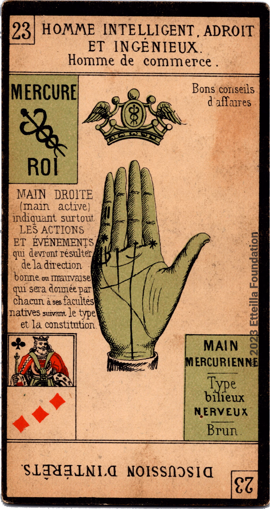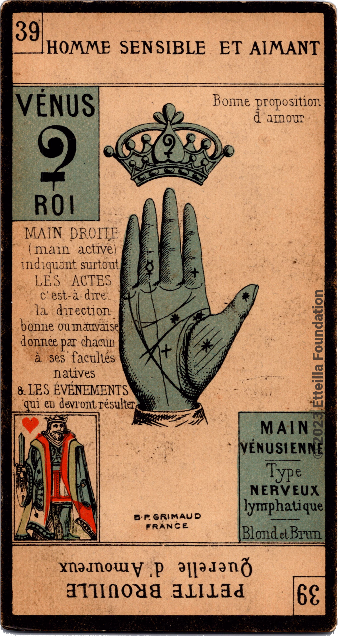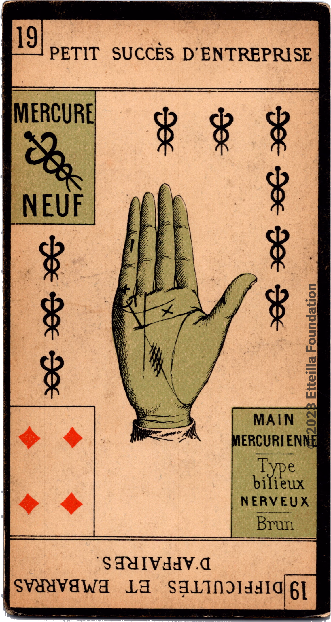 The ‘Nouveau Jeu de la main’ created by Adèle Moreau a student of Mlle Lenormand is an Oracle Deck that uniquely combine card reading, astrology, and palm reading to offer a new approach to divination.