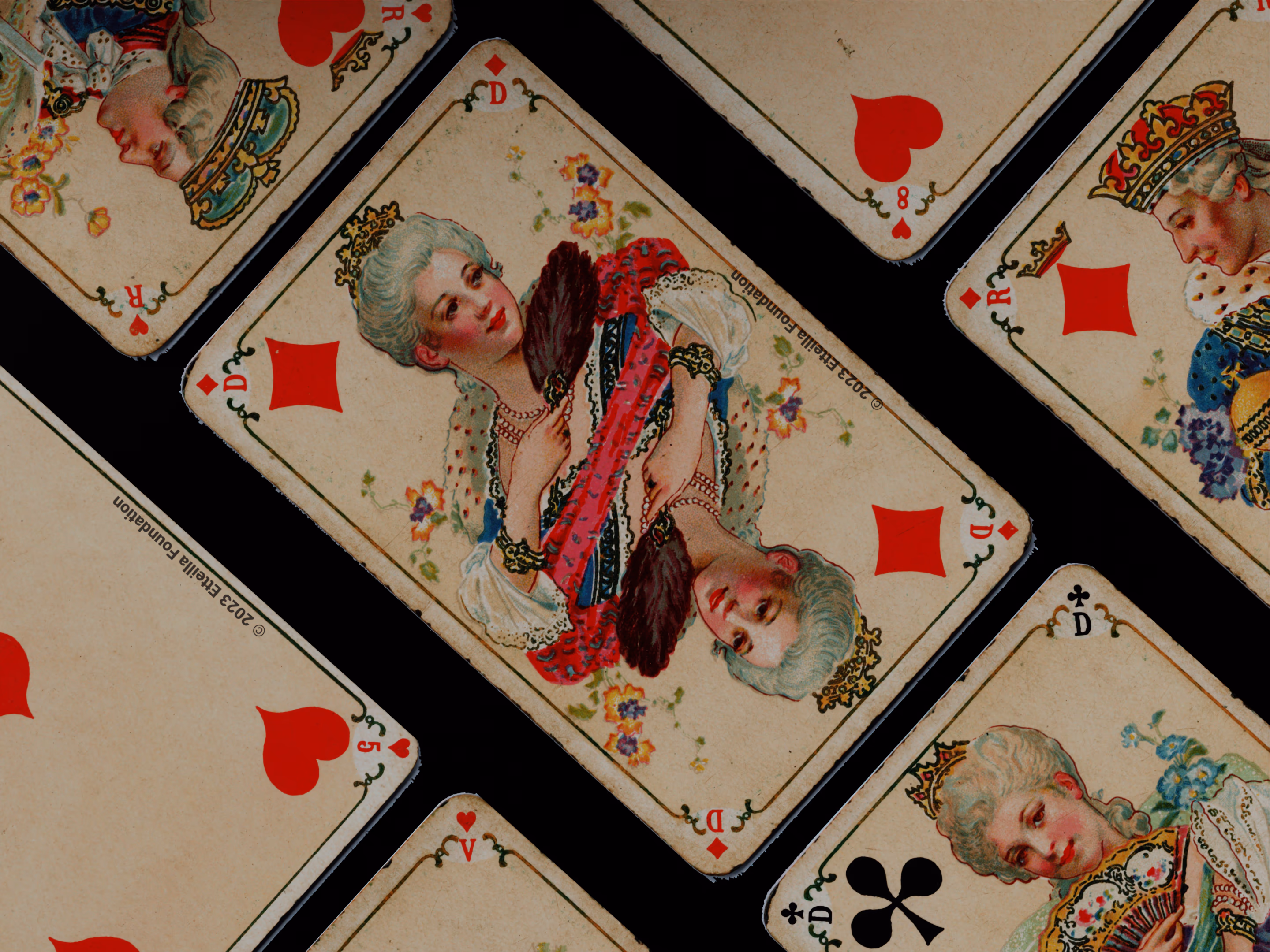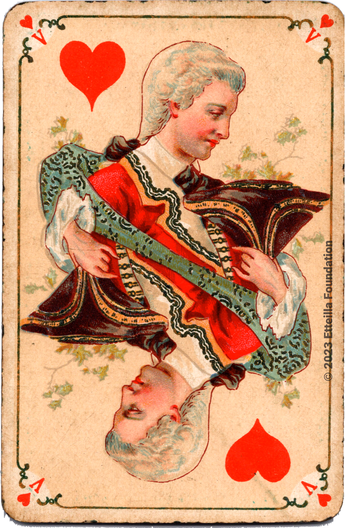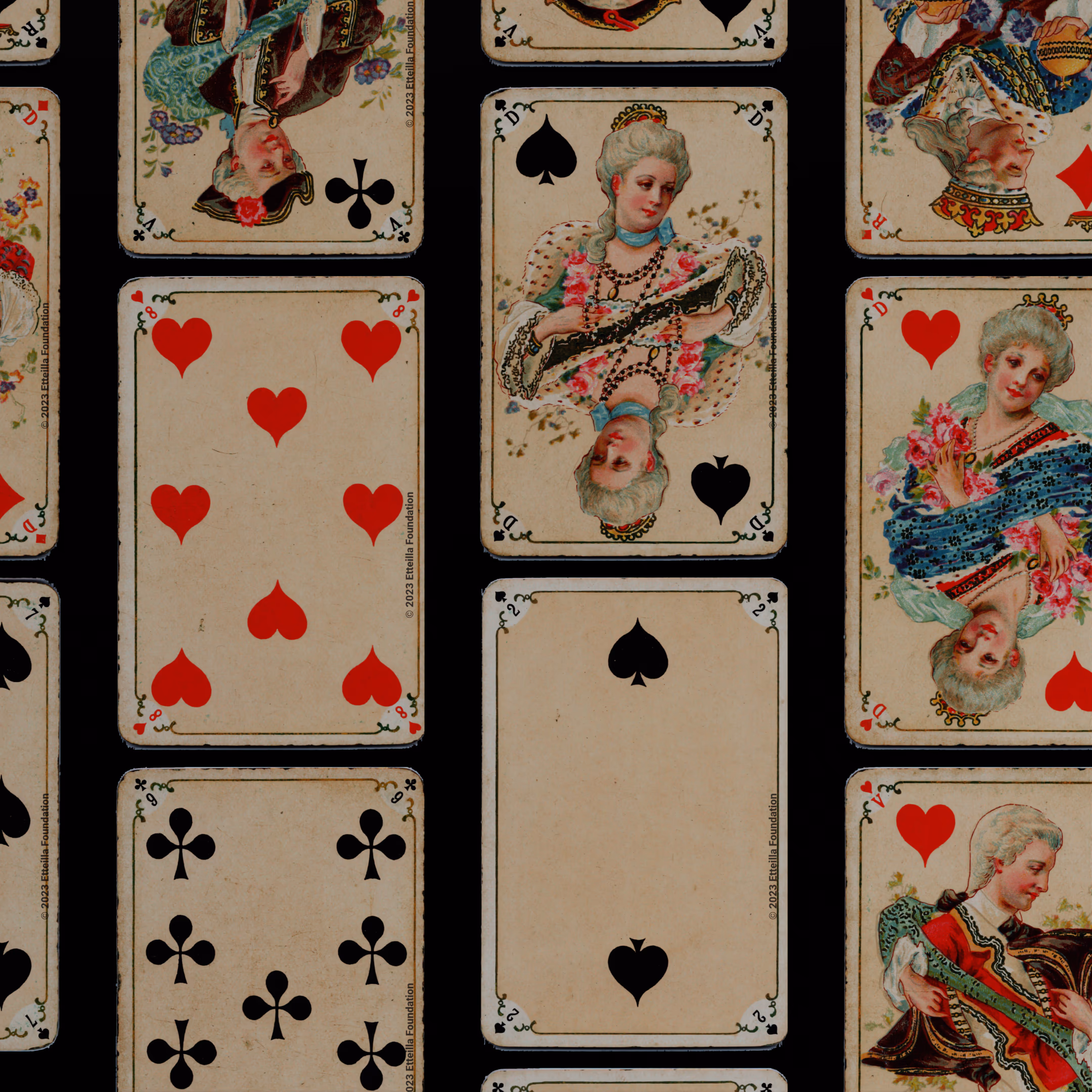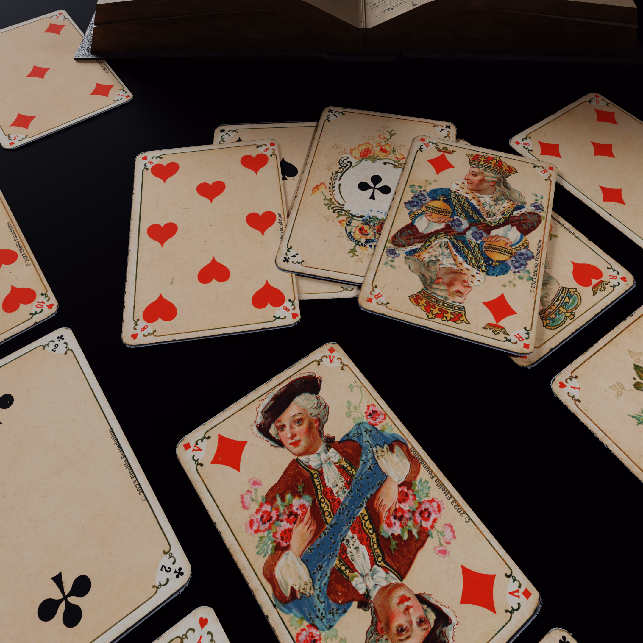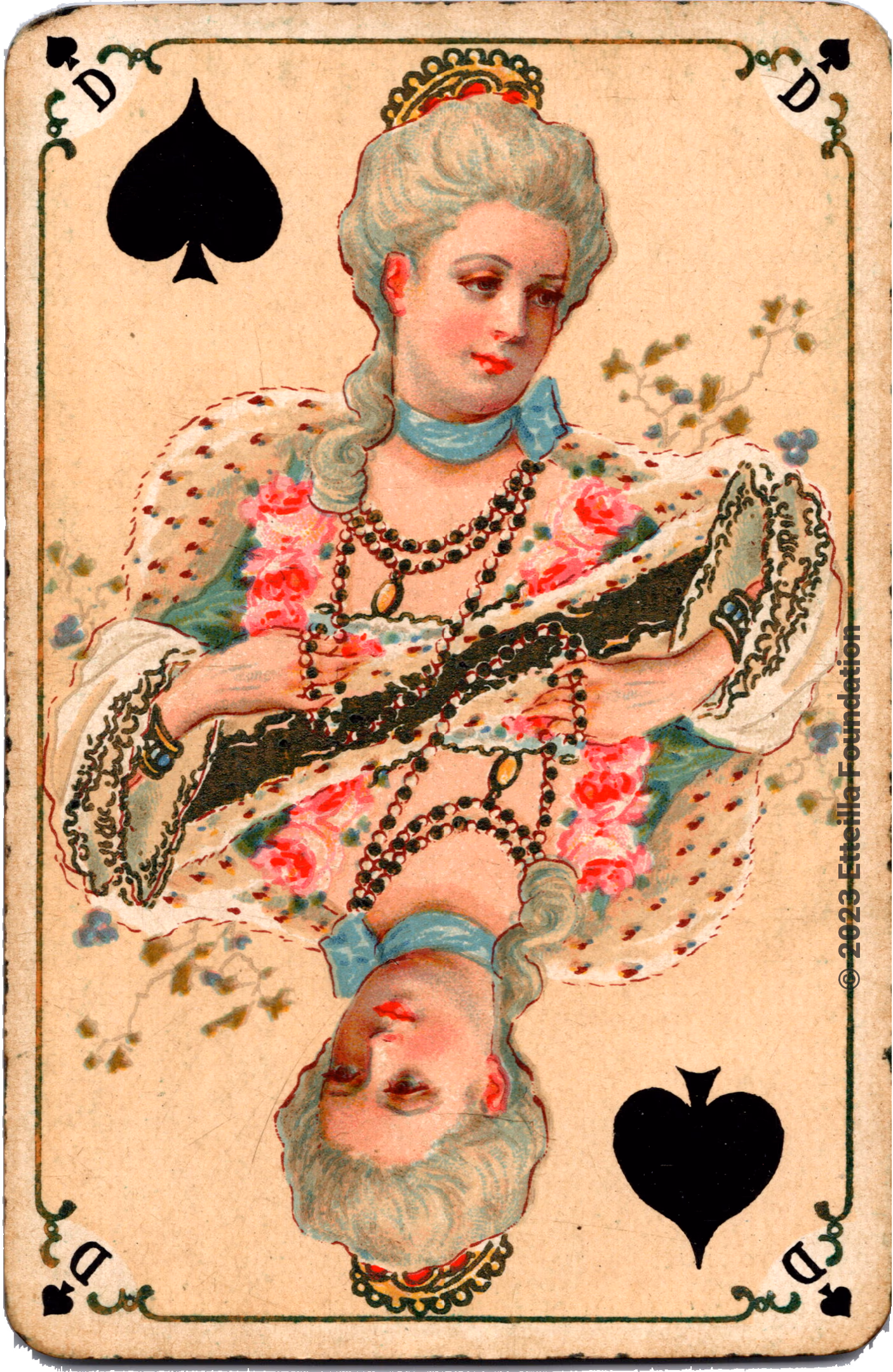 The deck is in fair condition, with all 53 cards present. The deck is complete andcome with its original box. The cards were printed using chromolithography, a technique that was popular during the time of its creation.