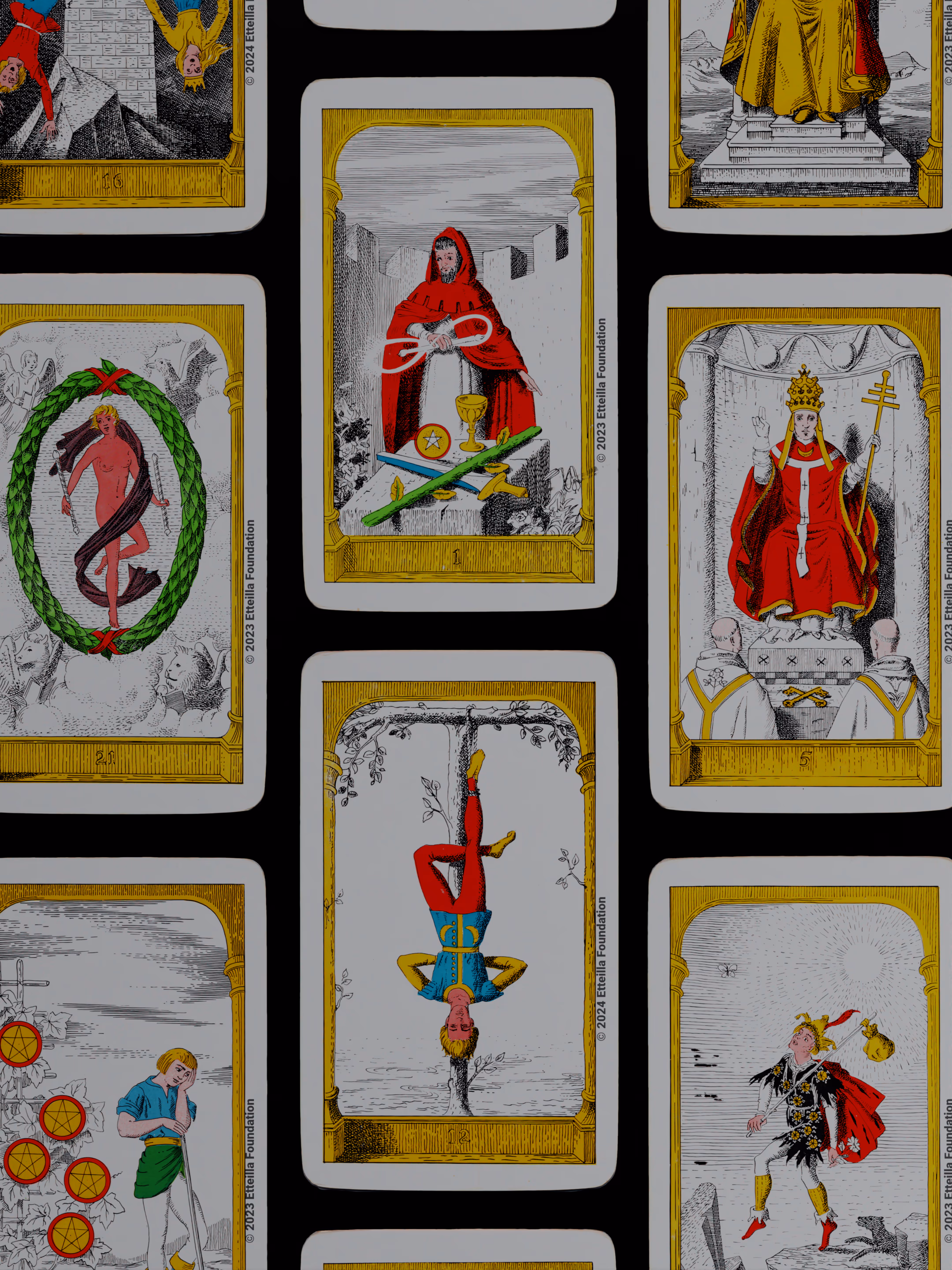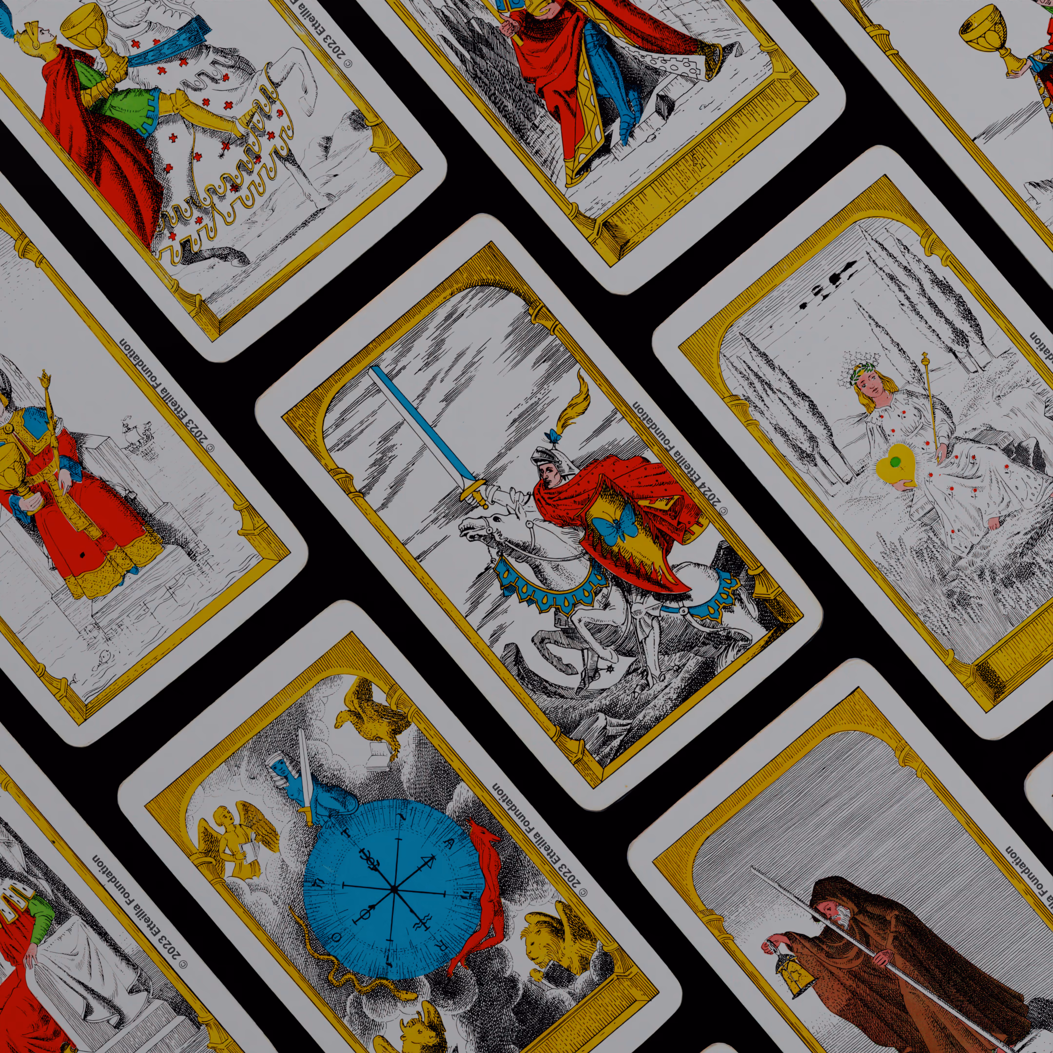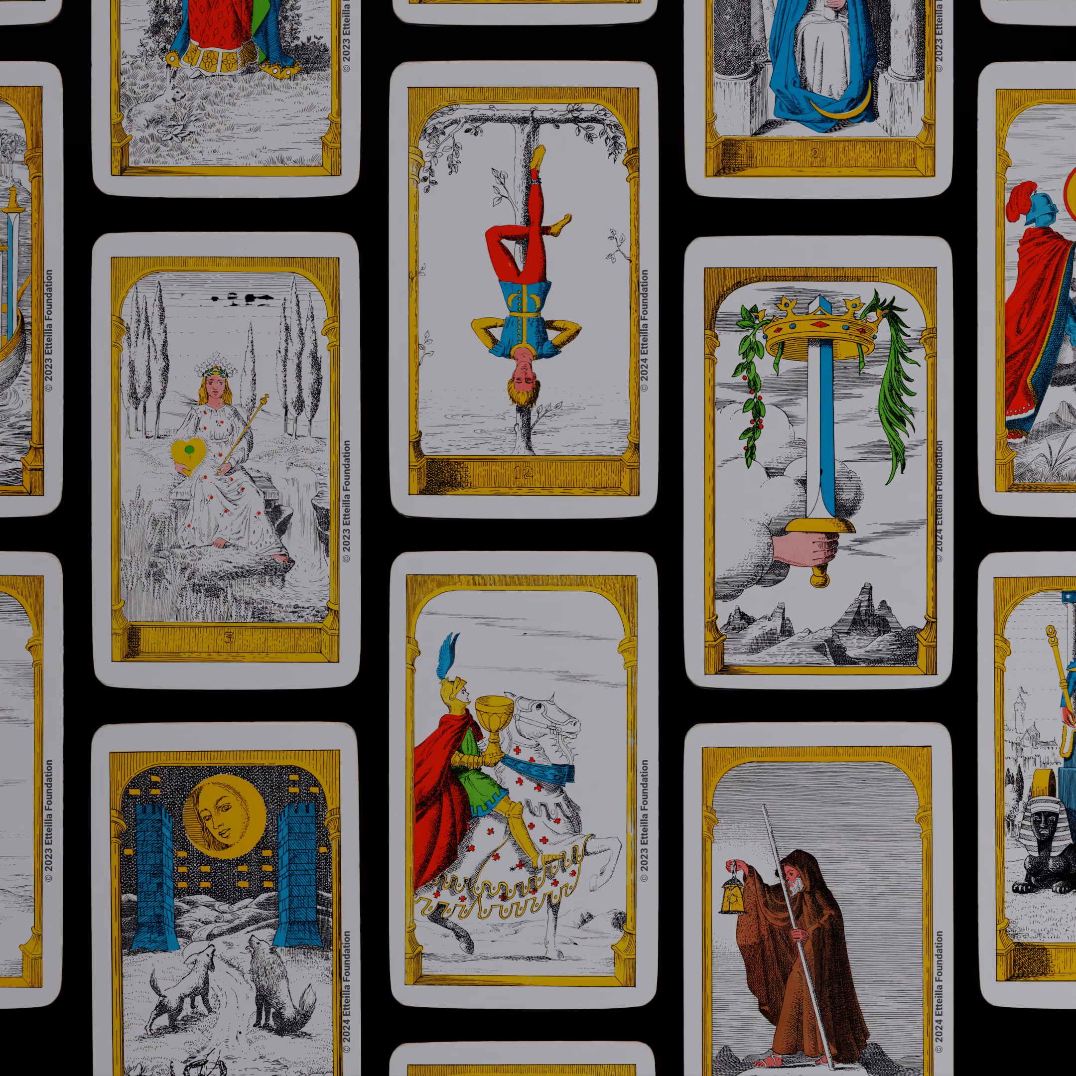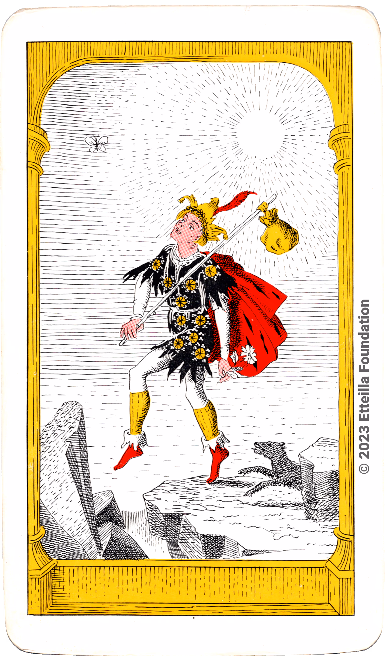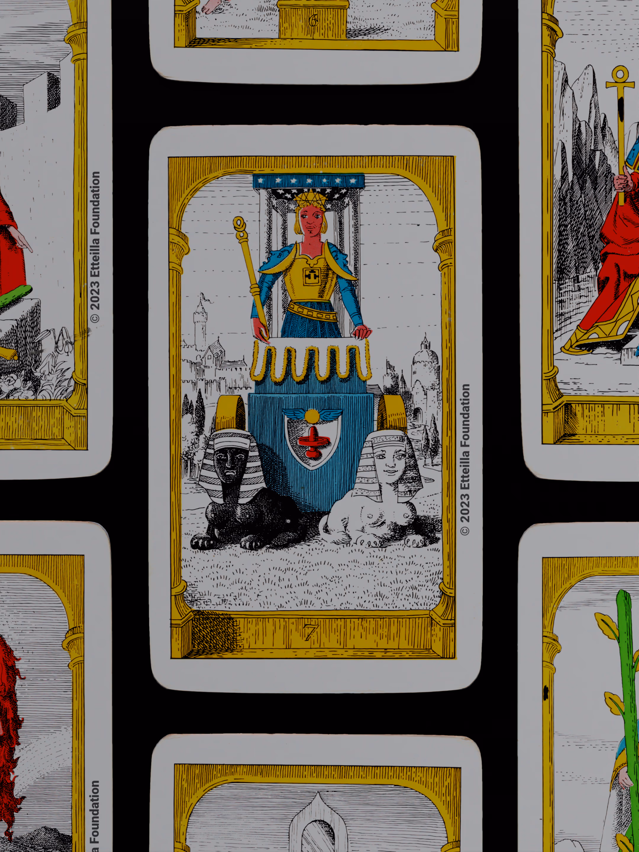 Original limited edition of the Tarot of Fez created by Roland Berrill and designed by Michael Hobdell around 1950. However due to Berrill death, the first version of this deck was delayed and ended up being printed as a limited edition of 500 copies in 1970 by Riglel Press. Design wise this tarot reflect Berrill’s alleged belief that the tarot had its origins in 12th century Moroccan secret societies while having cards design heavily inspired by the Waite-Smith tarot designs.