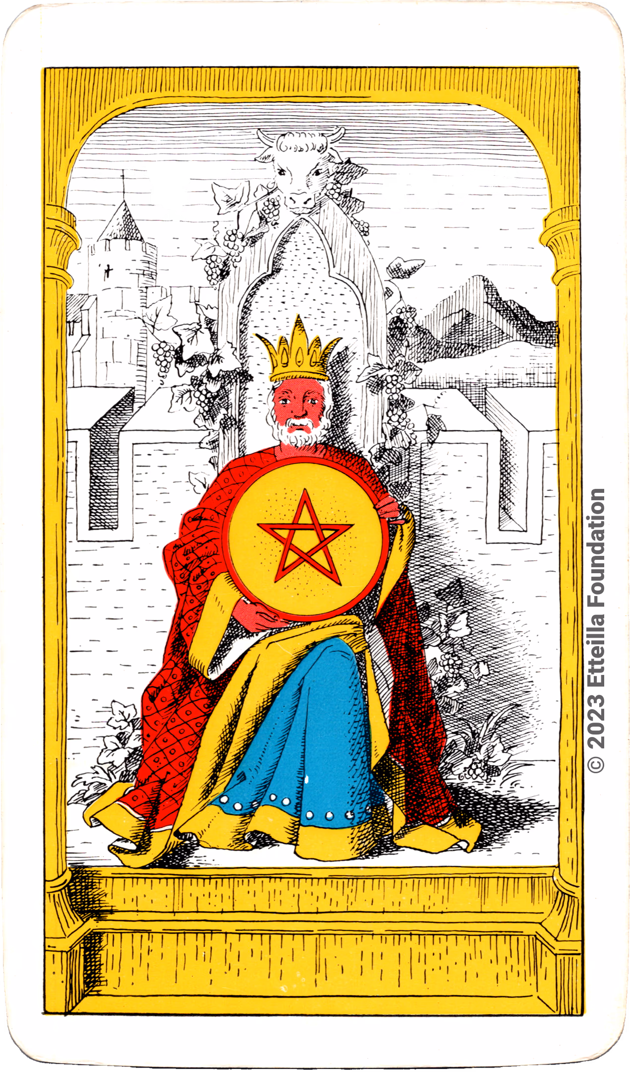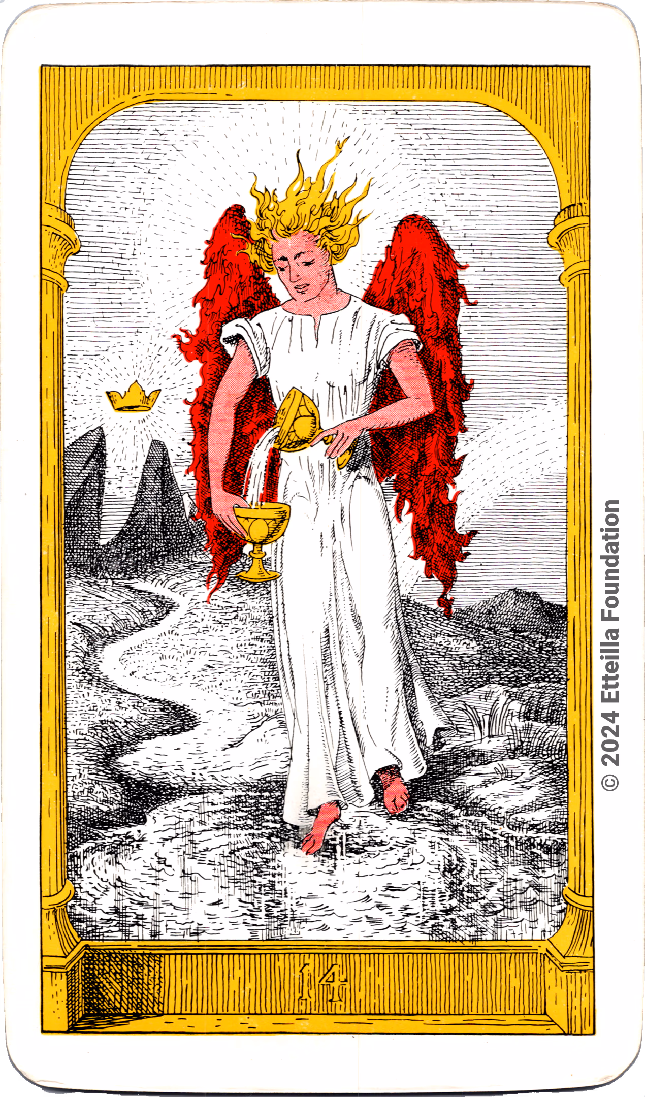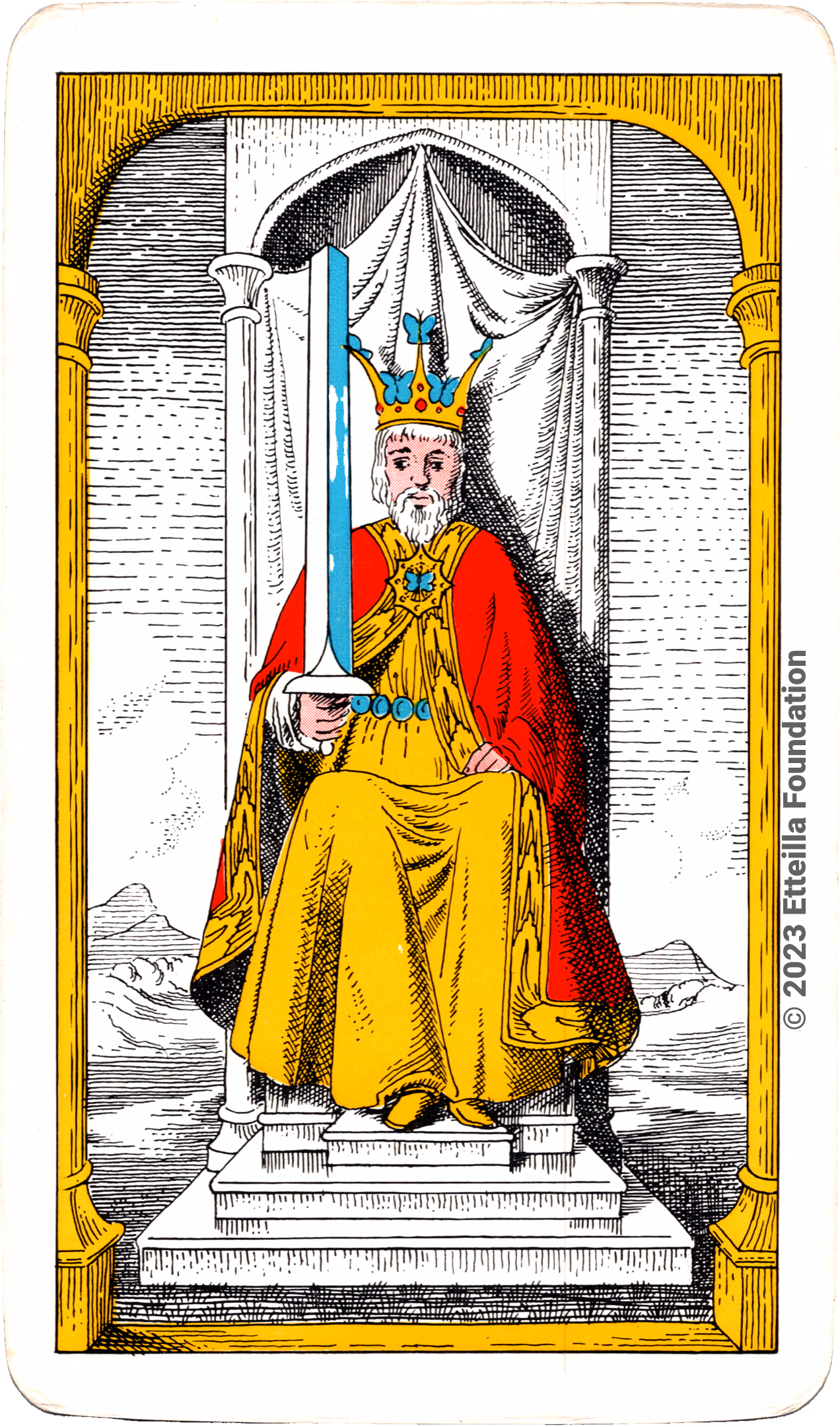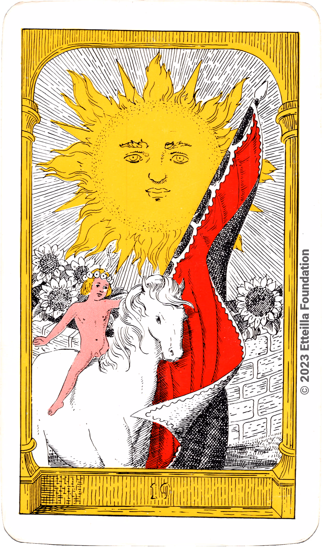 Original limited edition of the Tarot of Fez created by Roland Berrill and designed by Michael Hobdell around 1950. However due to Berrill death, the first version of this deck was delayed and ended up being printed as a limited edition of 500 copies in 1970 by Riglel Press. Design wise this tarot reflect Berrill’s alleged belief that the tarot had its origins in 12th century Moroccan secret societies while having cards design heavily inspired by the Waite-Smith tarot designs.