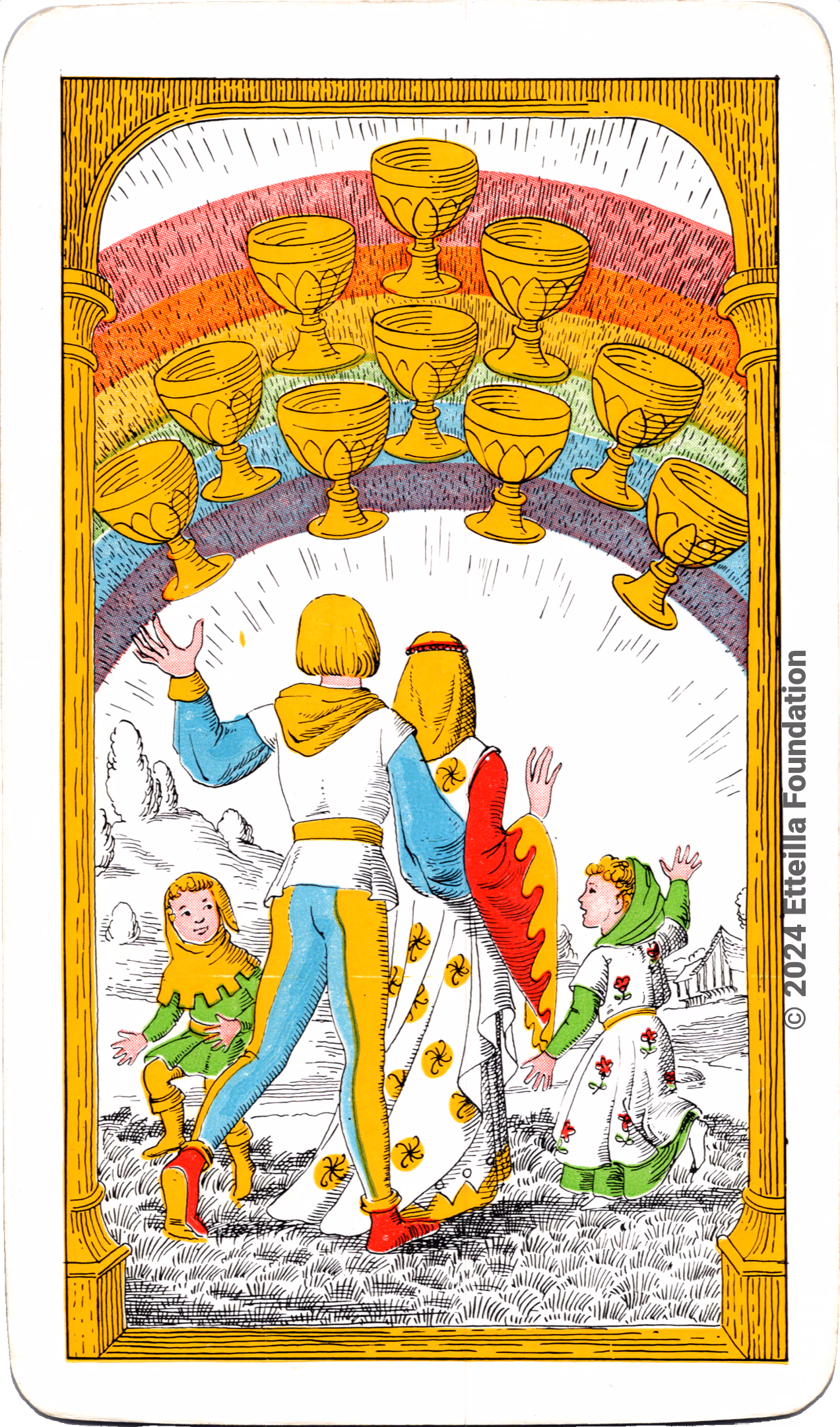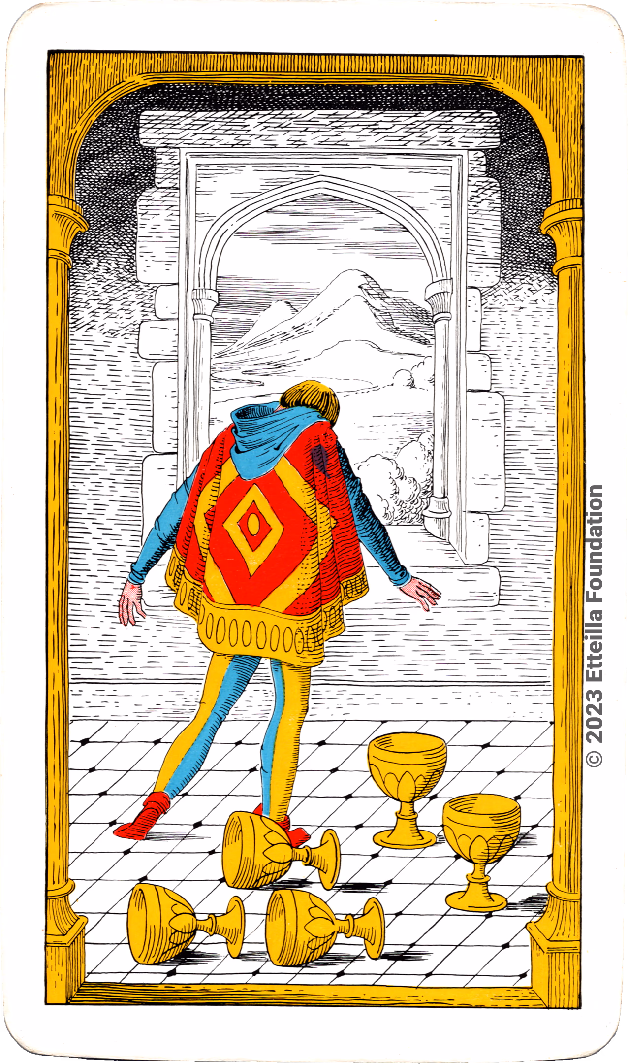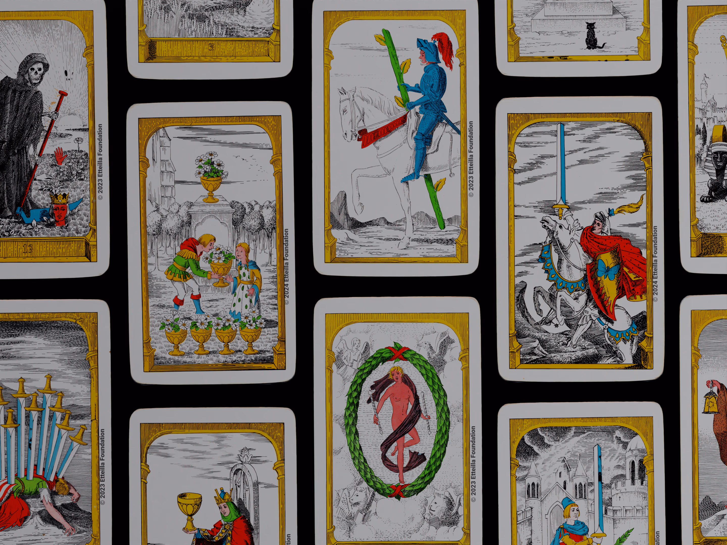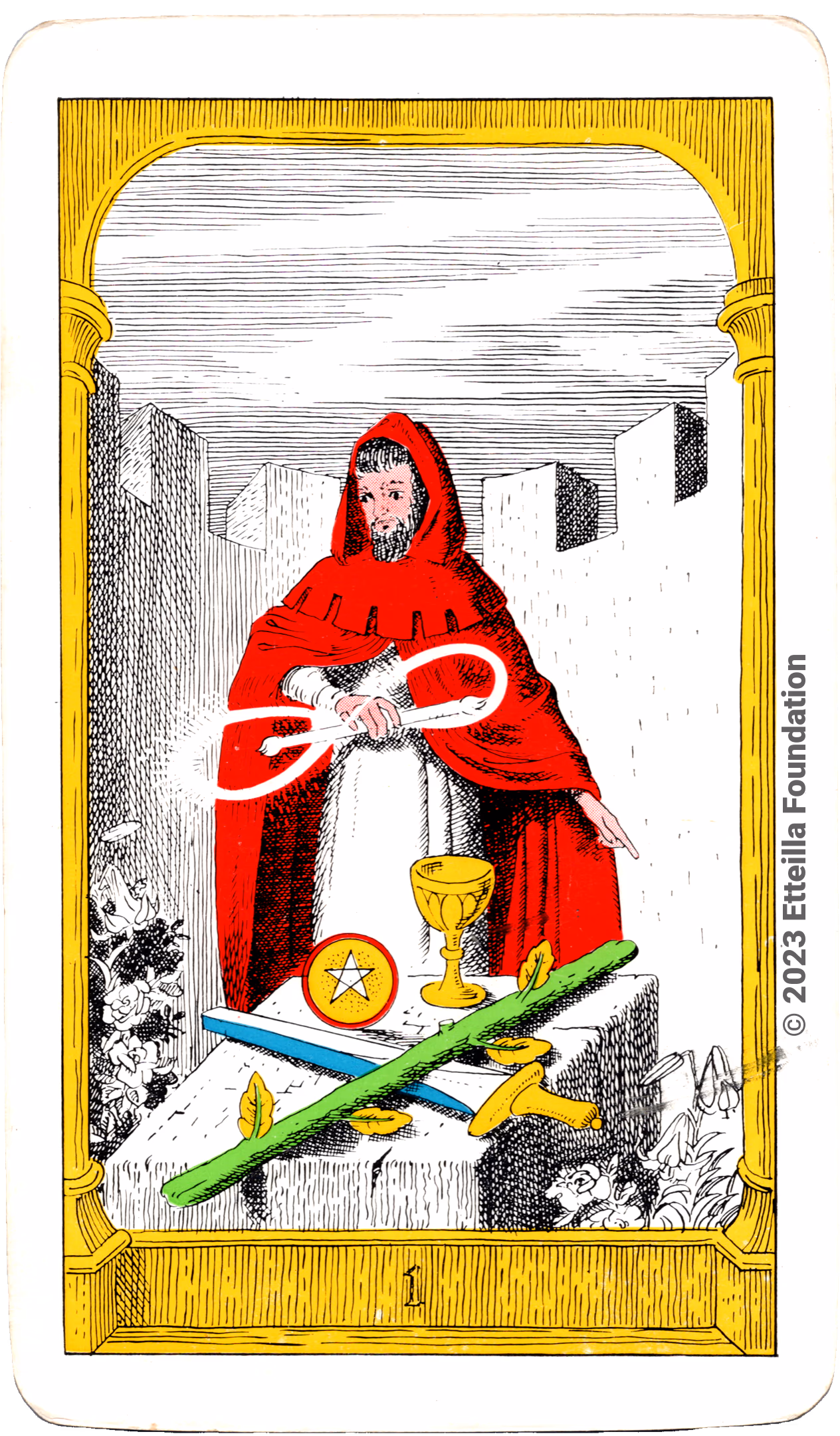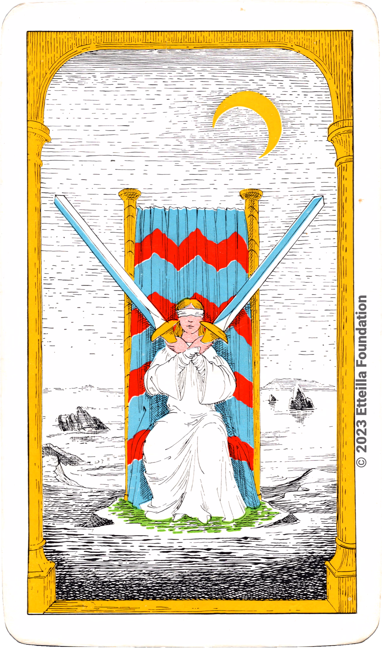 Original limited edition of the Tarot of Fez created by Roland Berrill and designed by Michael Hobdell around 1950. However due to Berrill death, the first version of this deck was delayed and ended up being printed as a limited edition of 500 copies in 1970 by Riglel Press. Design wise this tarot reflect Berrill’s alleged belief that the tarot had its origins in 12th century Moroccan secret societies while having cards design heavily inspired by the Waite-Smith tarot designs.