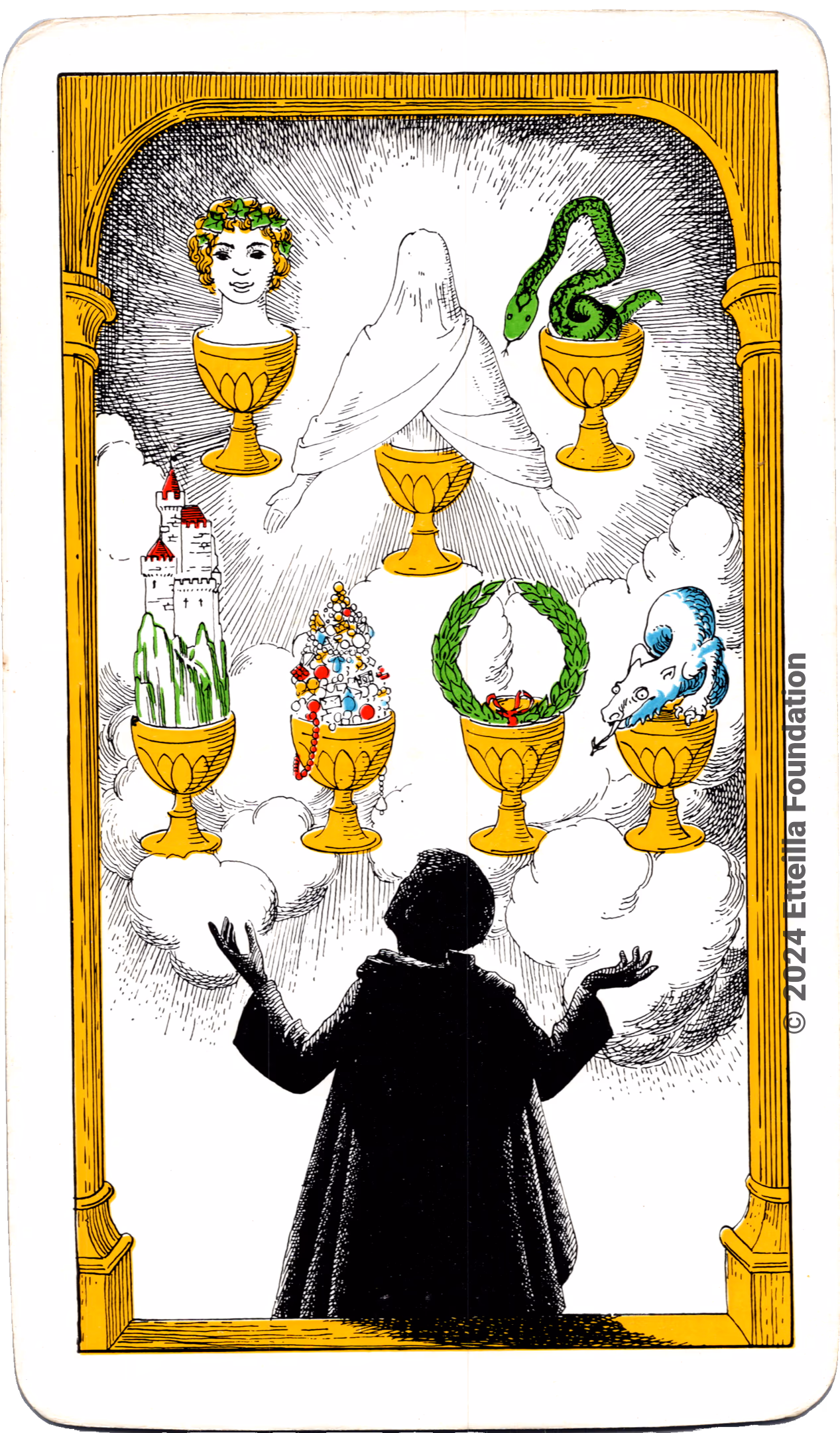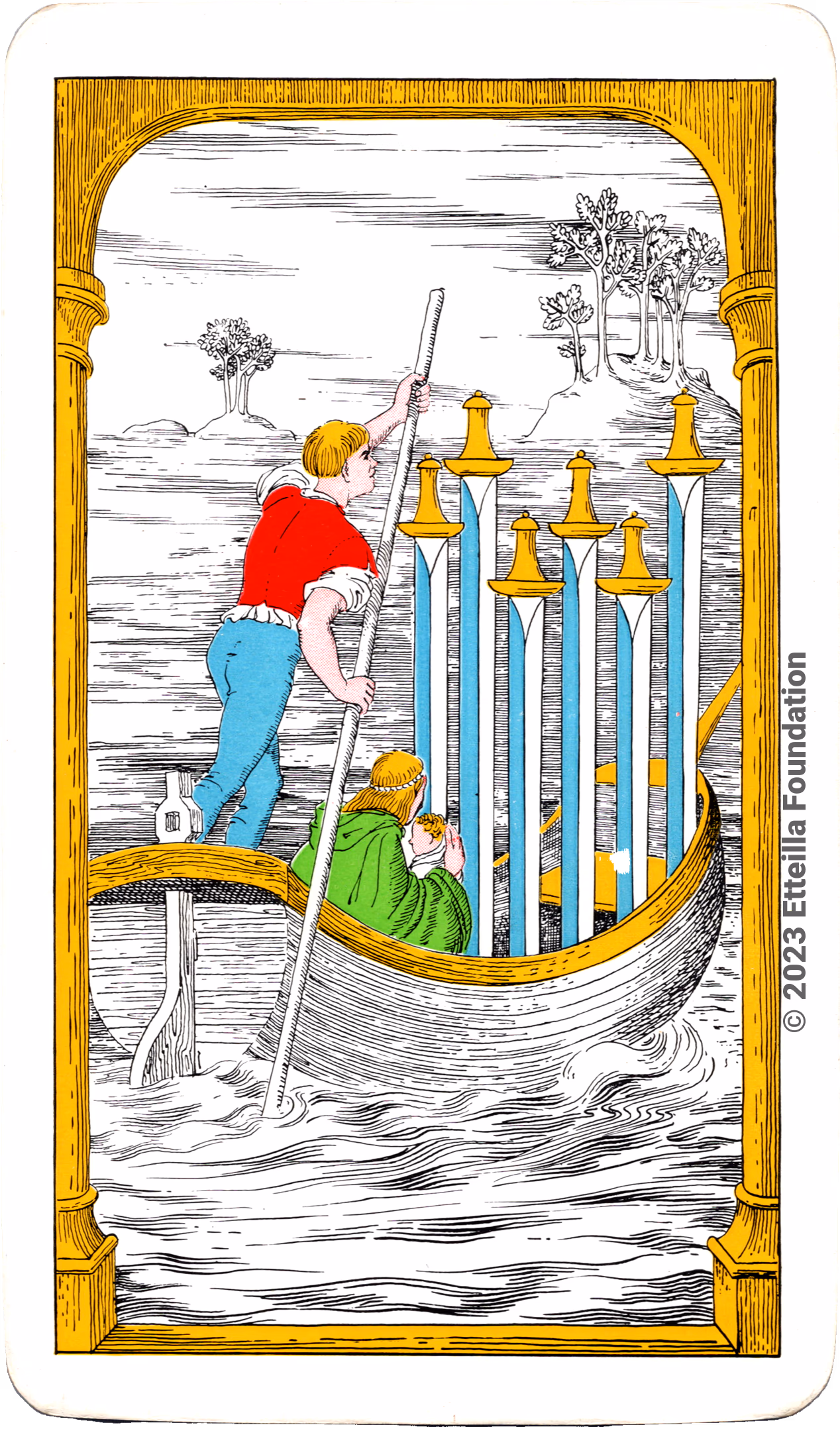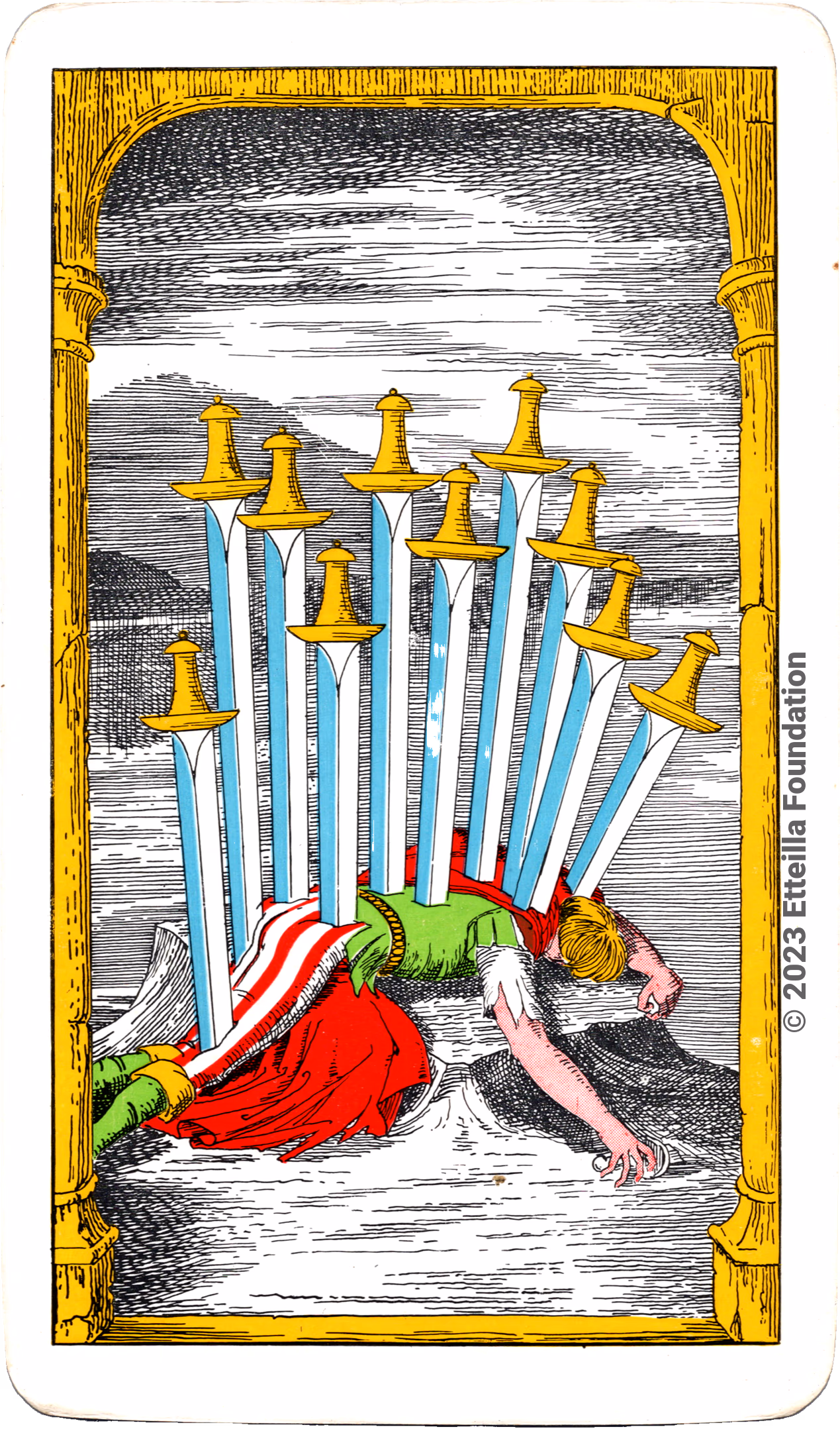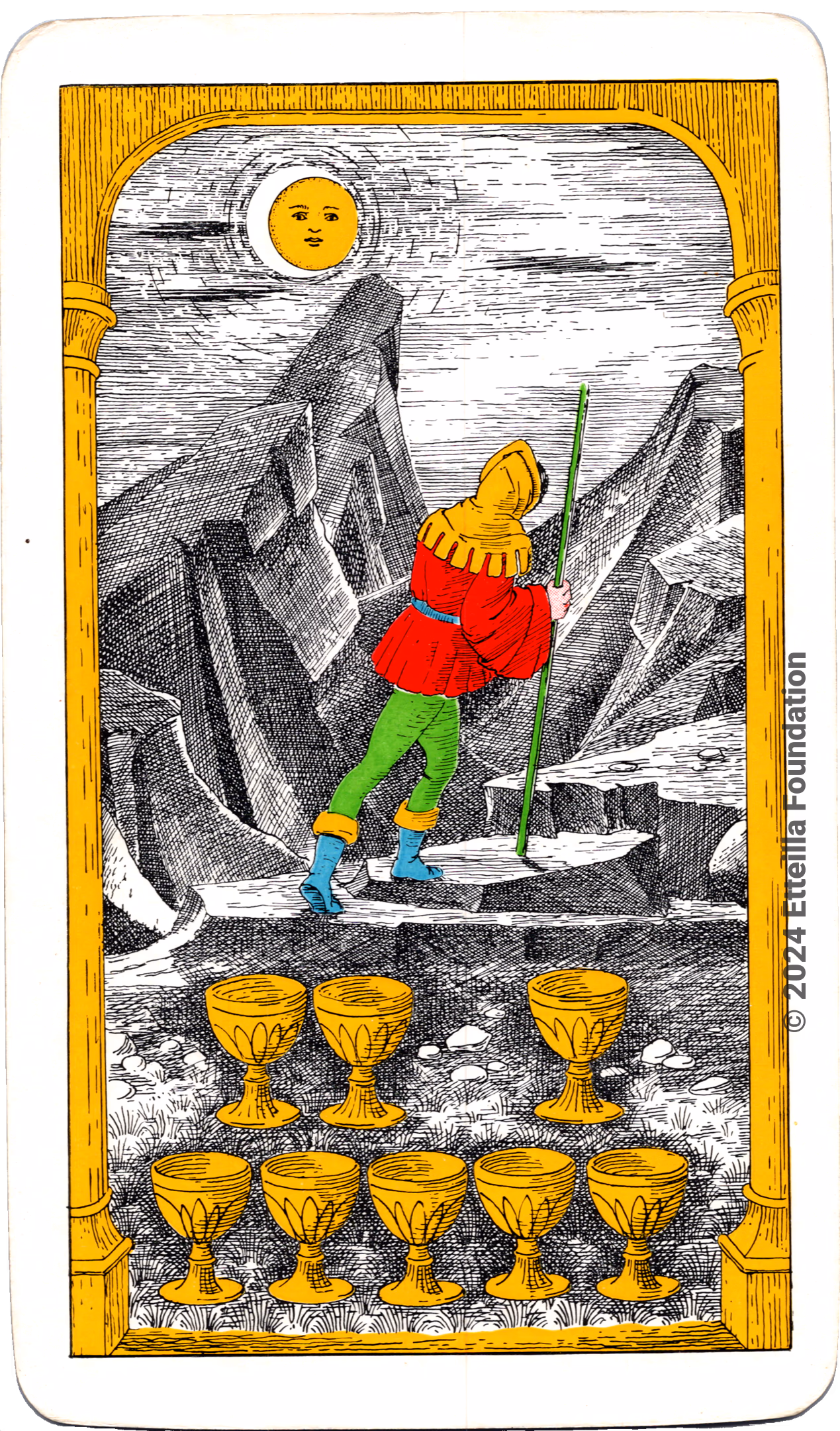 Original limited edition of the Tarot of Fez created by Roland Berrill and designed by Michael Hobdell around 1950. However due to Berrill death, the first version of this deck was delayed and ended up being printed as a limited edition of 500 copies in 1970 by Riglel Press. Design wise this tarot reflect Berrill’s alleged belief that the tarot had its origins in 12th century Moroccan secret societies while having cards design heavily inspired by the Waite-Smith tarot designs.