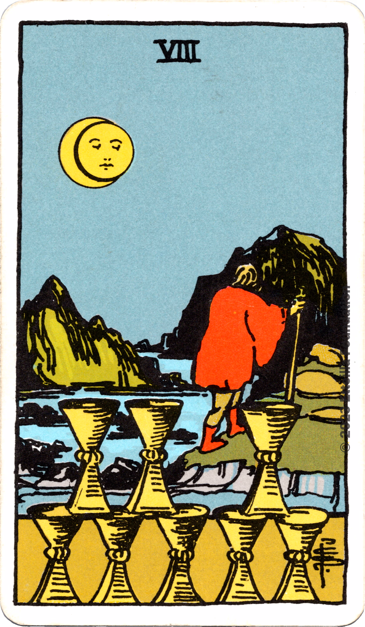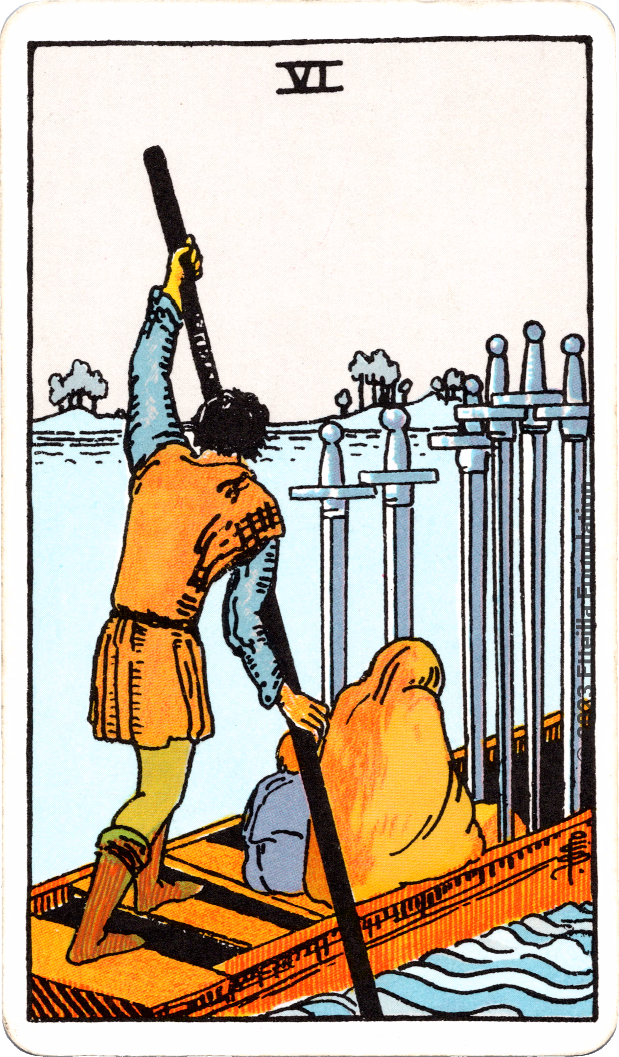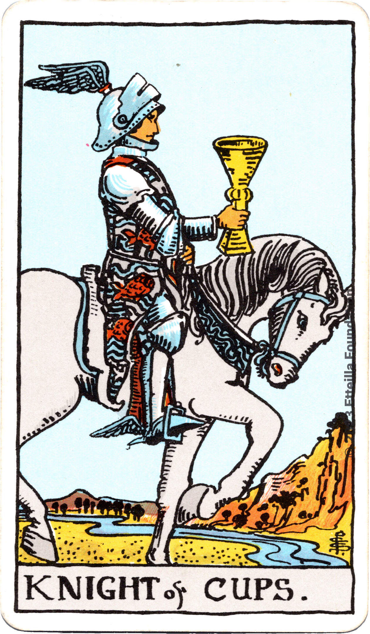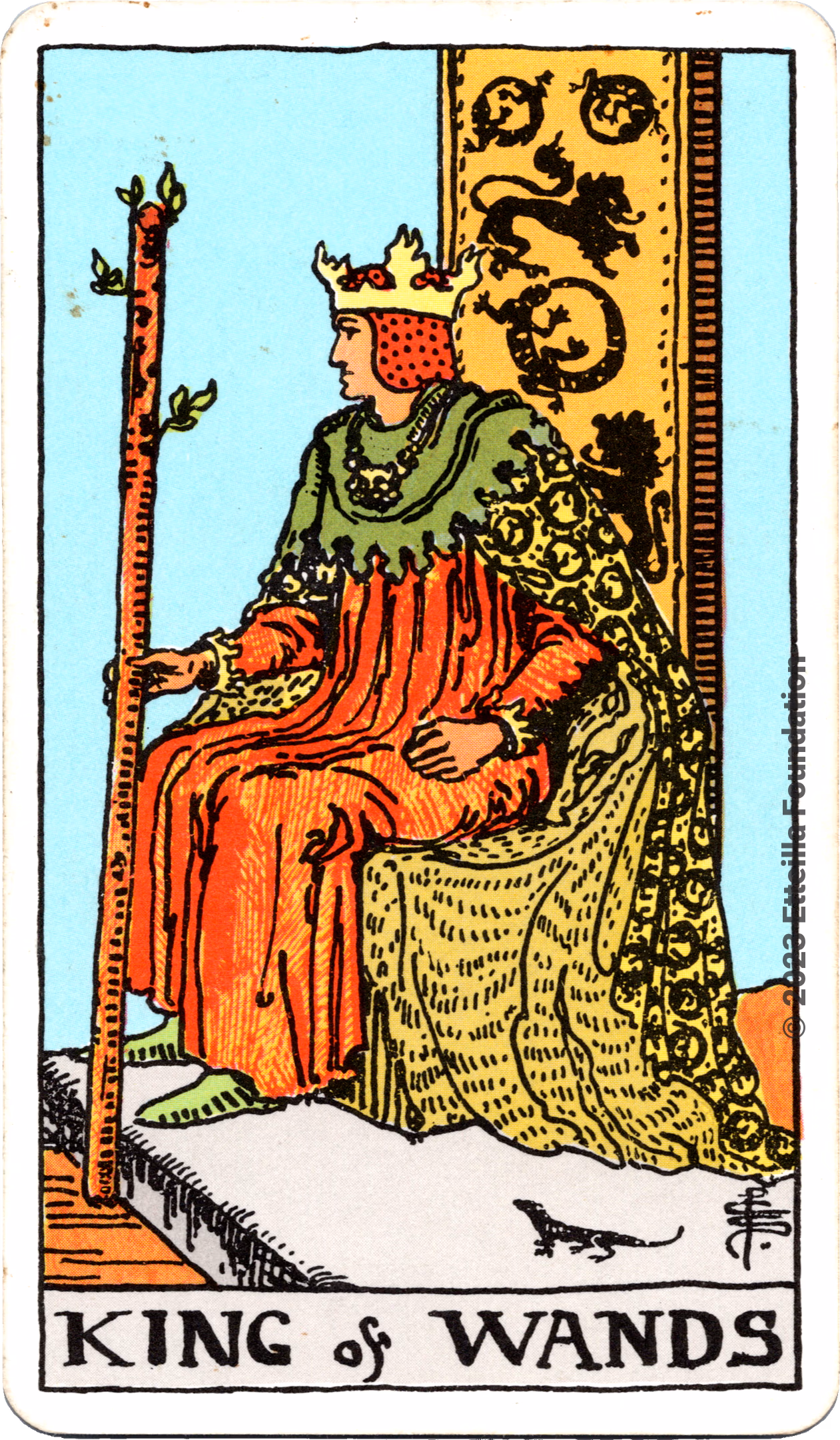 This deck is the 1971 re-edition of the famous Waite-Smith Divination Tarot. Its cards are paler than the original version.