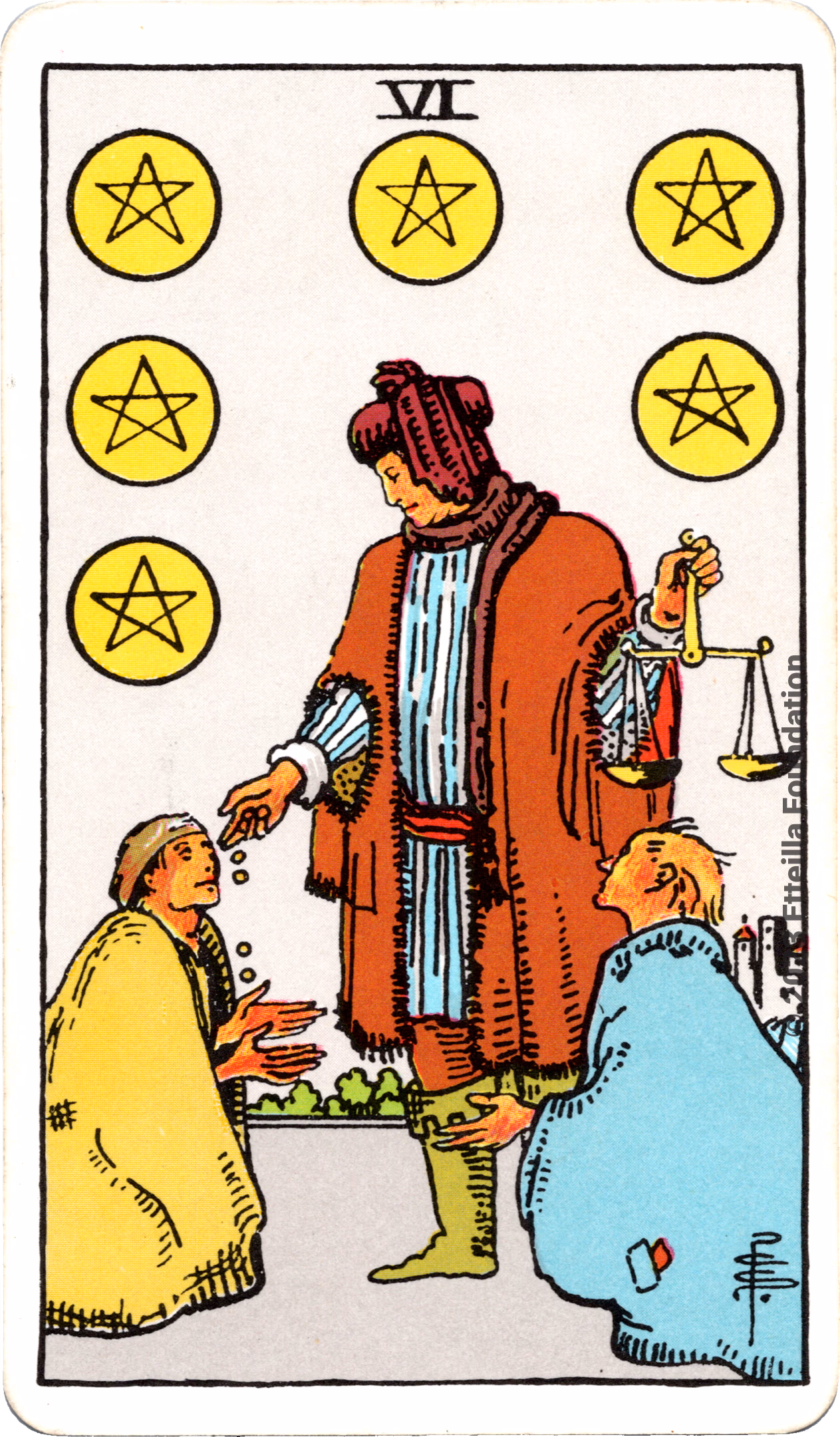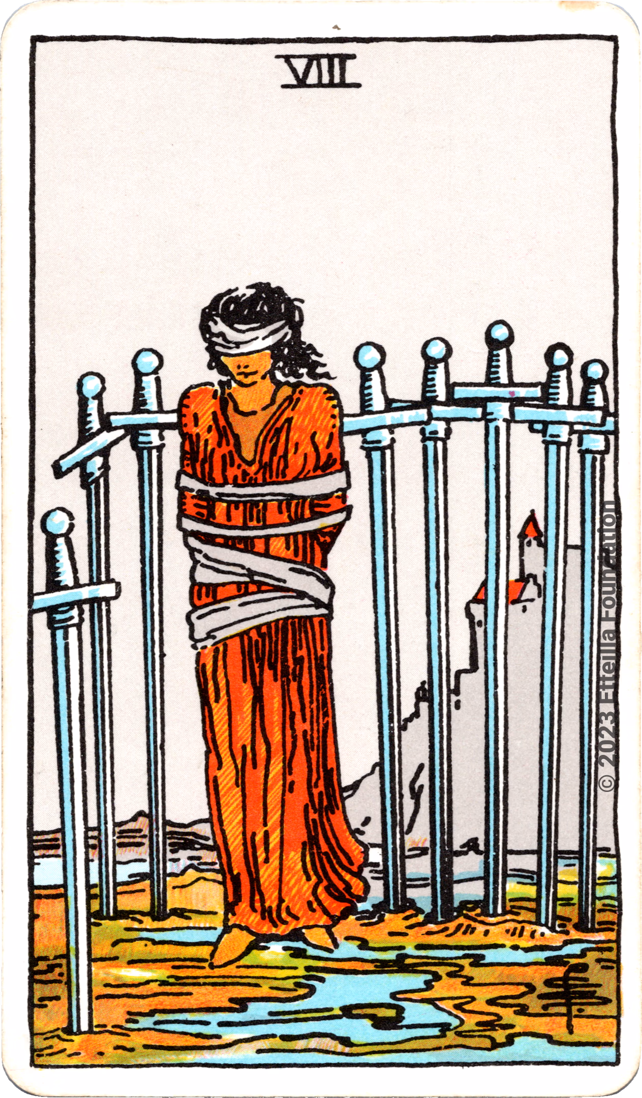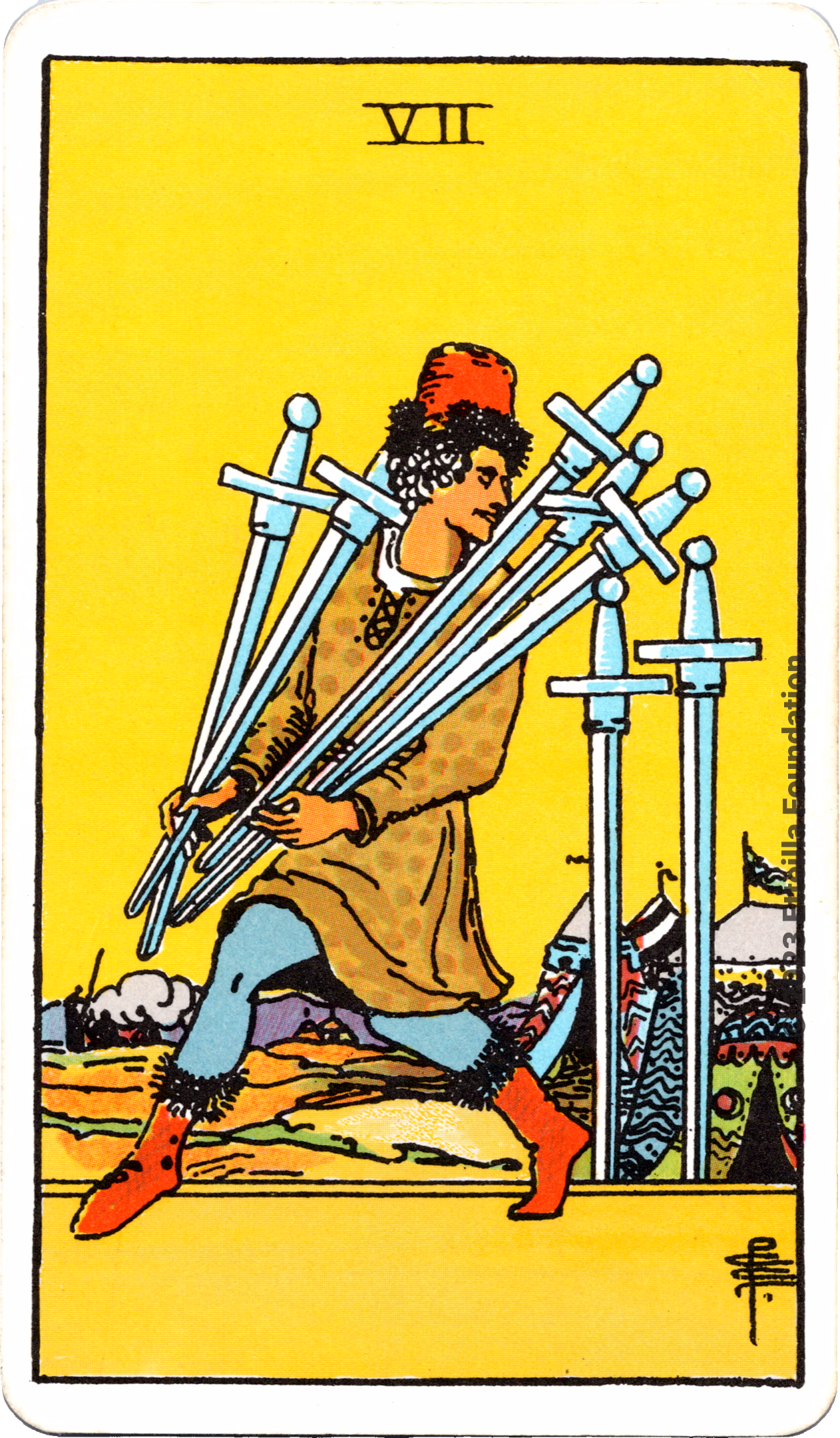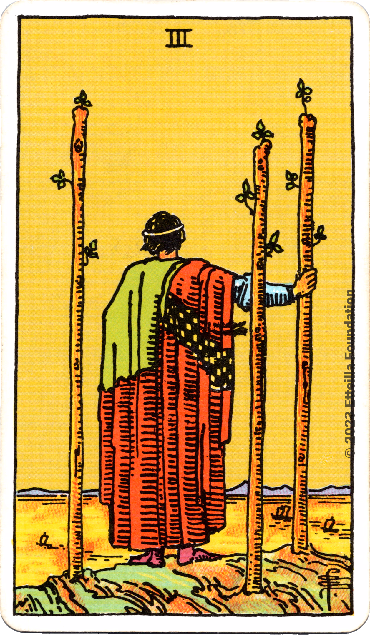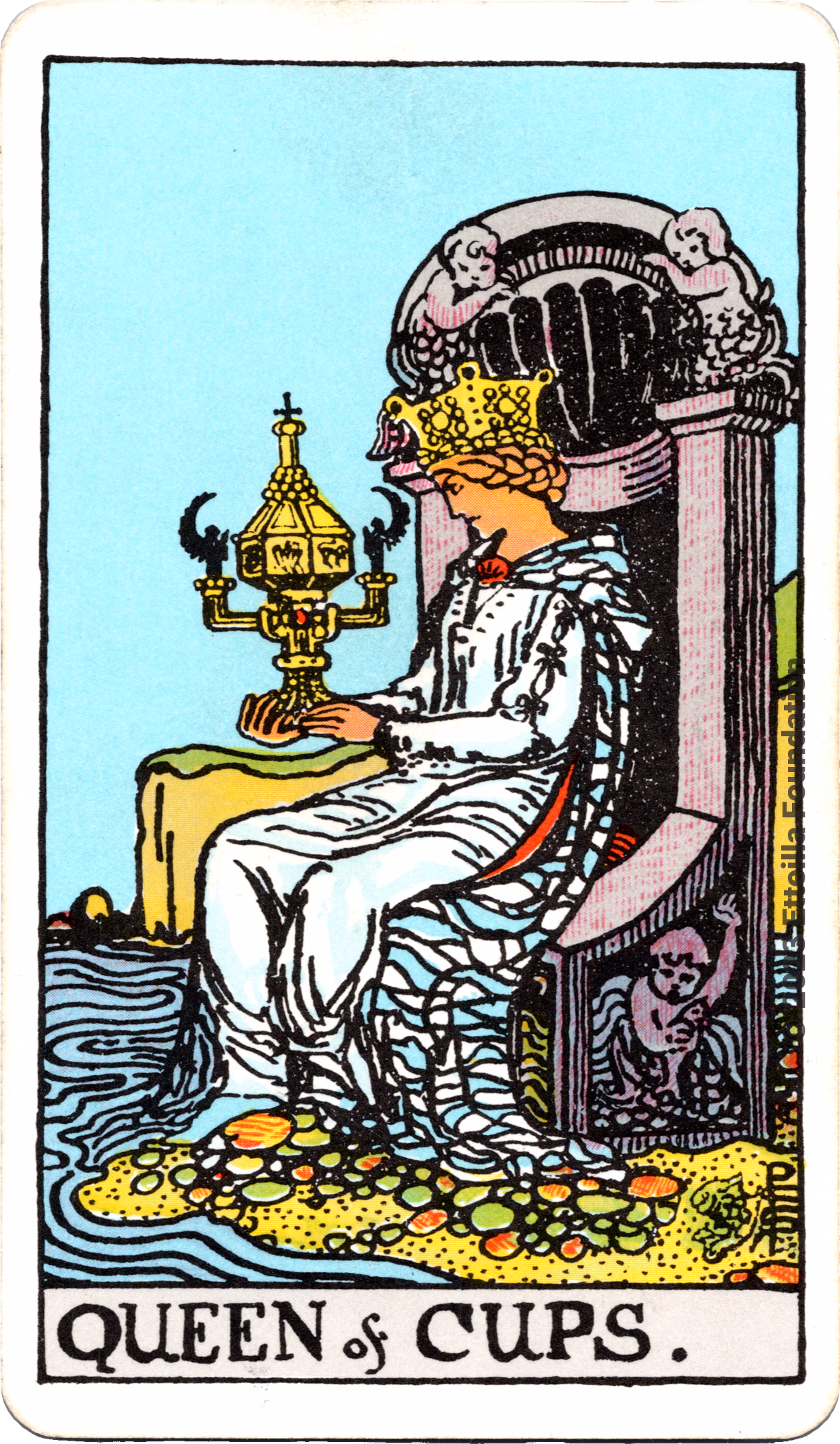 This deck is the 1971 re-edition of the famous Waite-Smith Divination Tarot. Its cards are paler than the original version.