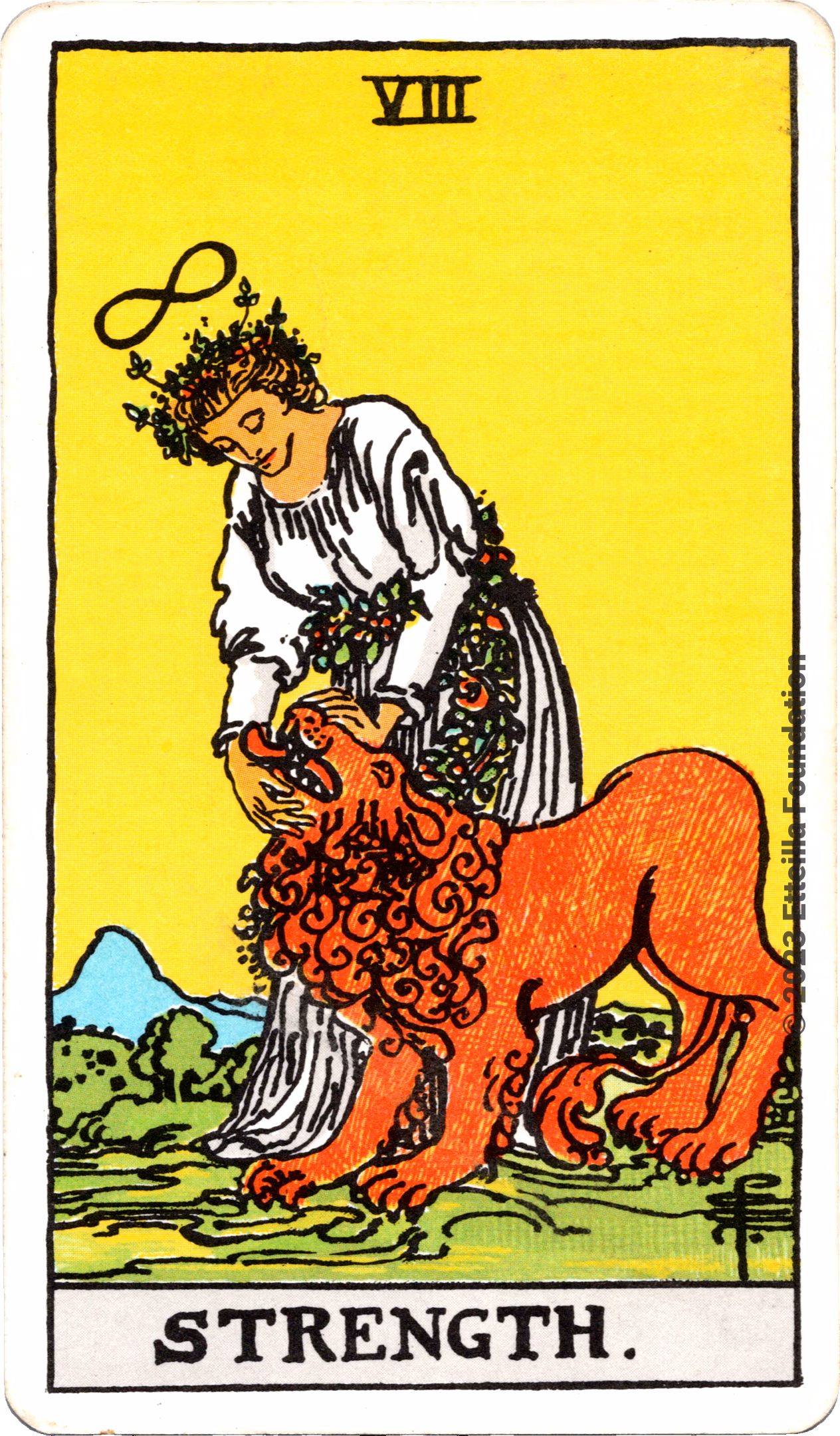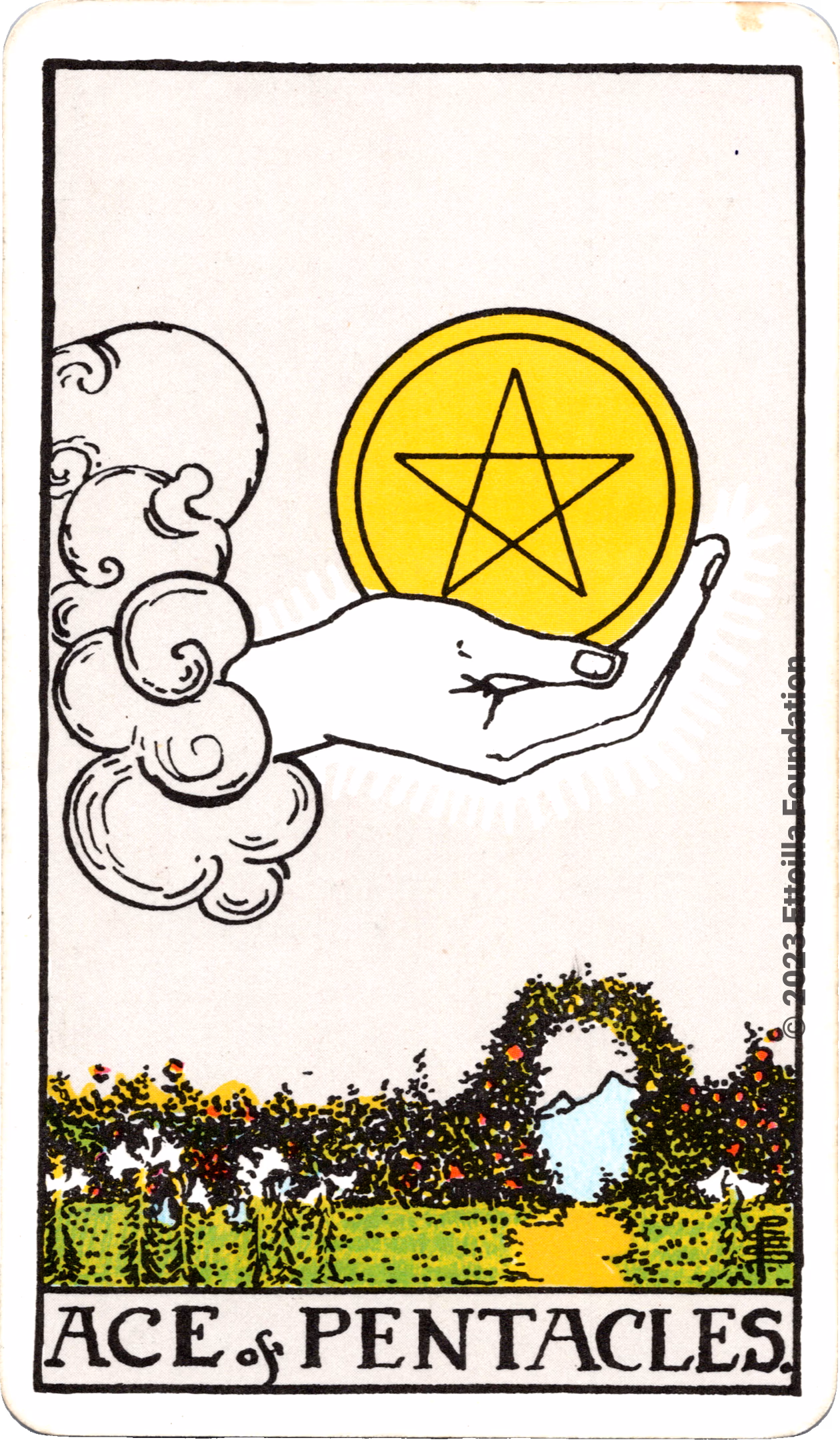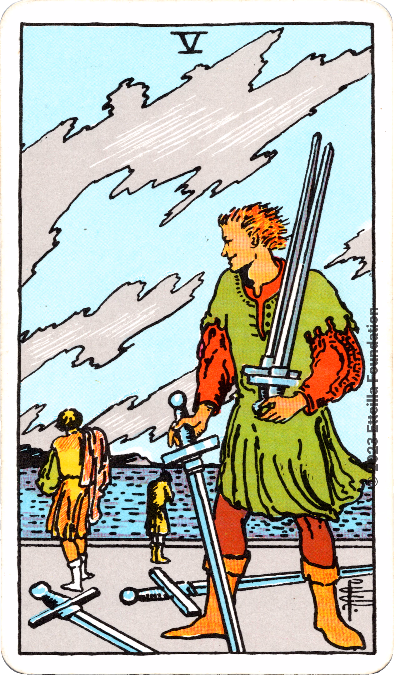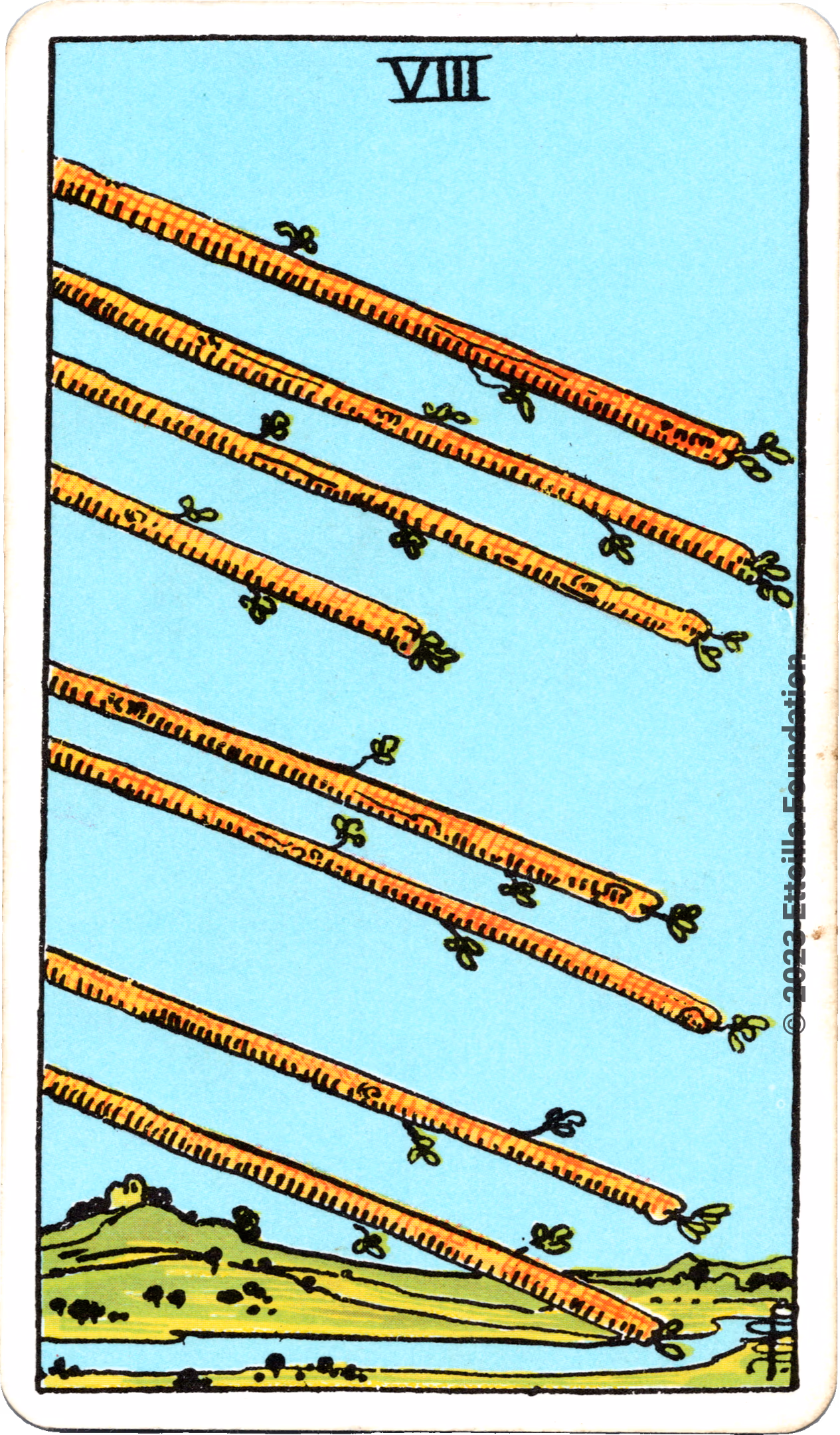 This deck is the 1971 re-edition of the famous Waite-Smith Divination Tarot. Its cards are paler than the original version.