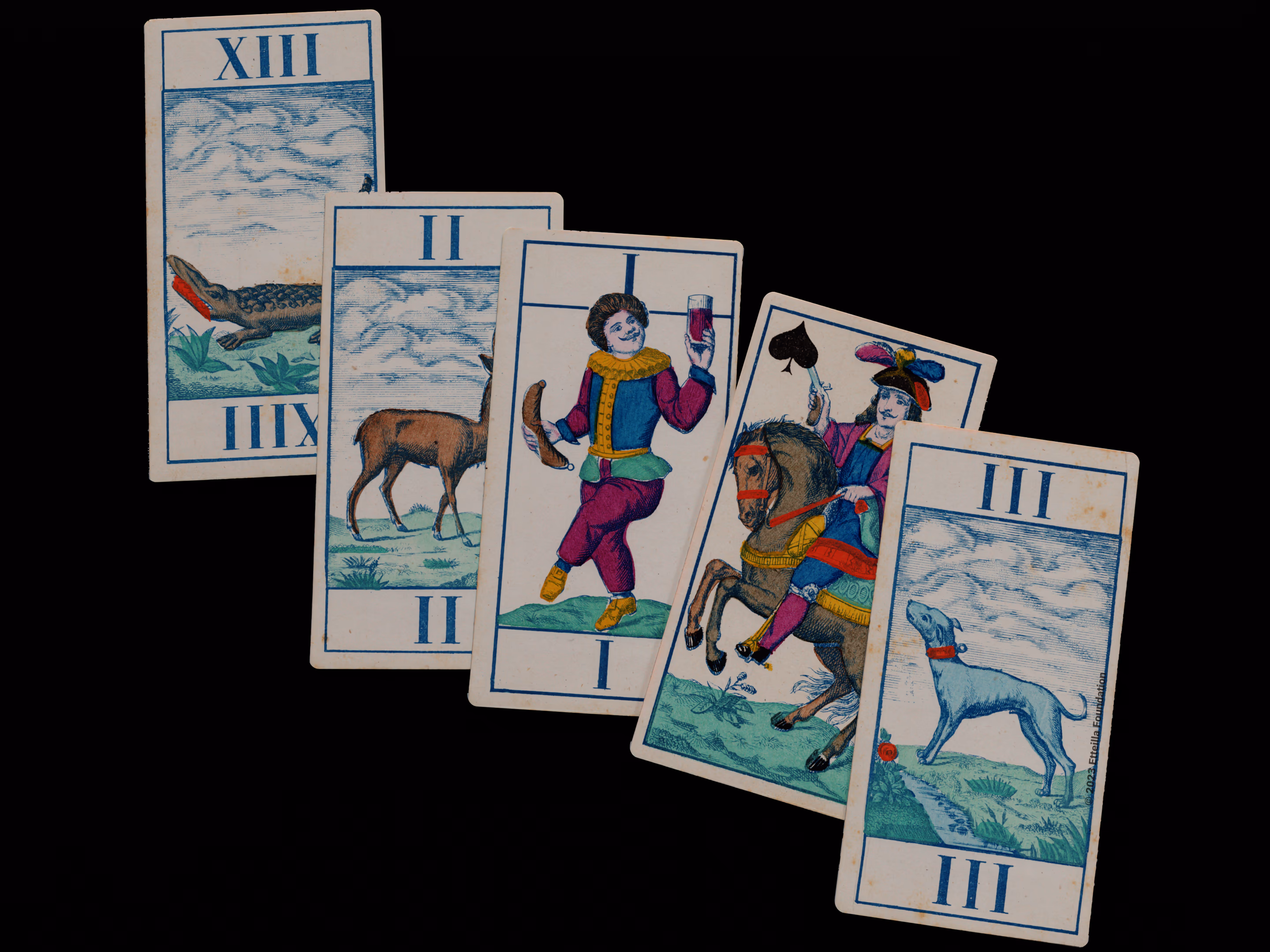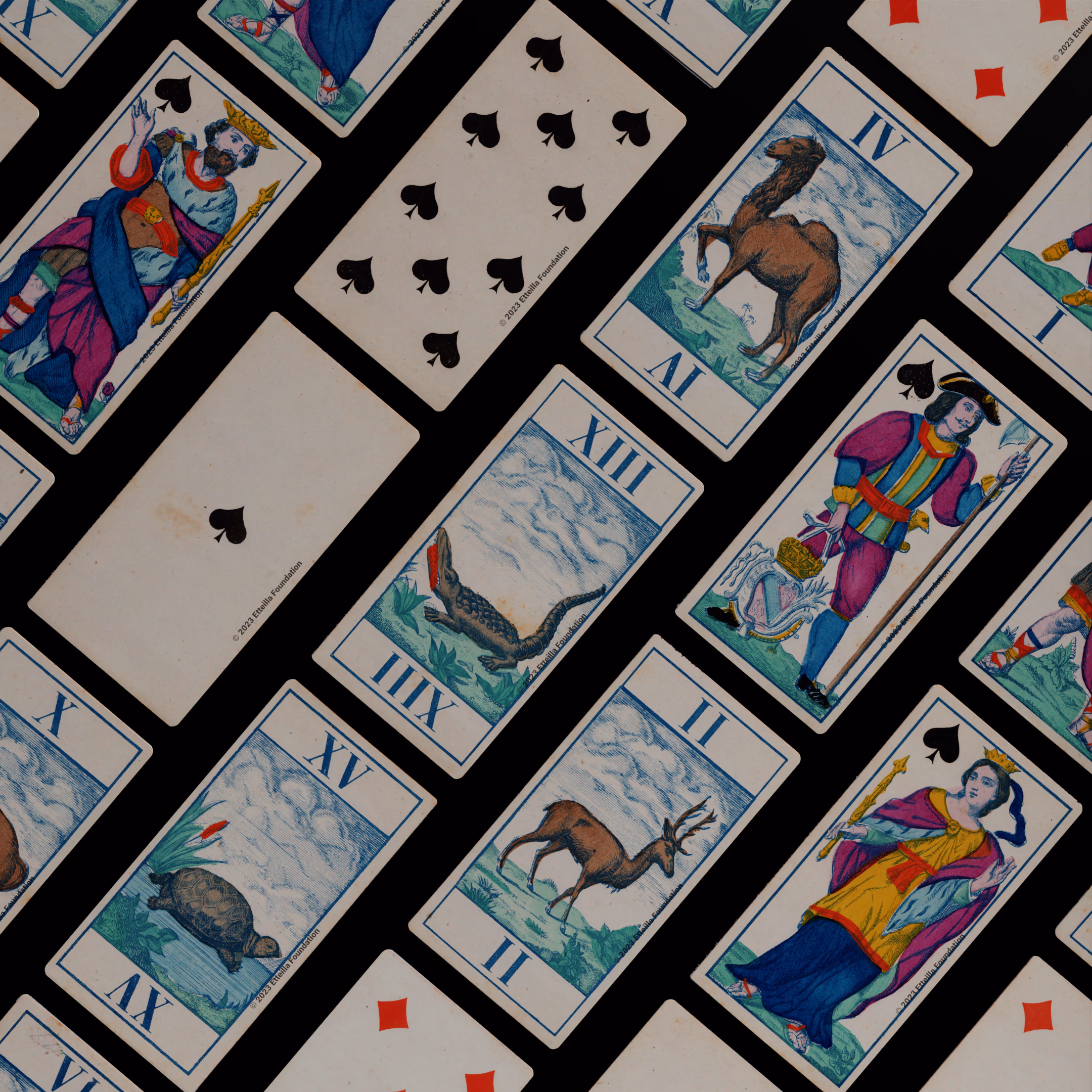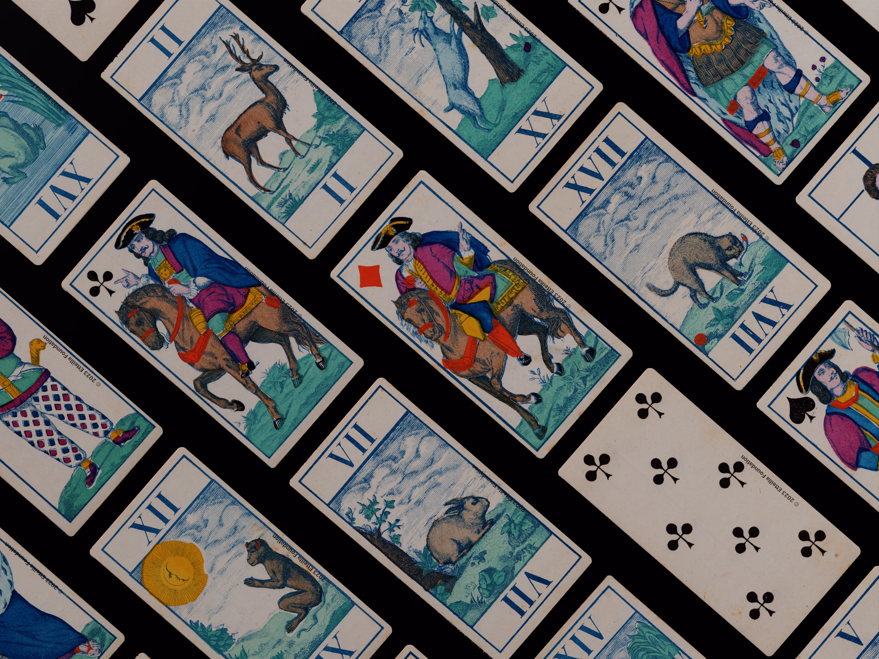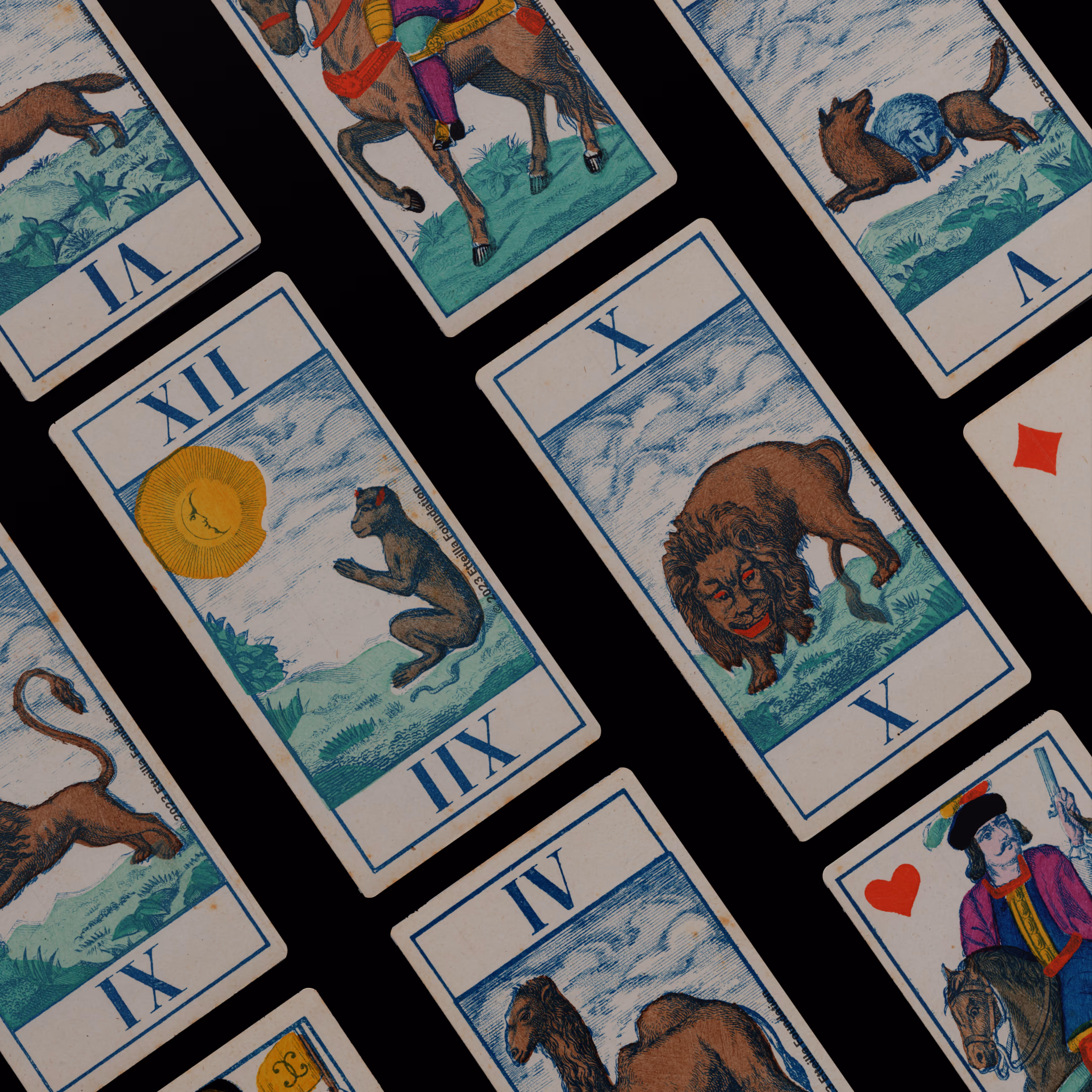 Classic Tarot deck sporting animals themed trumps that was manufactured by Fabrique de Daveluy in Belgium in 1850.