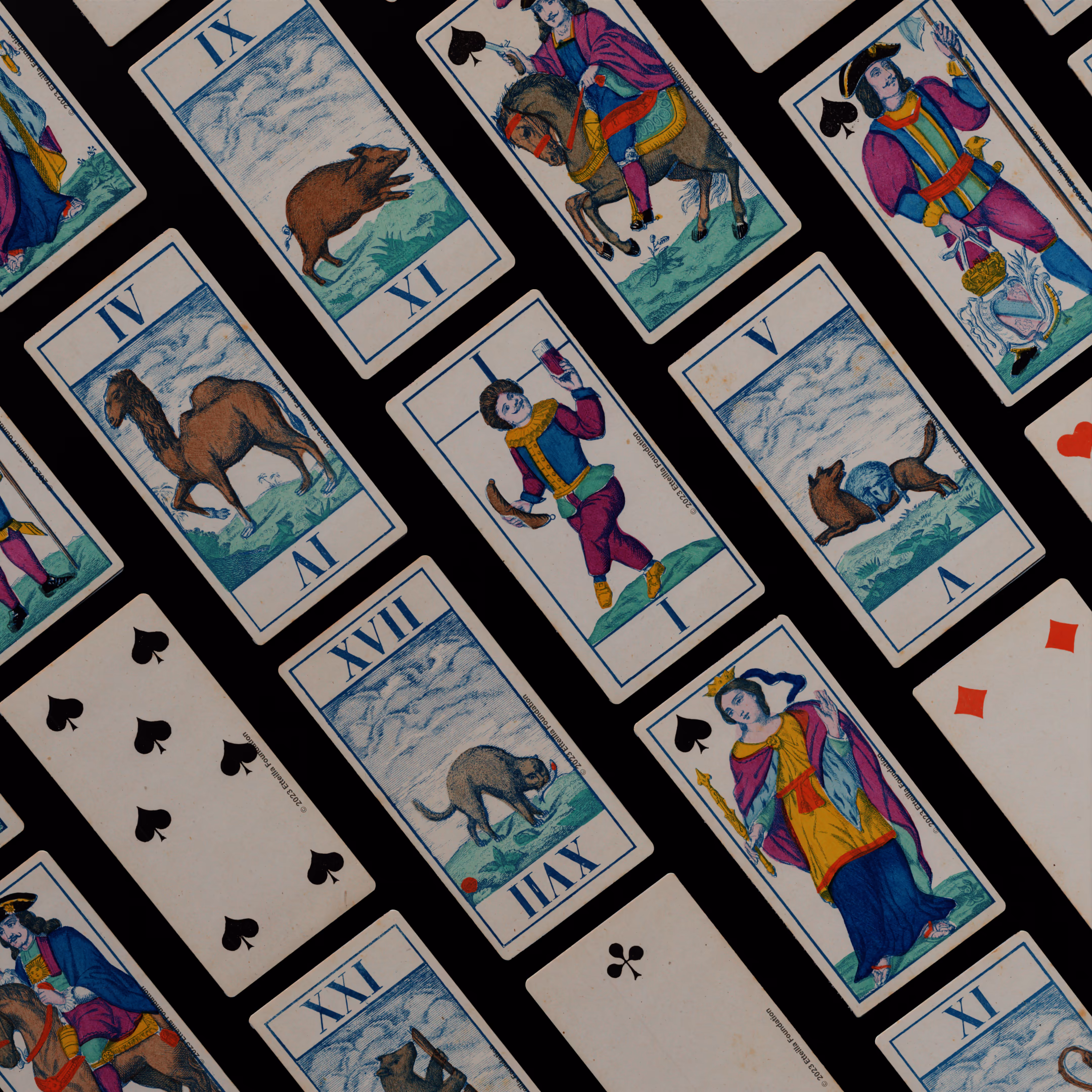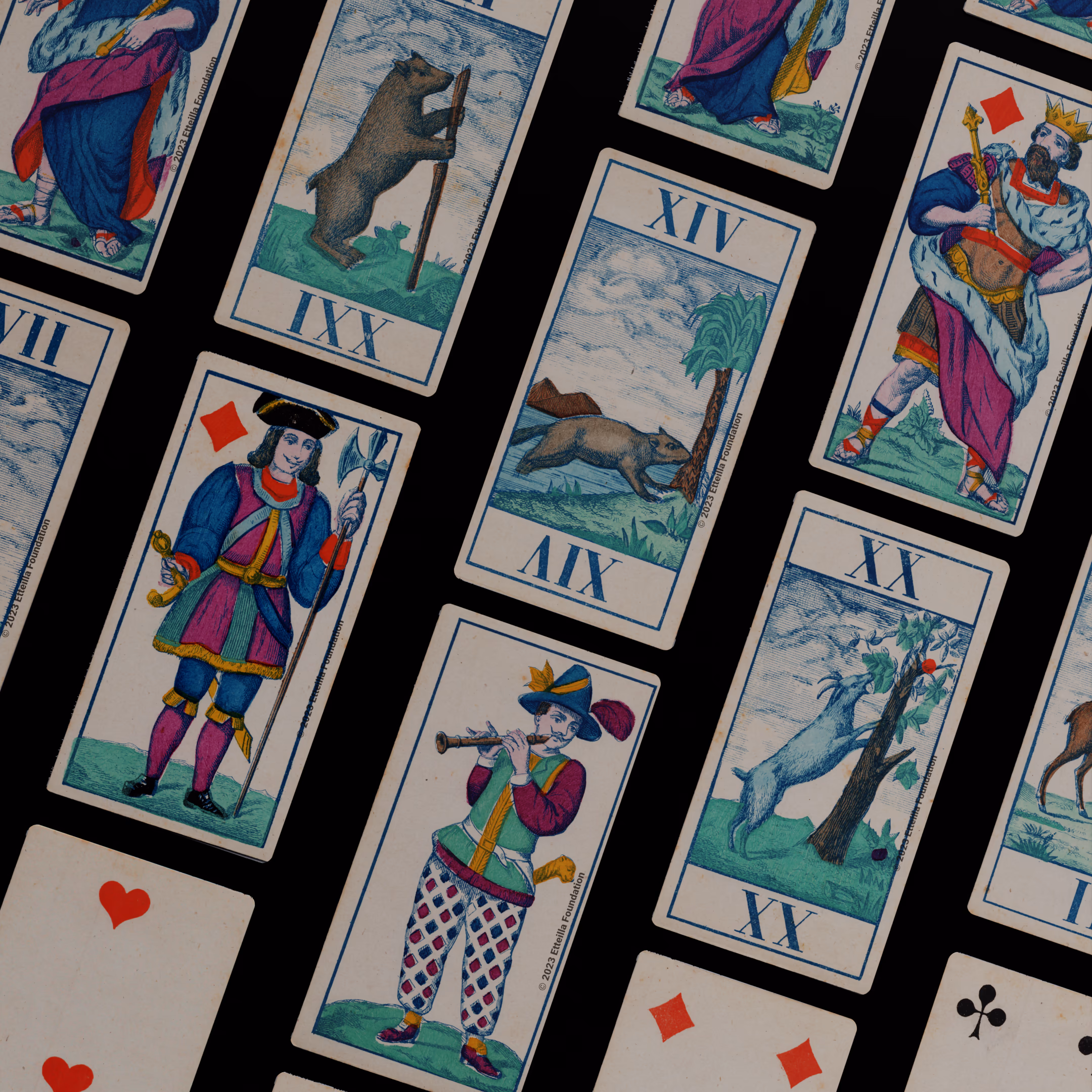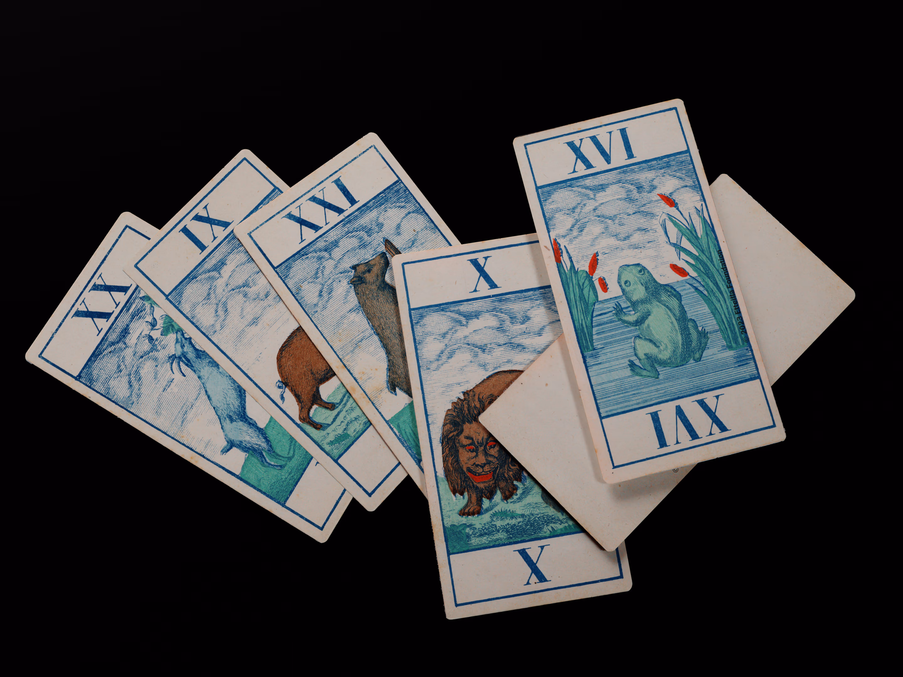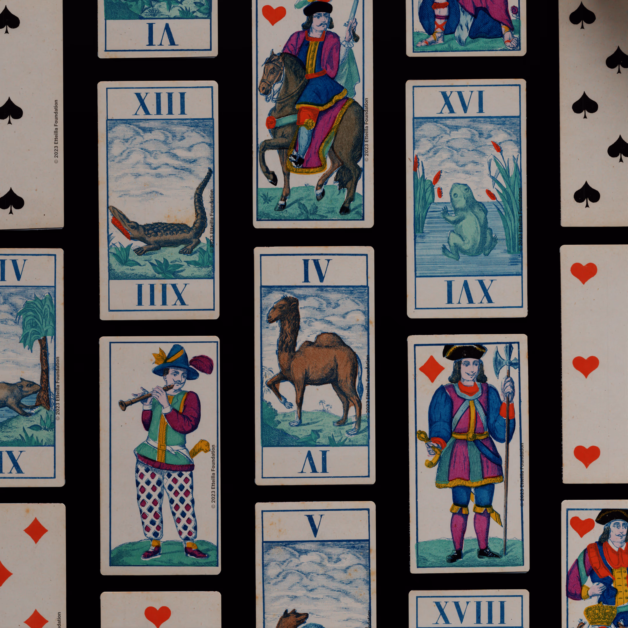 Classic Tarot deck sporting animals themed trumps that was manufactured by Fabrique de Daveluy in Belgium in 1850.