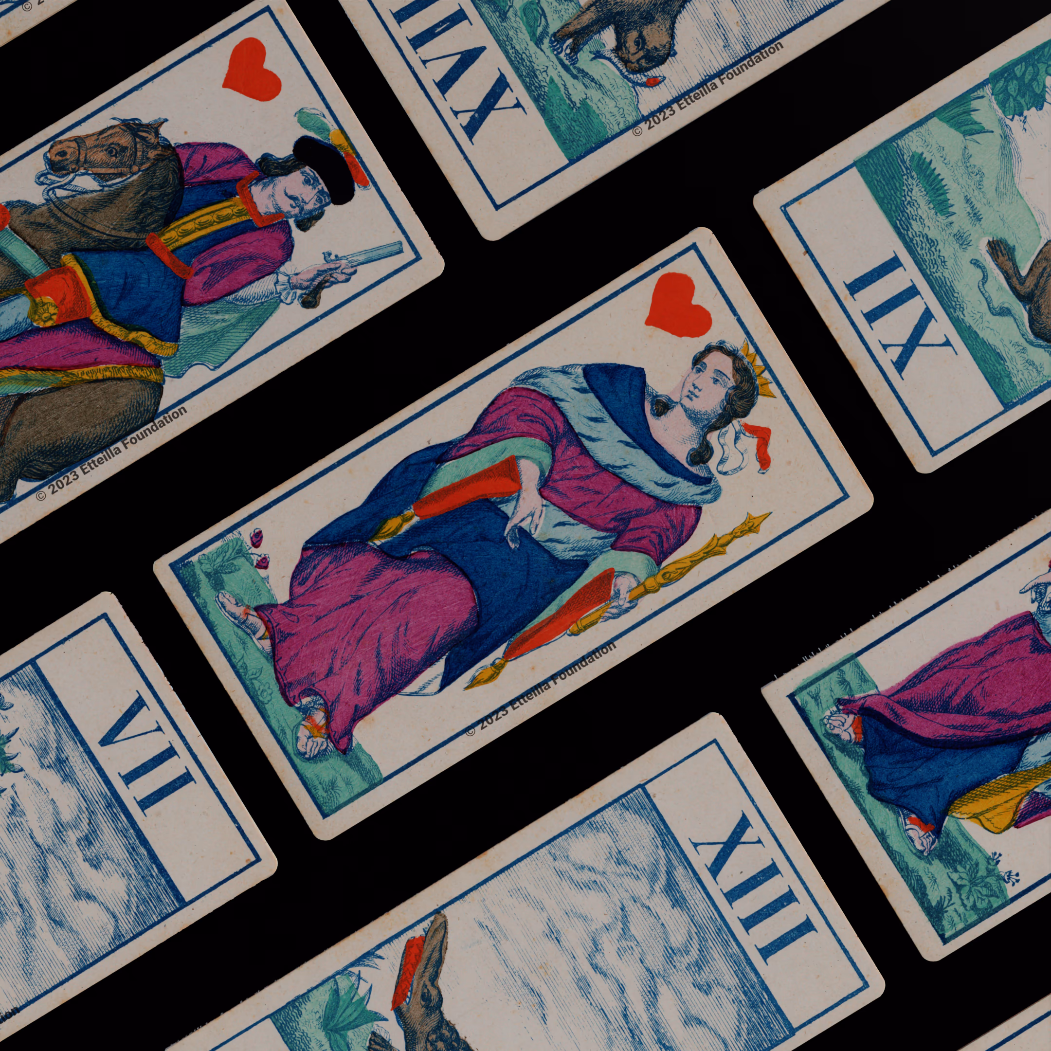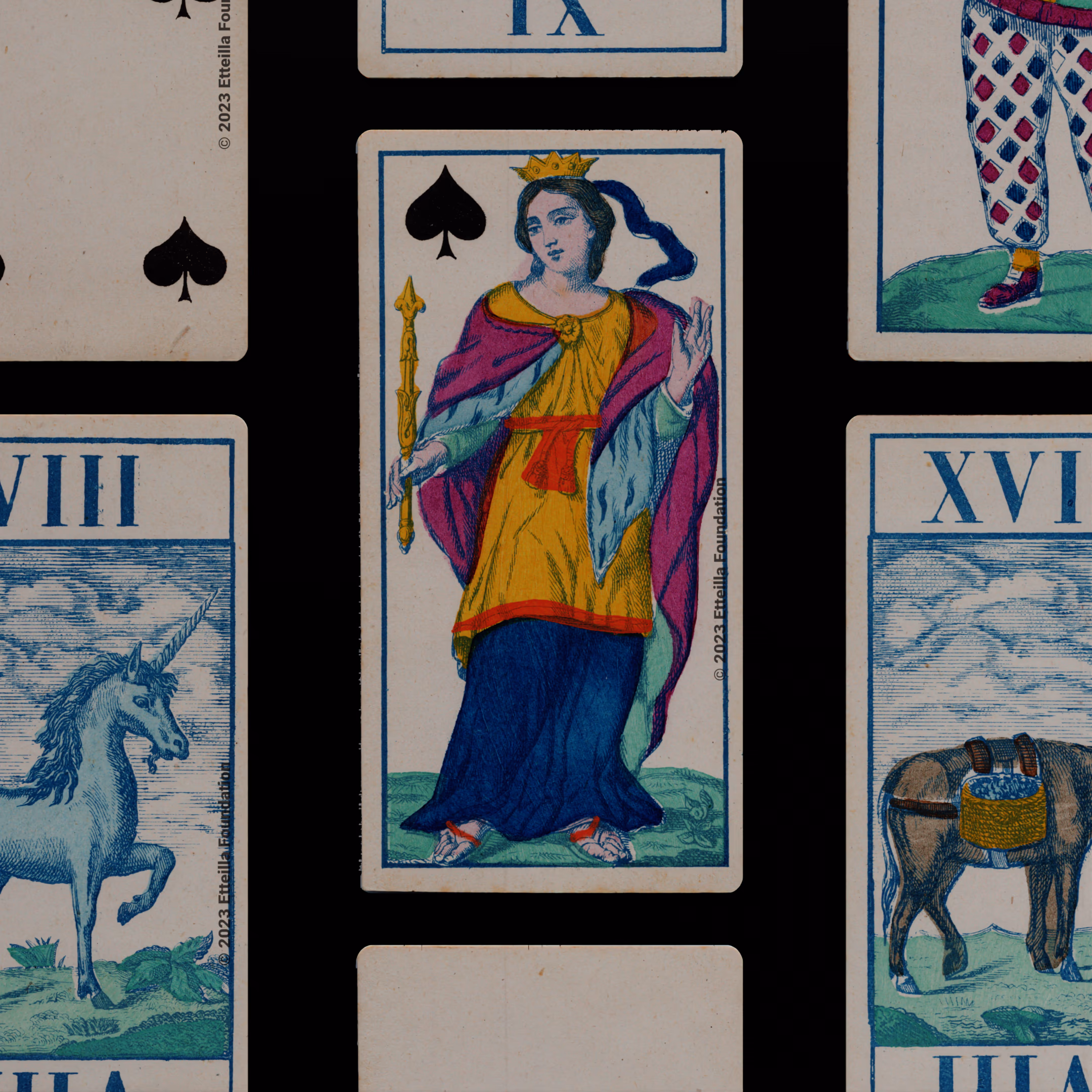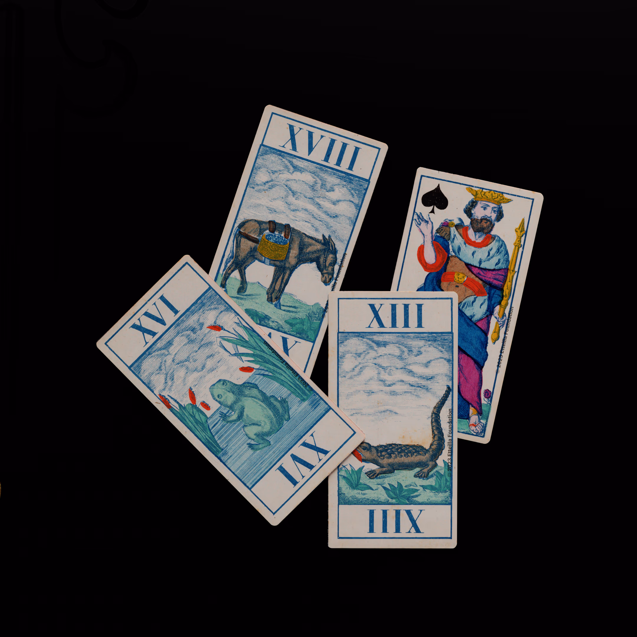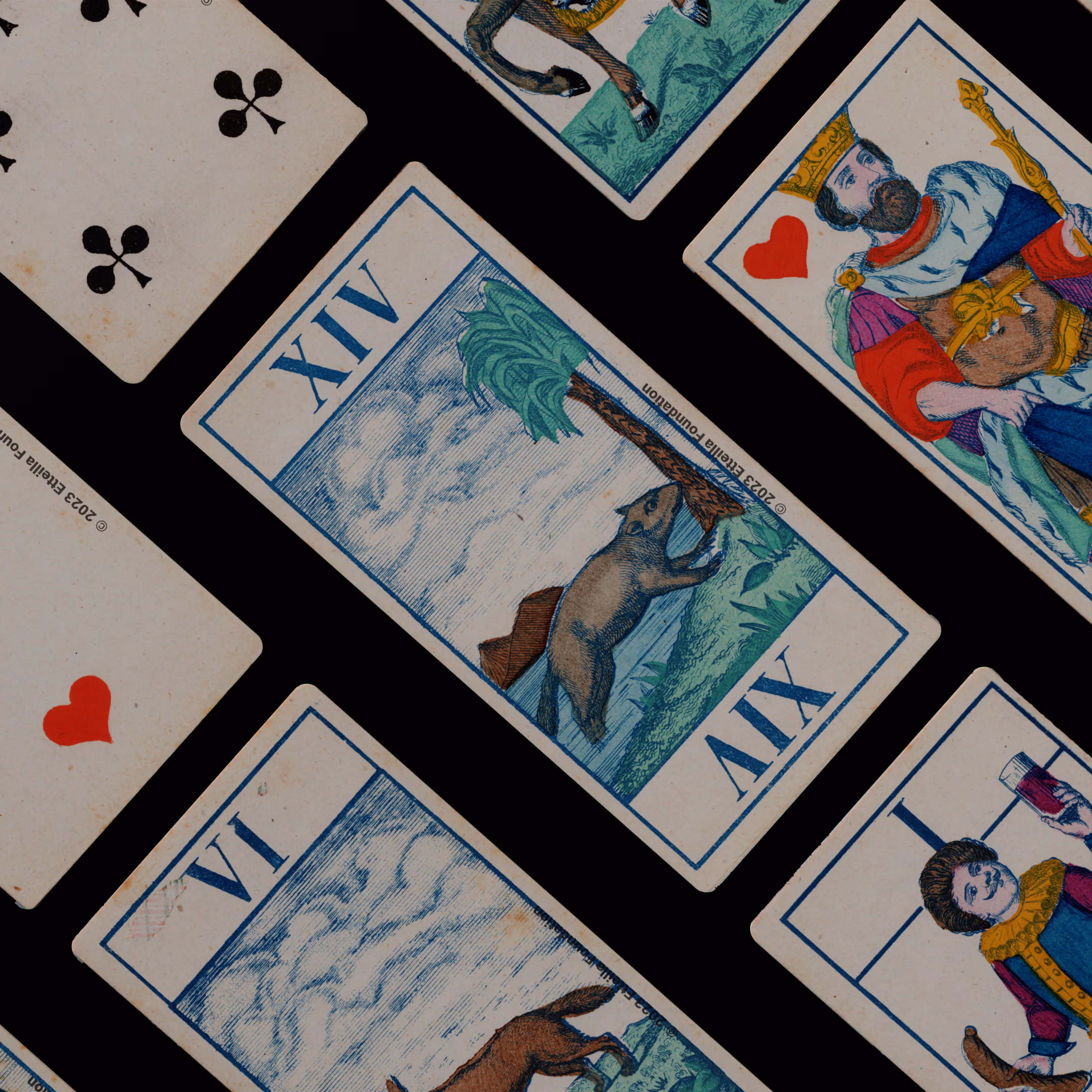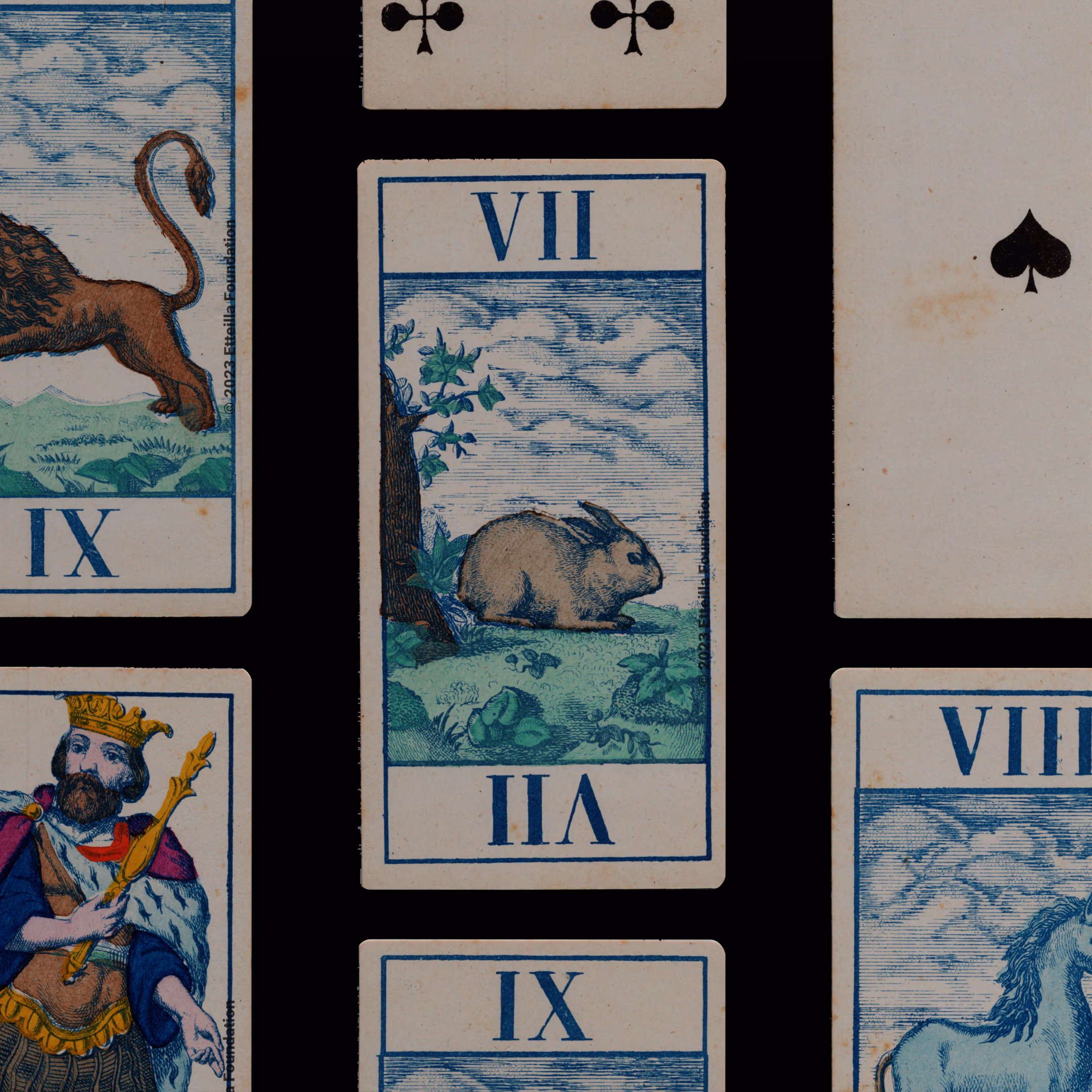 Classic Tarot deck sporting animals themed trumps that was manufactured by Fabrique de Daveluy in Belgium in 1850.