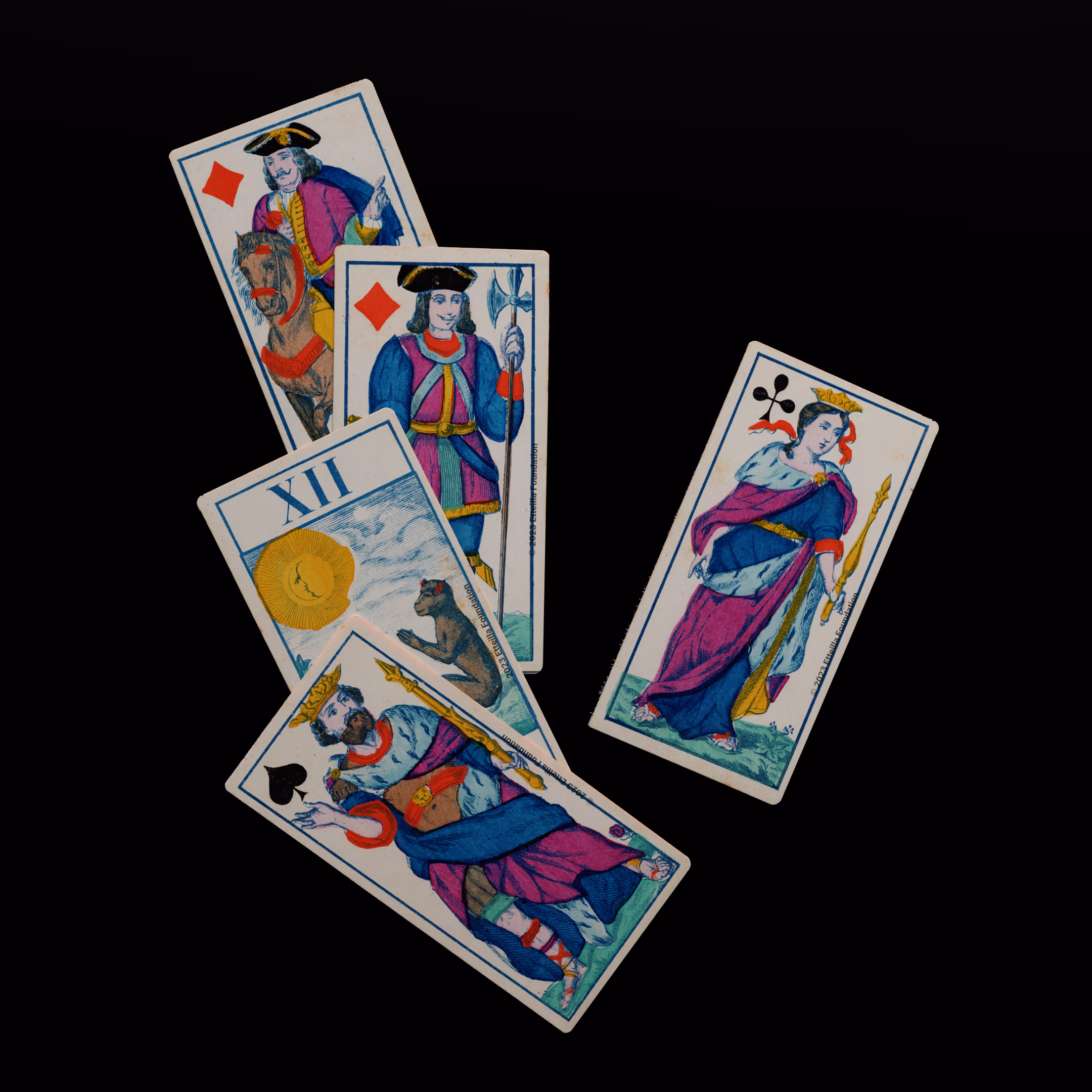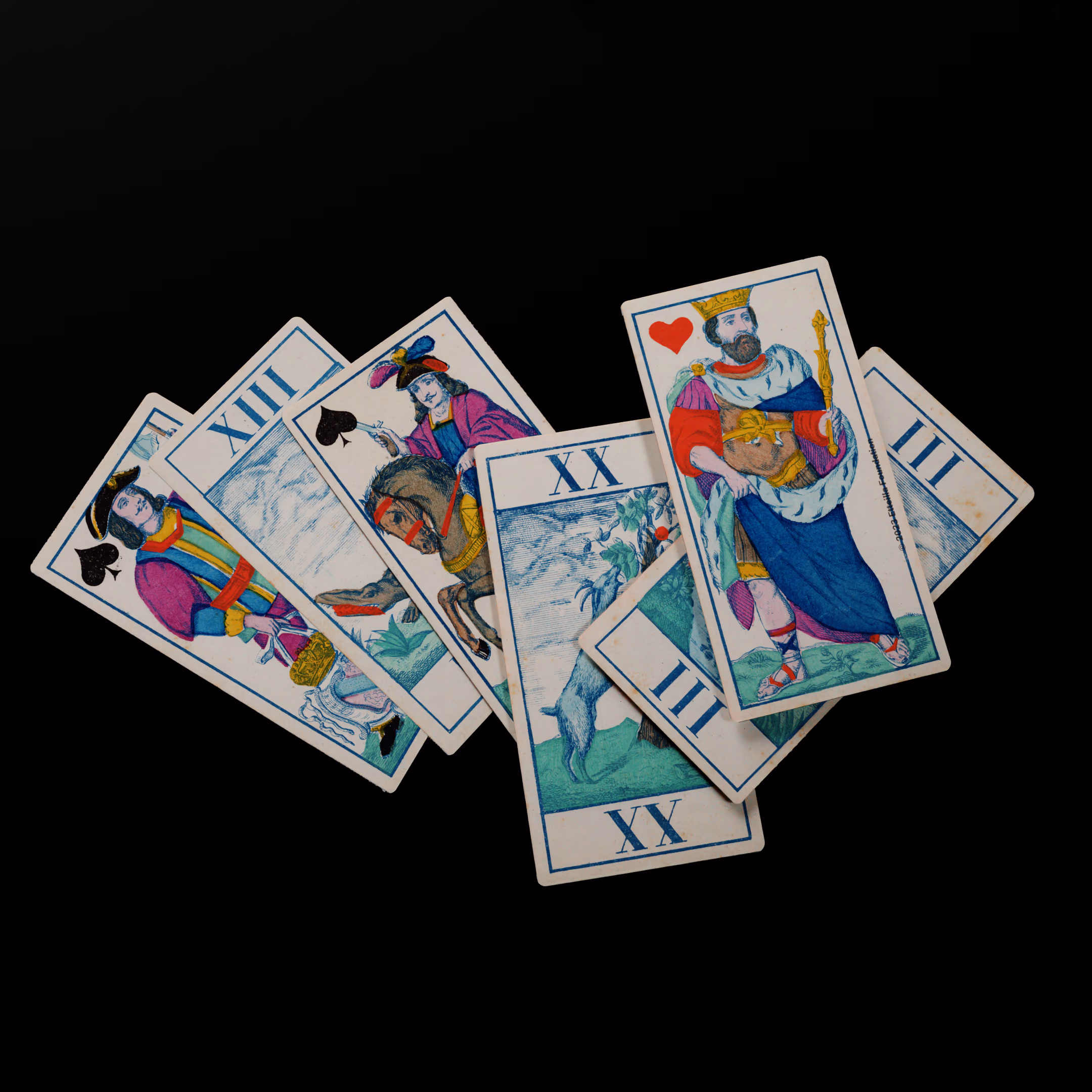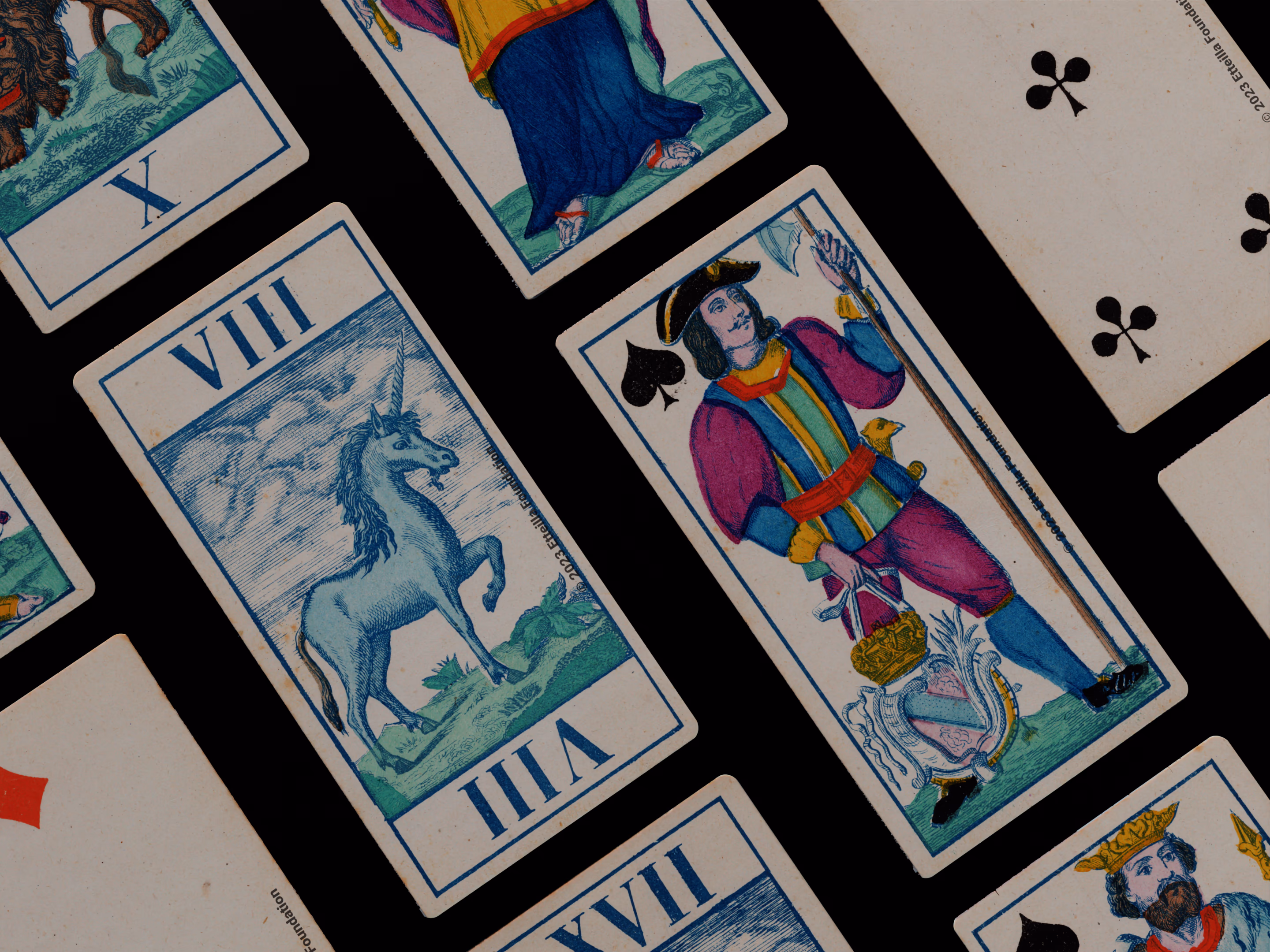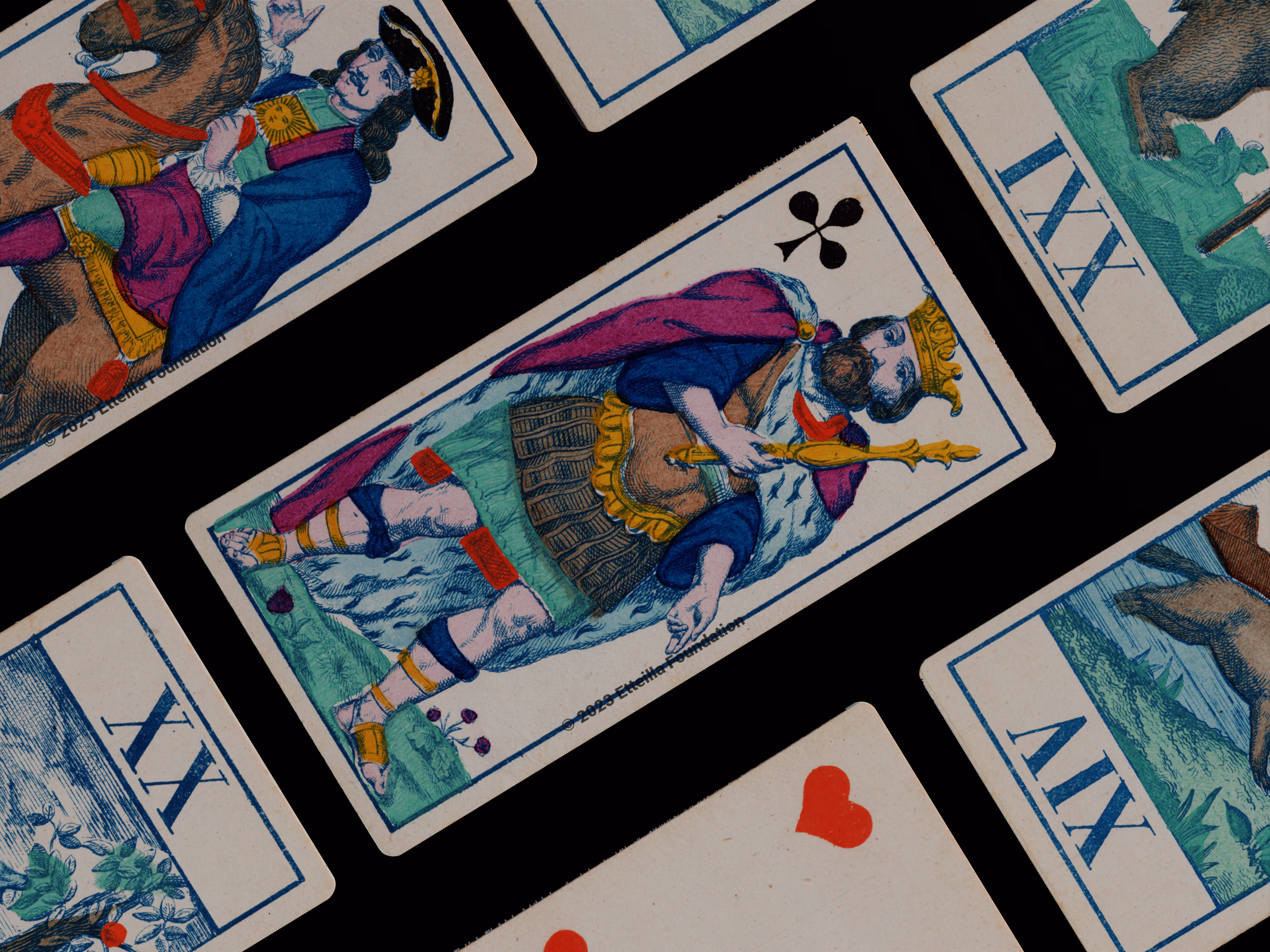 Classic Tarot deck sporting animals themed trumps that was manufactured by Fabrique de Daveluy in Belgium in 1850.