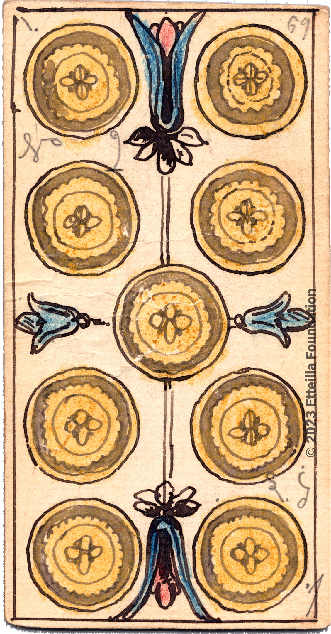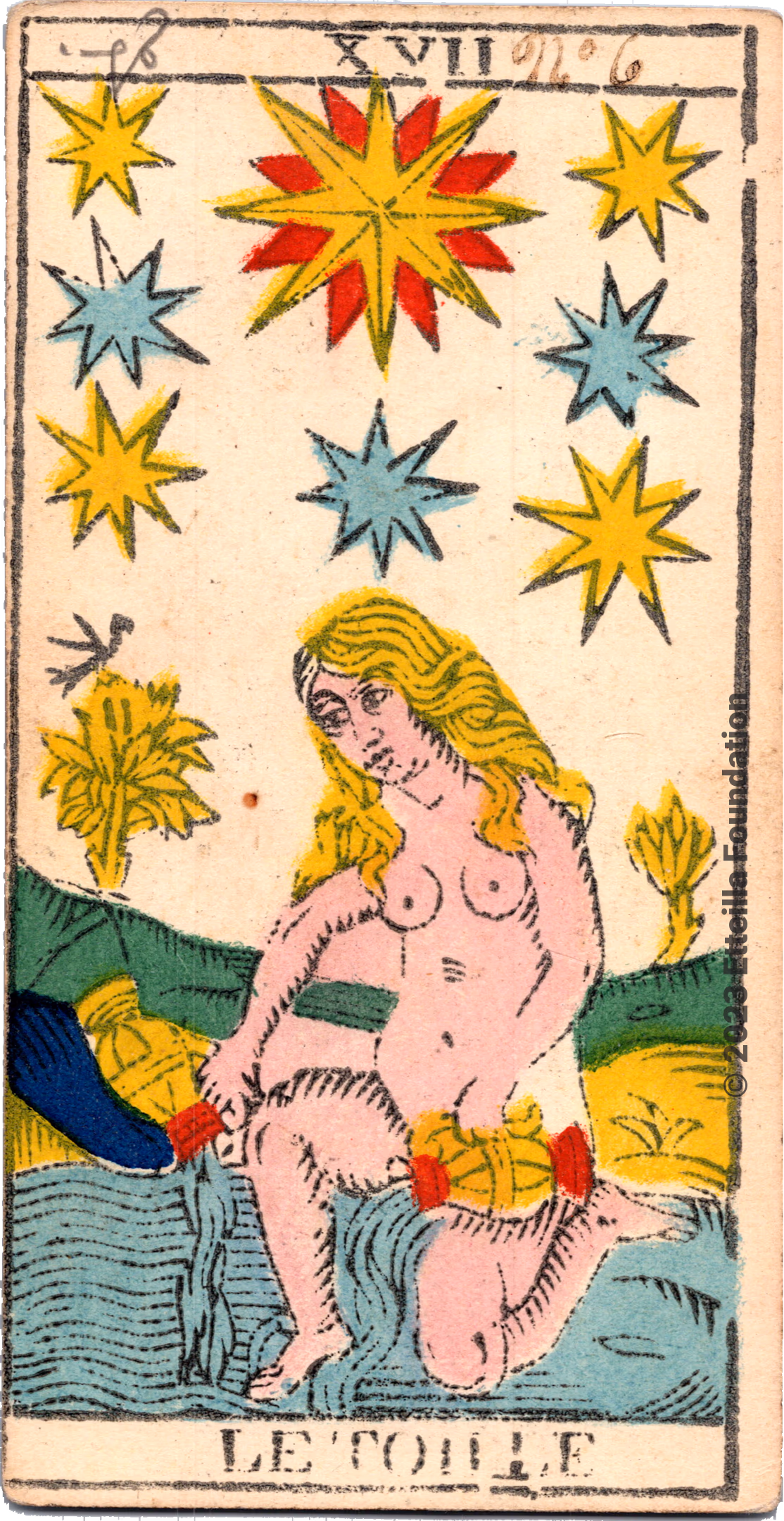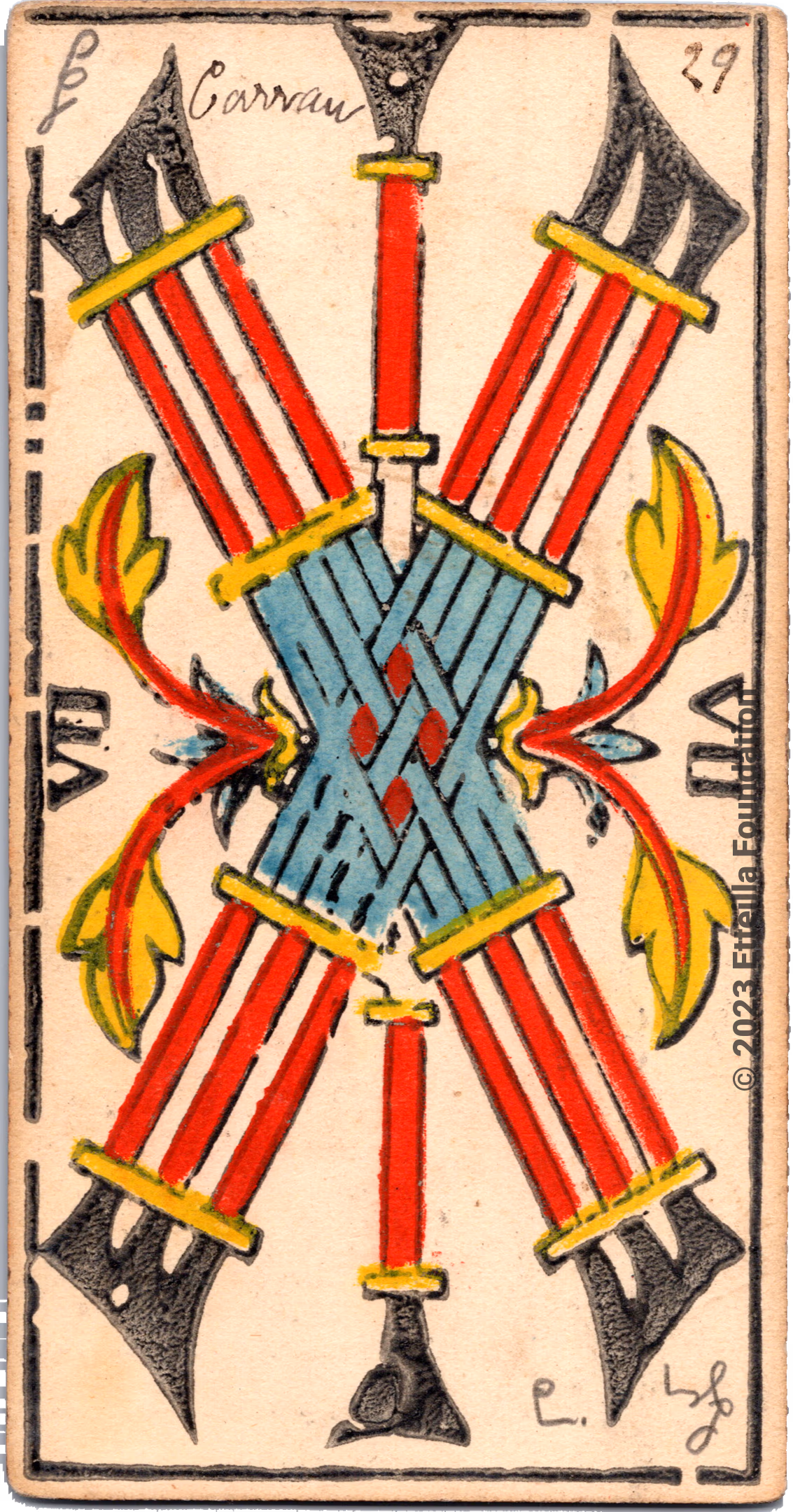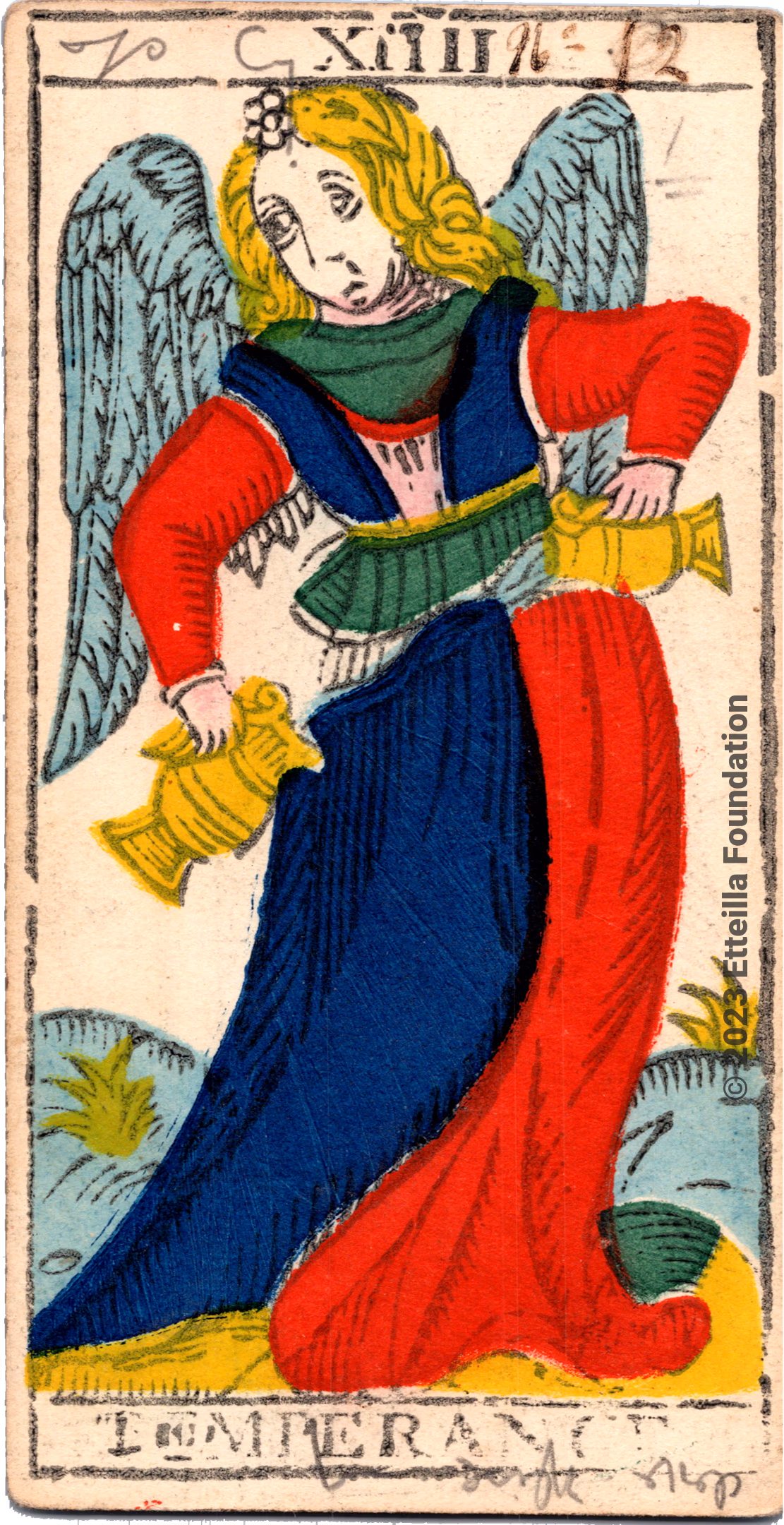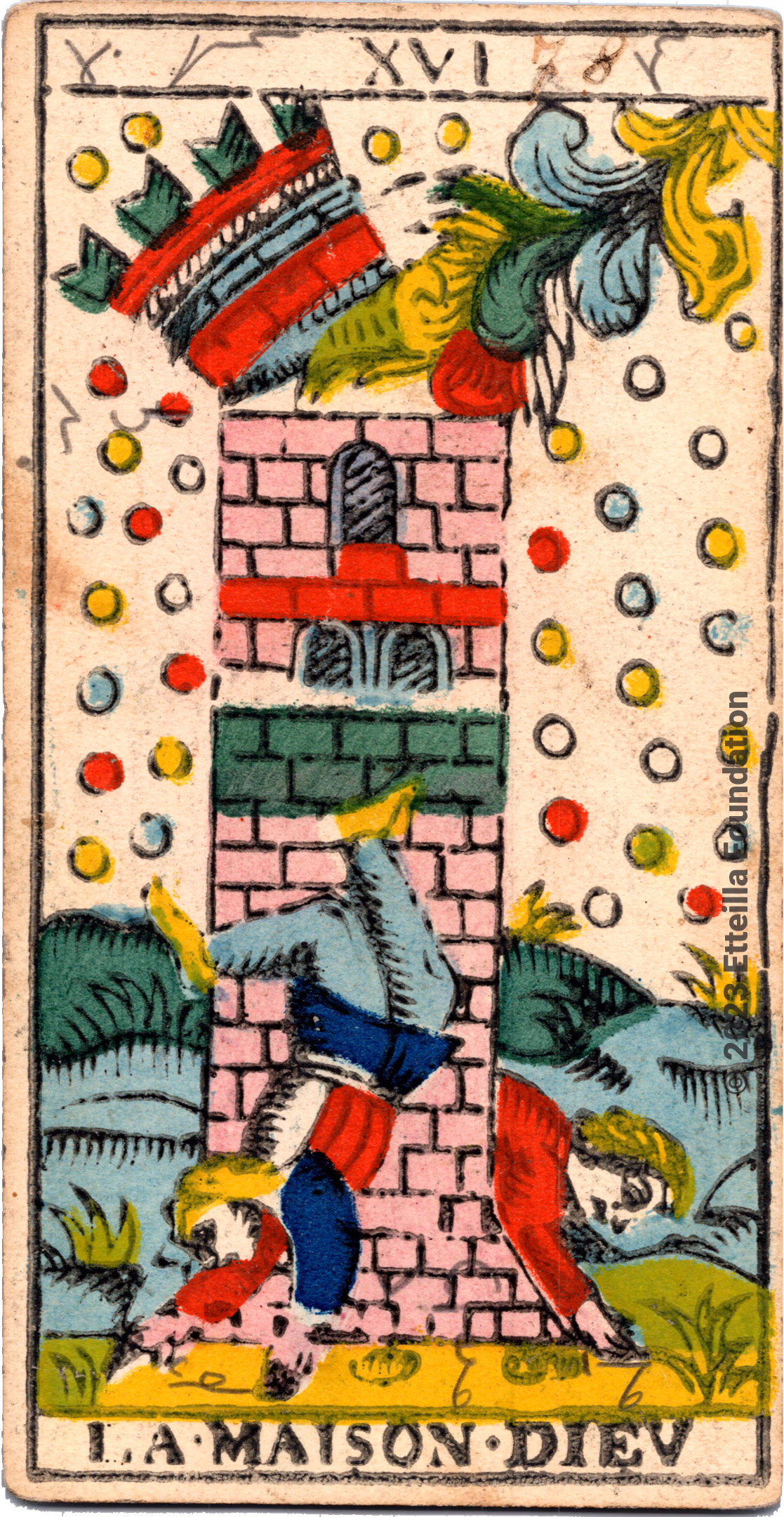 Divination Tarot de Marseille created by Nicolas Conver printed by A. Camoin & Cie in France circa 1760. Conver decks are the most renowed Tarot de Marseille and considered the canonical design. The Tarot de Marseille were the one that led to the use of Tarot for occult practices.