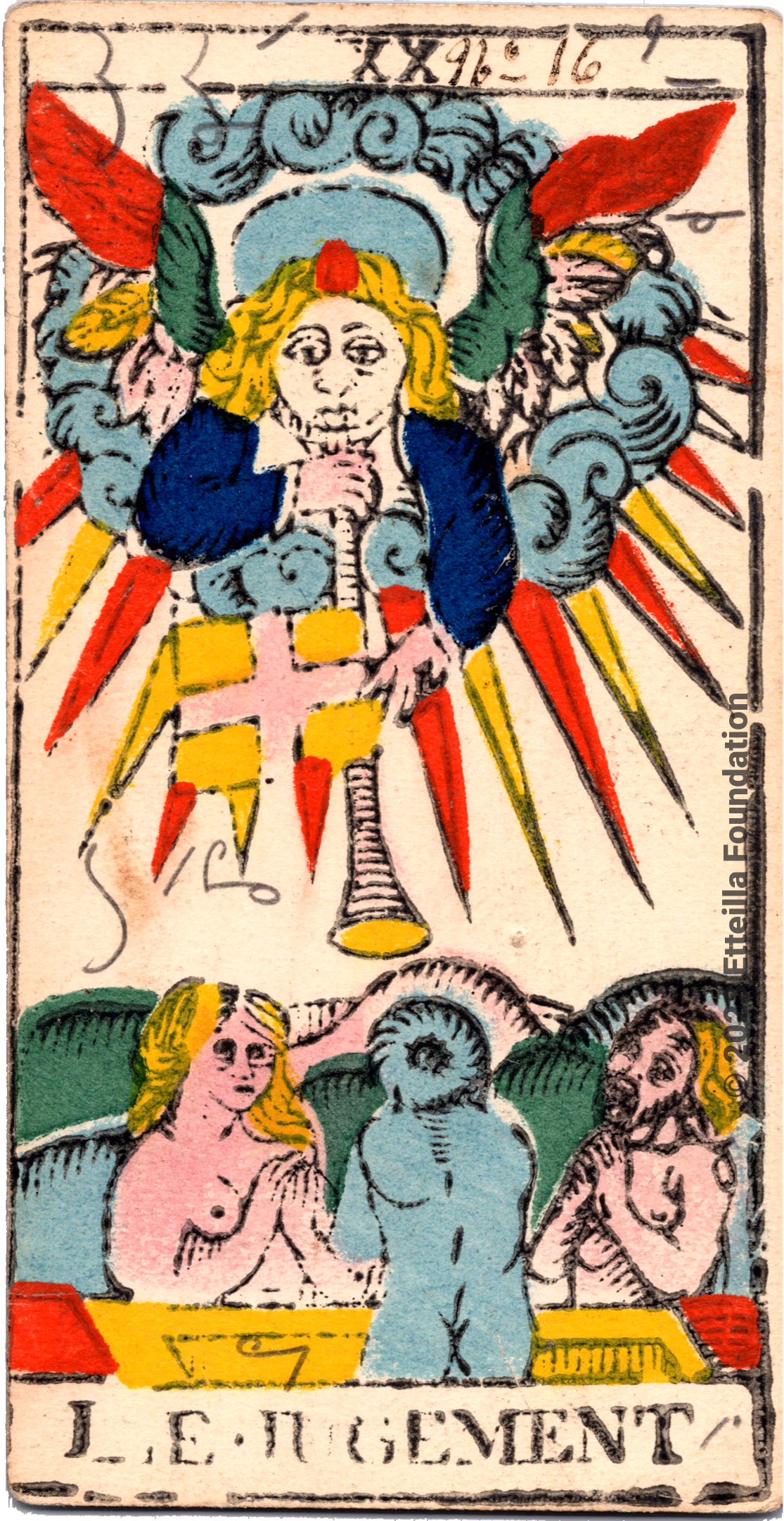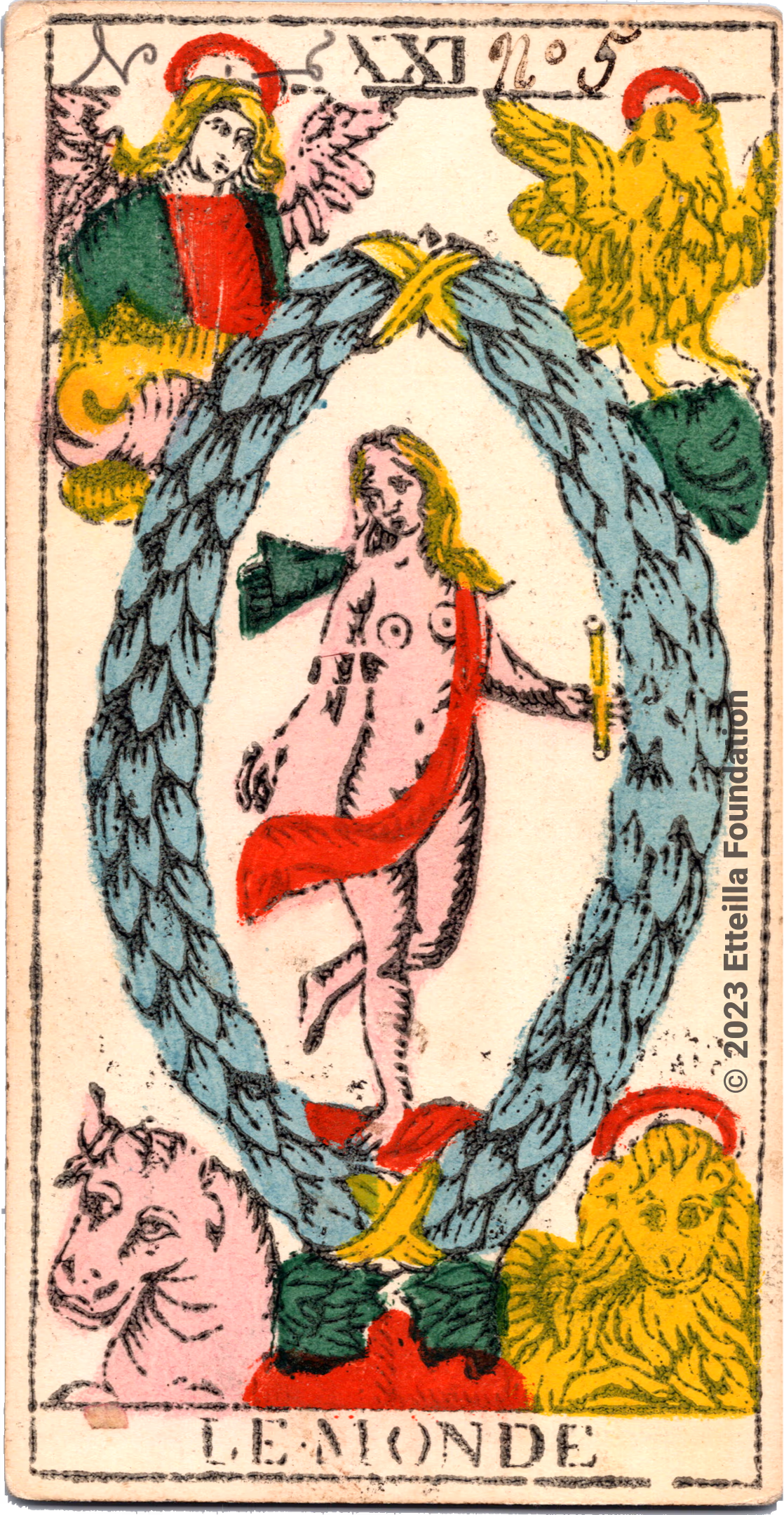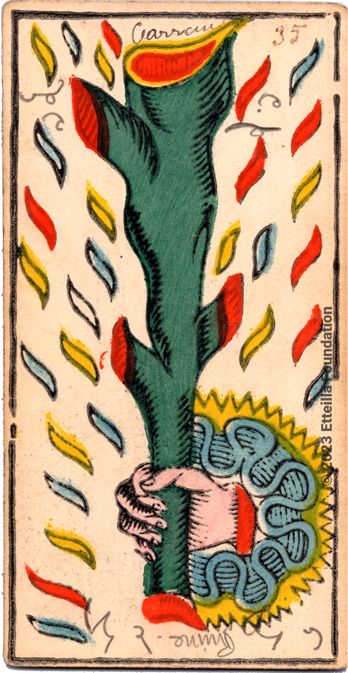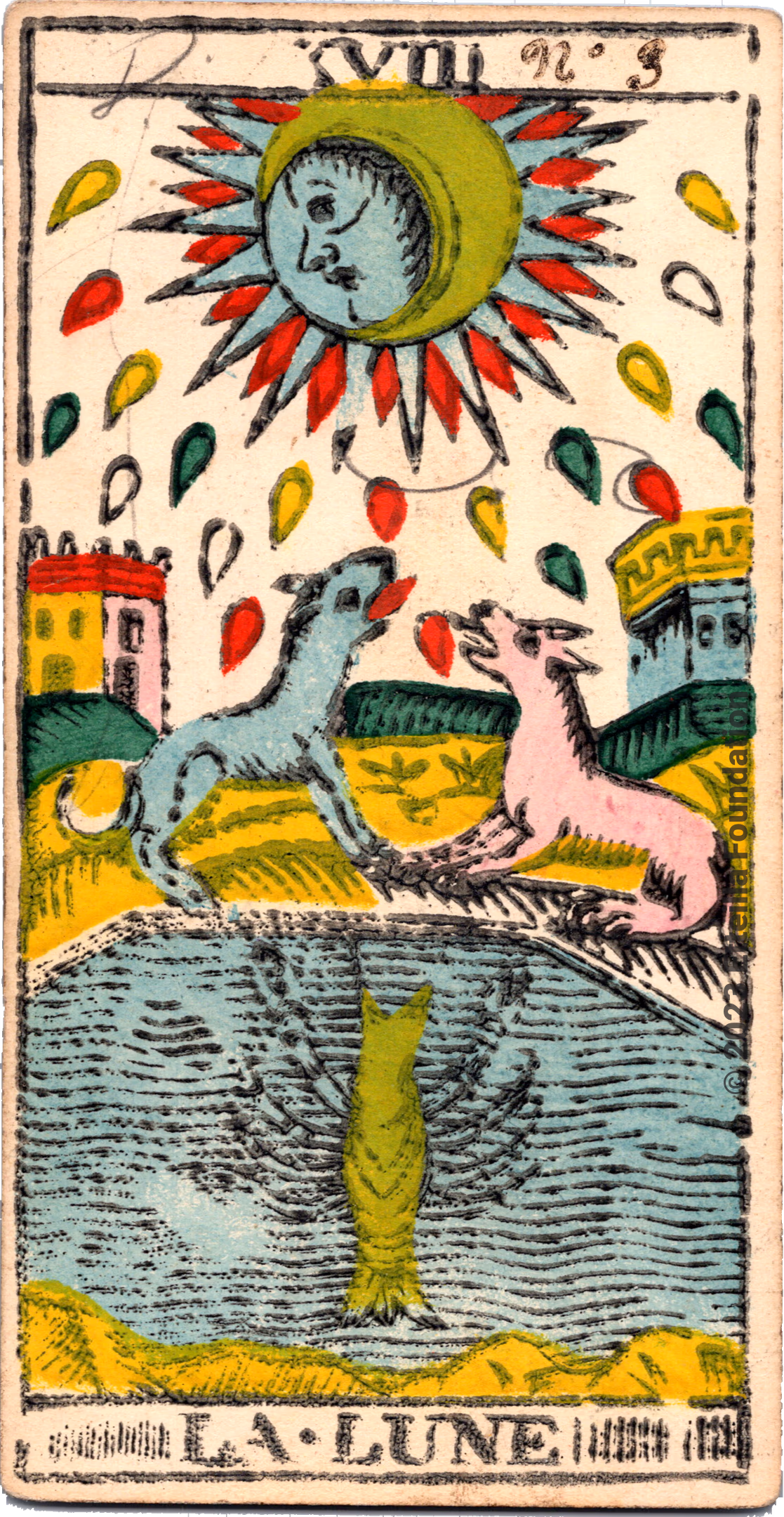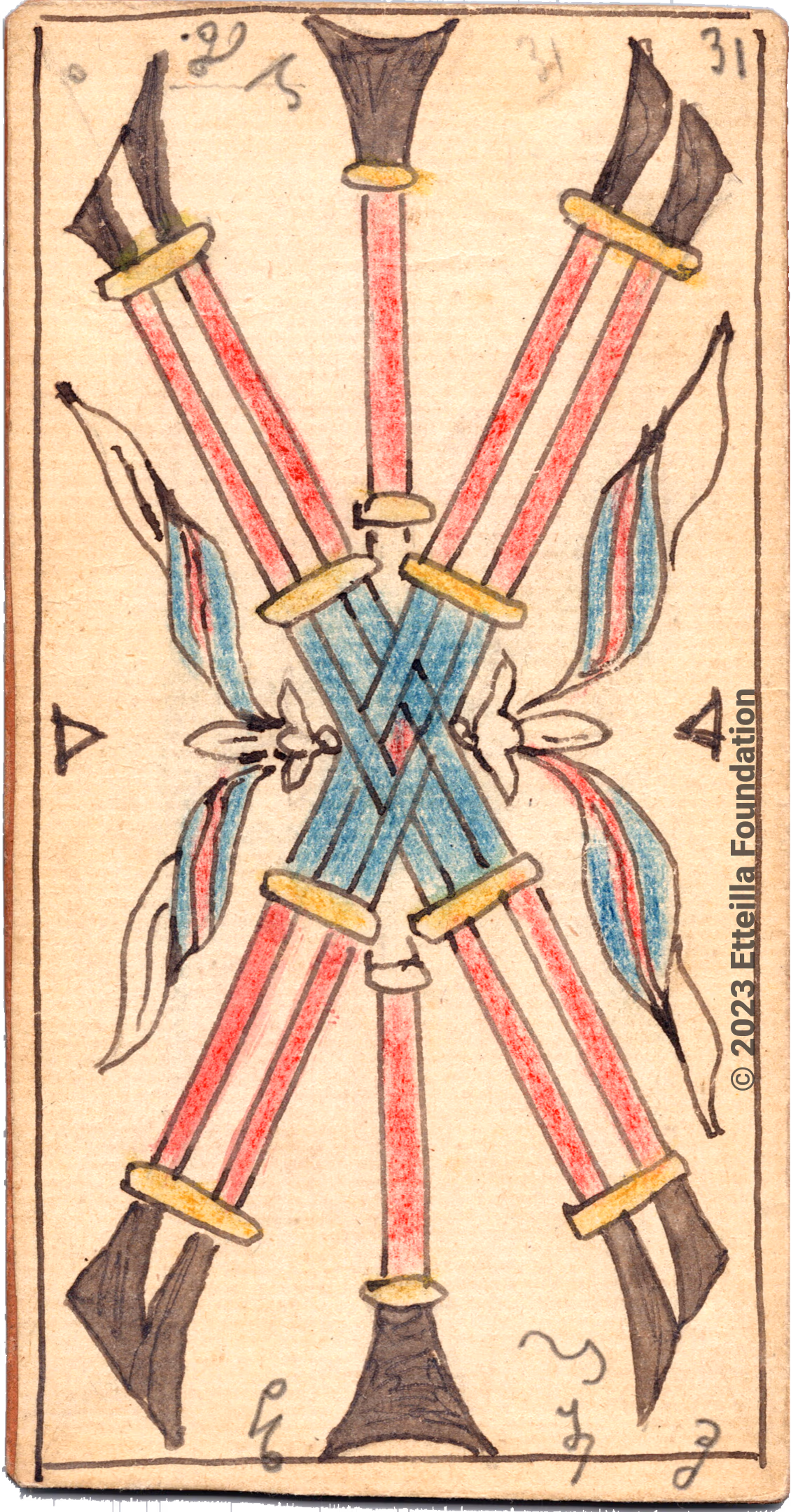 Divination Tarot de Marseille created by Nicolas Conver printed by A. Camoin & Cie in France circa 1760. Conver decks are the most renowed Tarot de Marseille and considered the canonical design. The Tarot de Marseille were the one that led to the use of Tarot for occult practices.