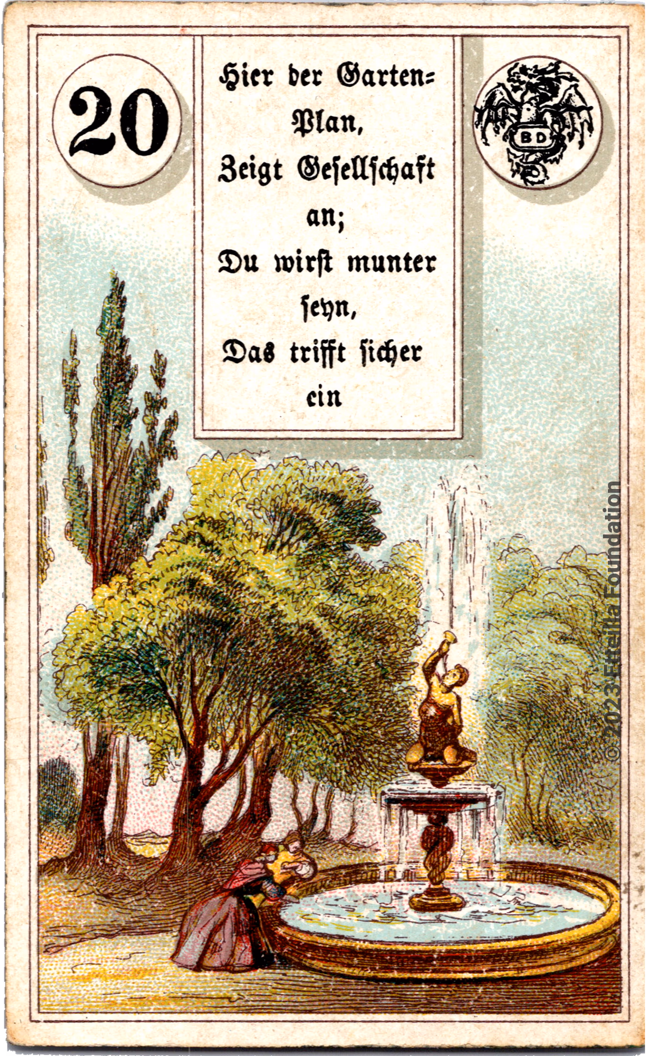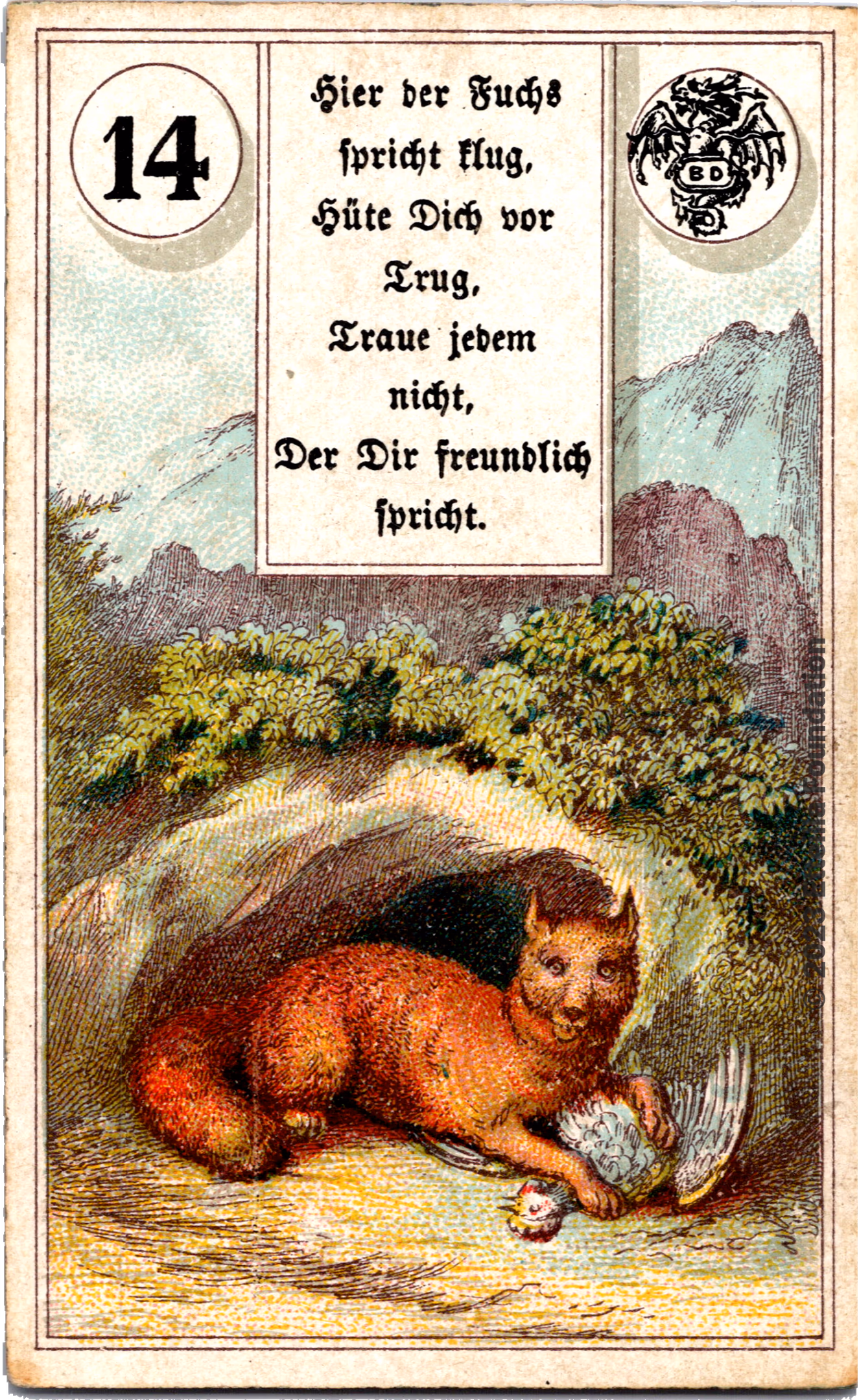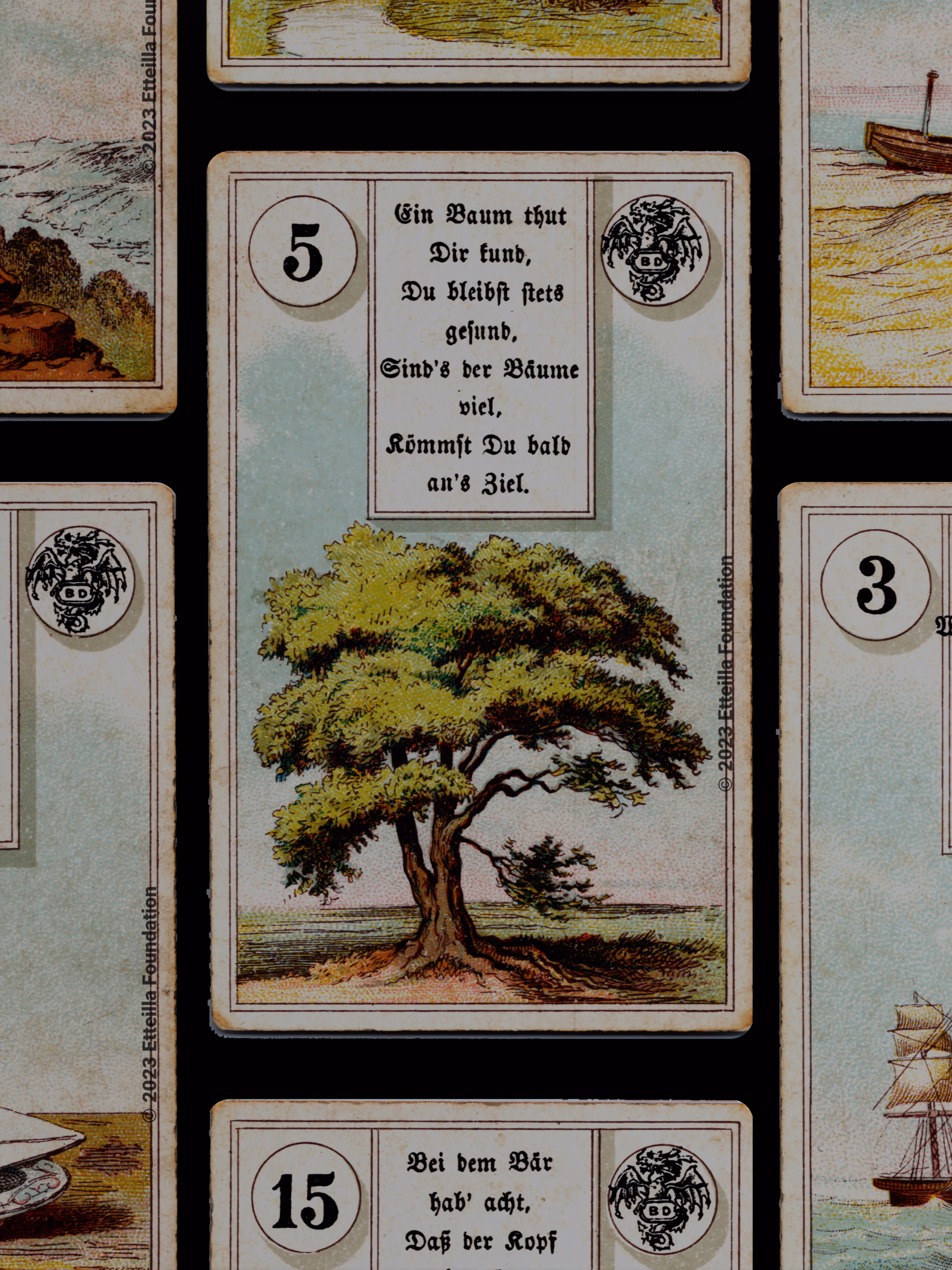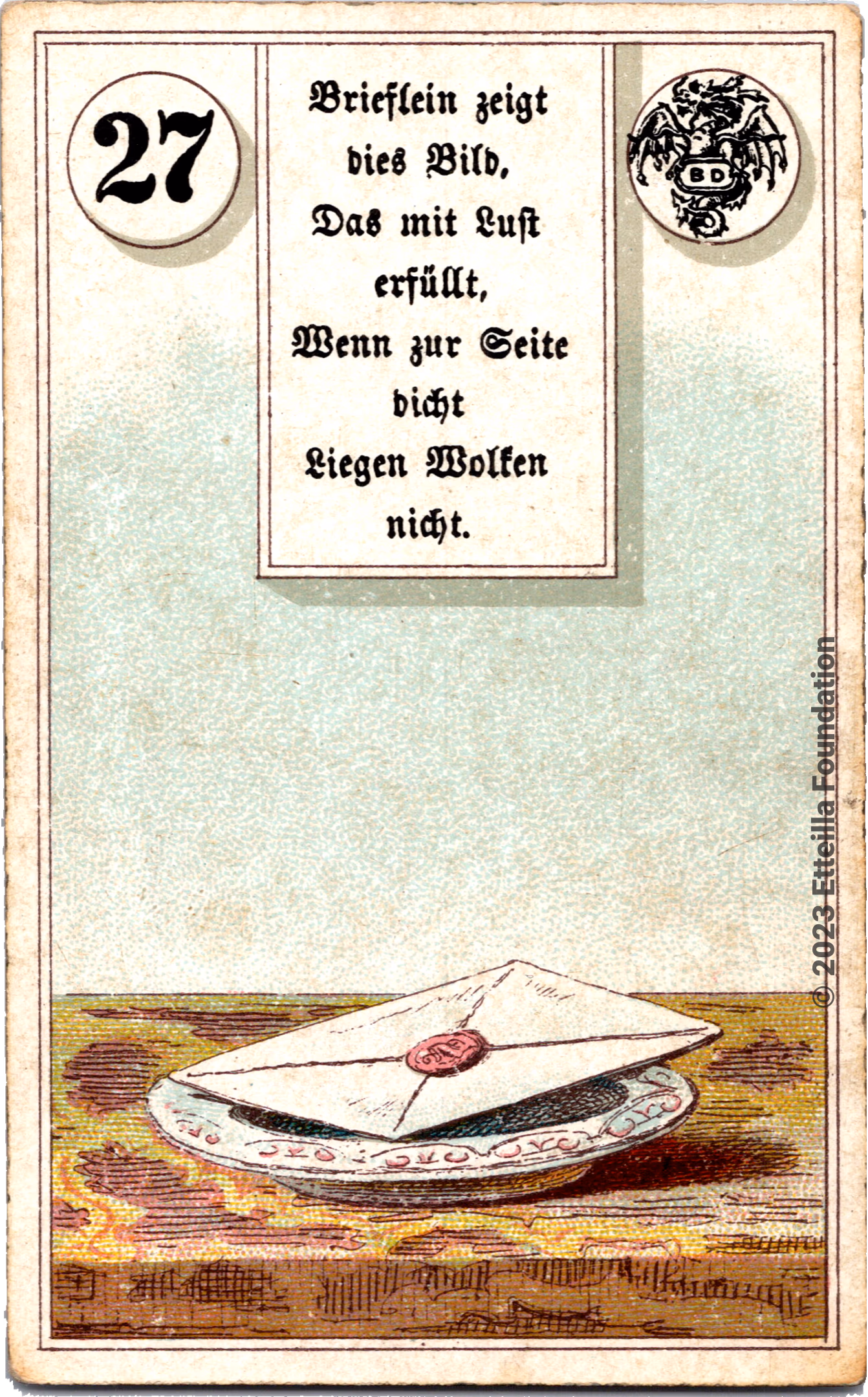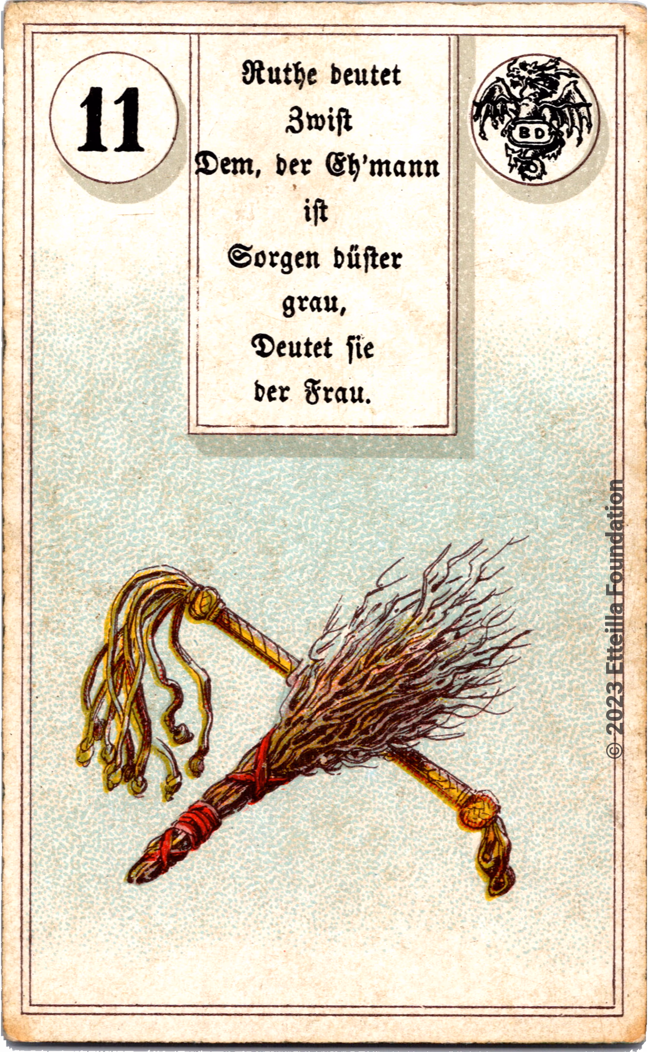 This Dondorf Wahrsage-Karten is an Oracle Deck from the Petit Lenormand family. It was manufactured by Bernard J. Dondorf in Germany in the year 1910. The deck features the Petit Lenormand face pattern which is a popular style in oracle decks and text in German on all cards.