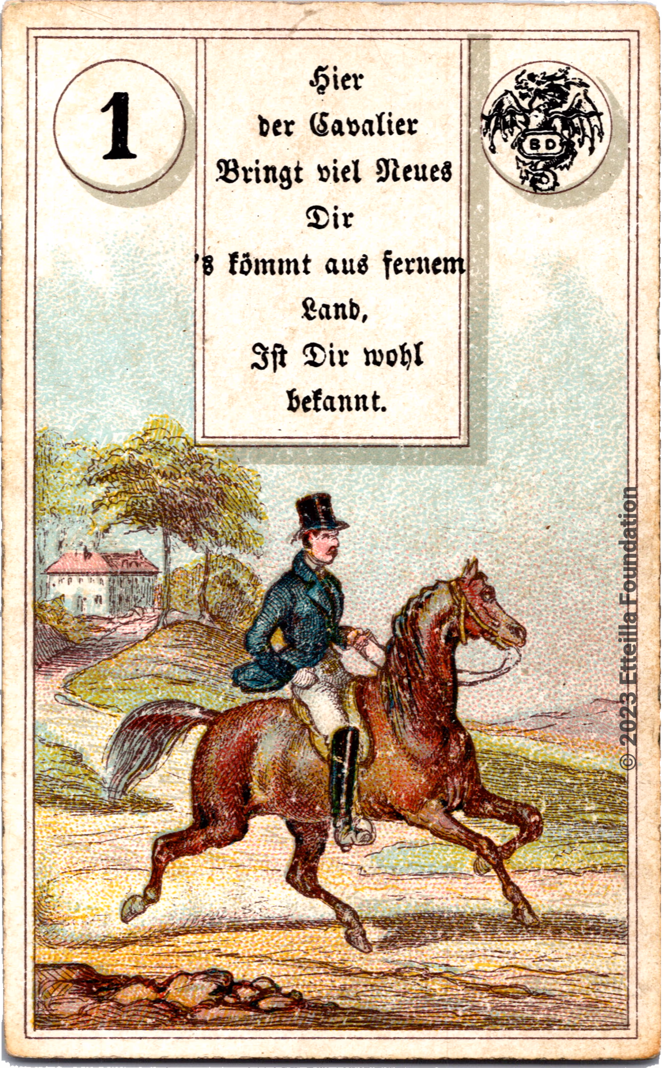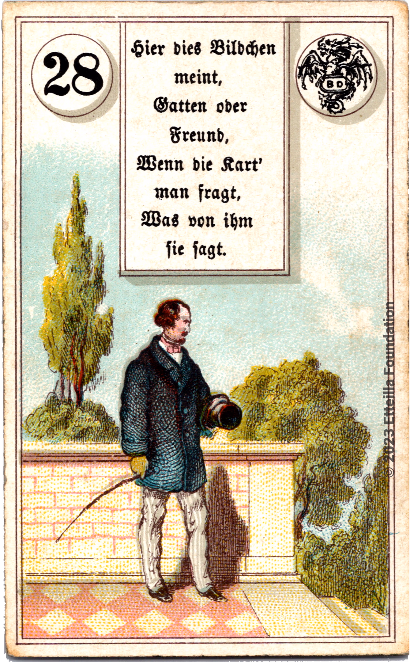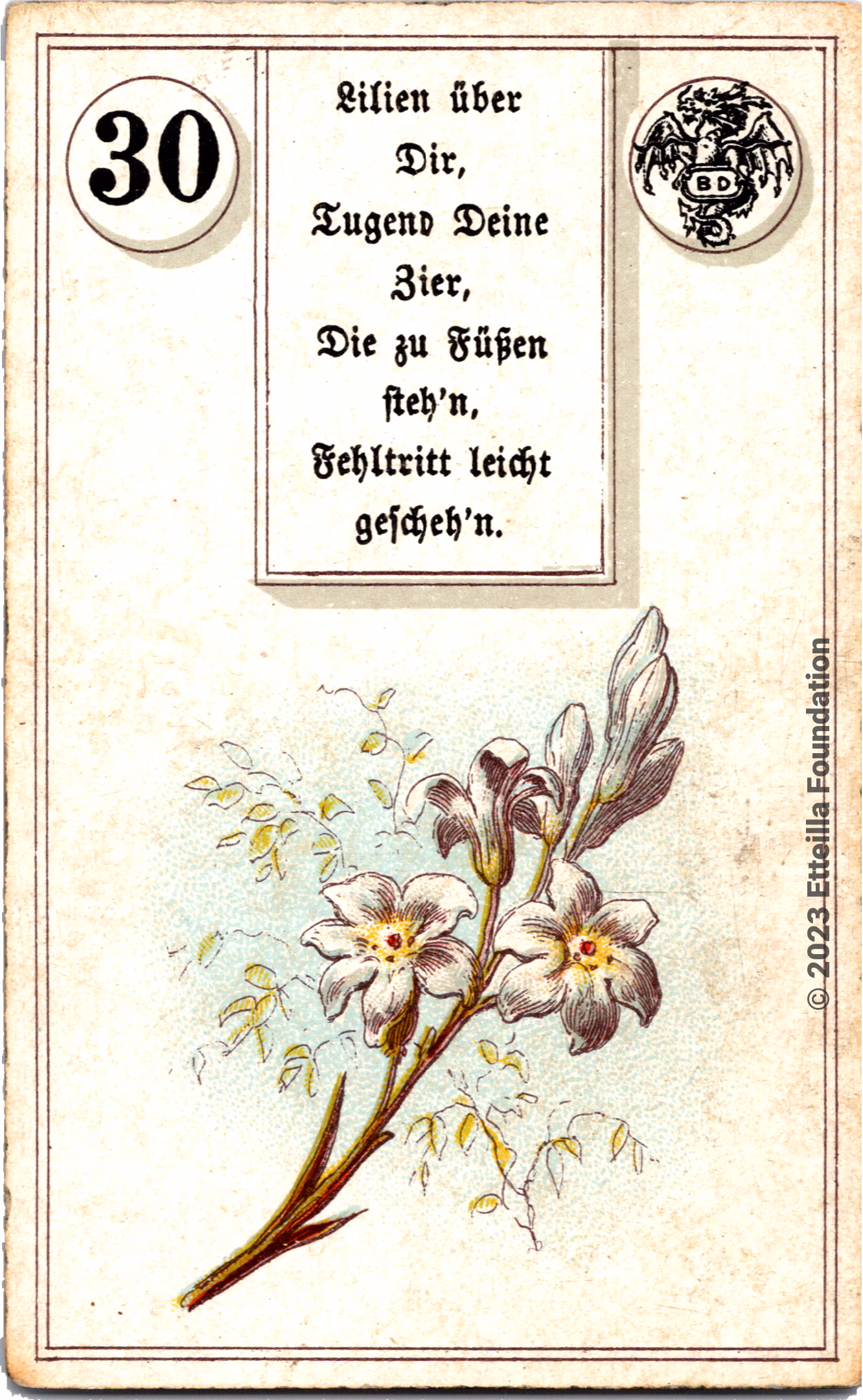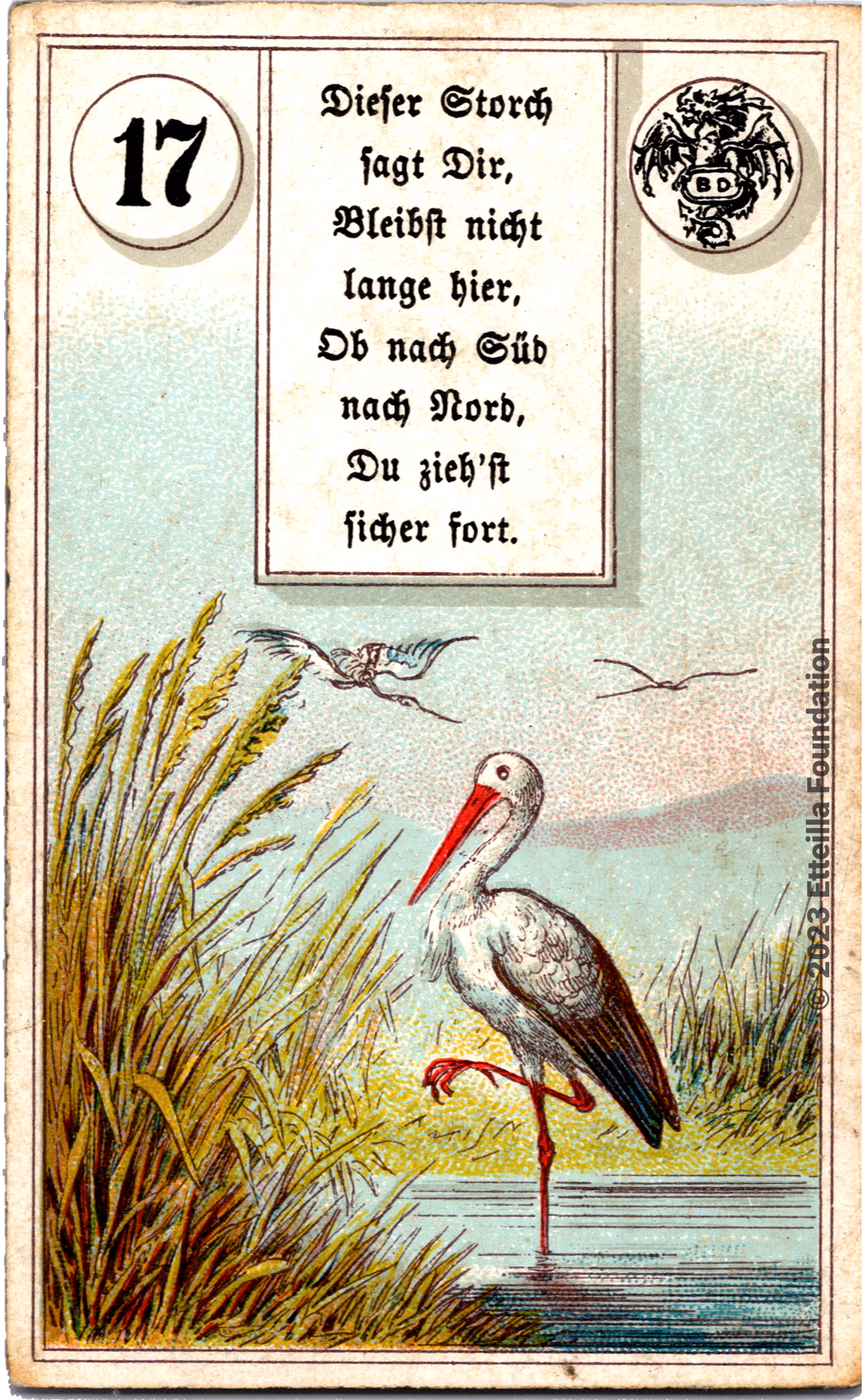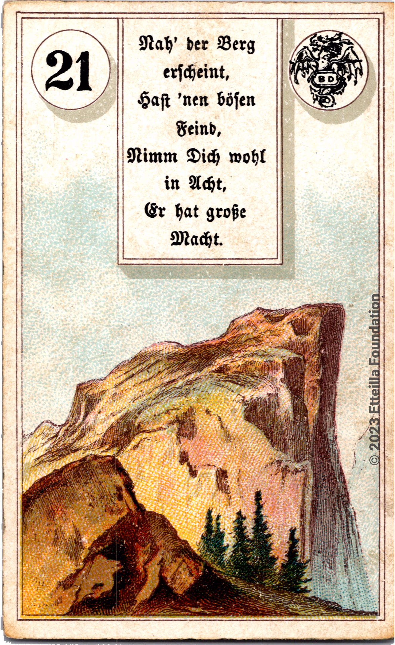 This Dondorf Wahrsage-Karten is an Oracle Deck from the Petit Lenormand family. It was manufactured by Bernard J. Dondorf in Germany in the year 1910. The deck features the Petit Lenormand face pattern which is a popular style in oracle decks and text in German on all cards.